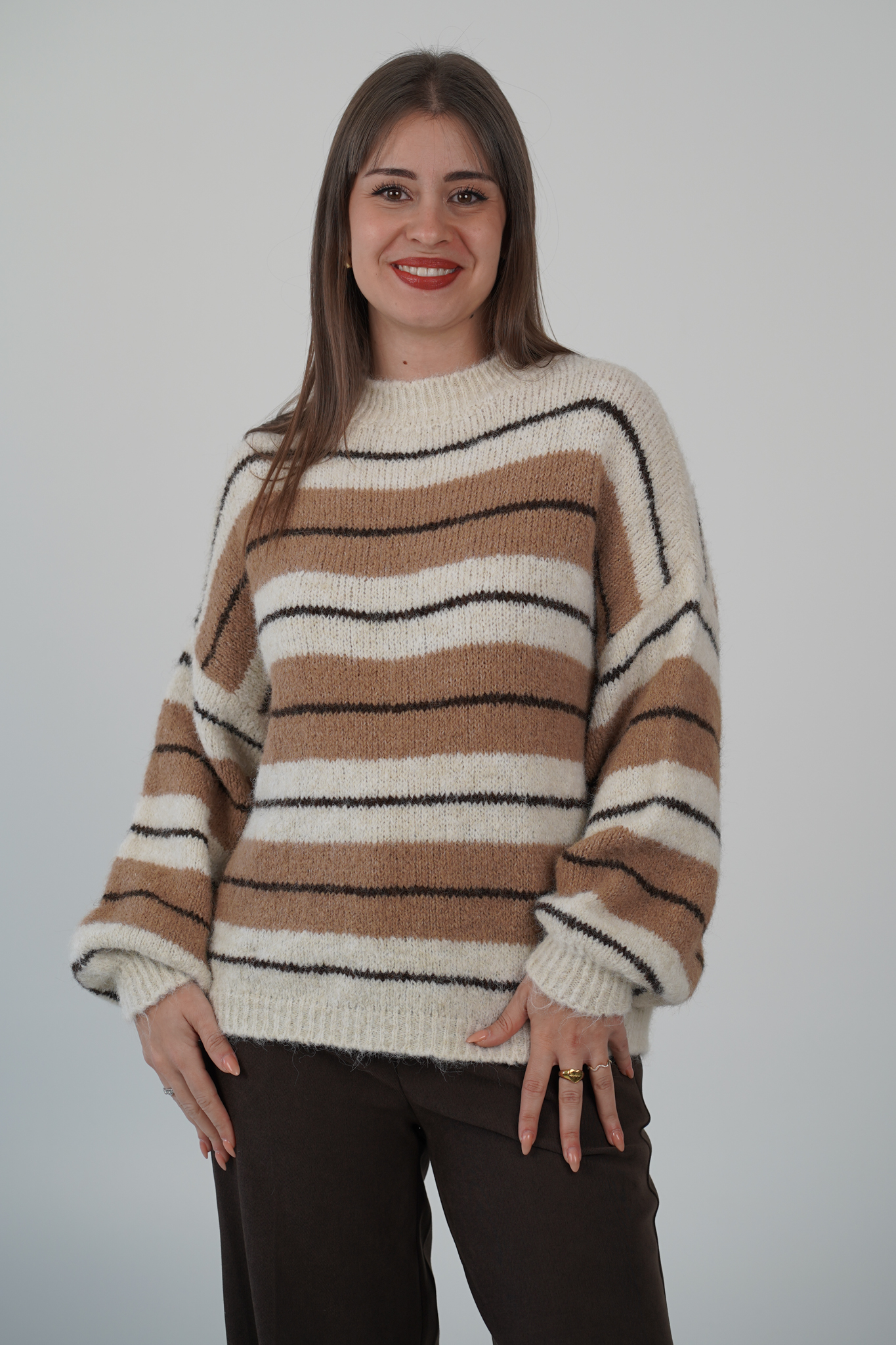 Descrizione: Avvolgente come un abbraccio, questo maglioncino in misto lana è il capo must-have per affrontare l’inverno con stile e comfort. Il tessuto super caldo e soffice regala una sensazione di benessere istantanea, mentre il design semplice ma curato lo rende un vero jolly del guardaroba.