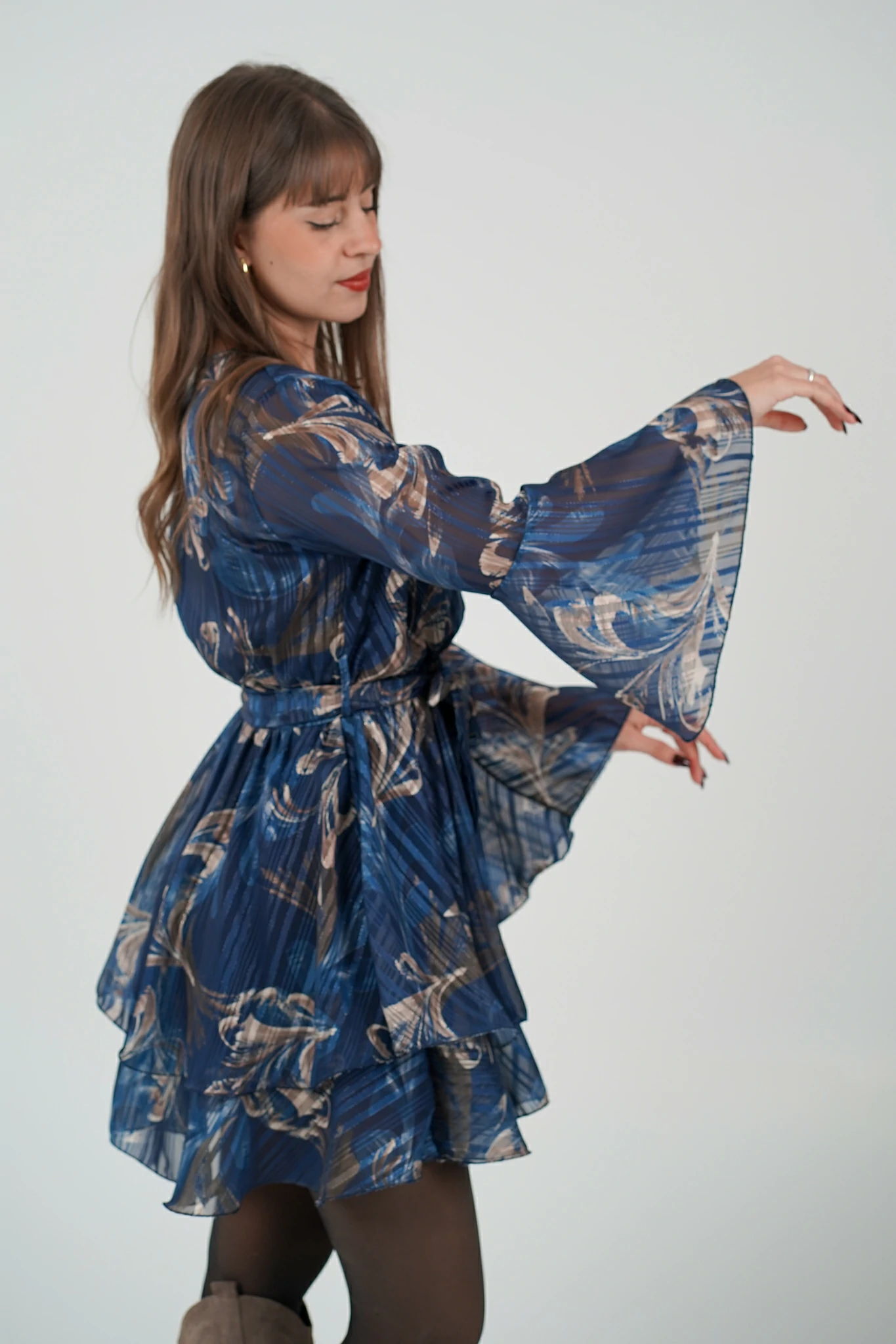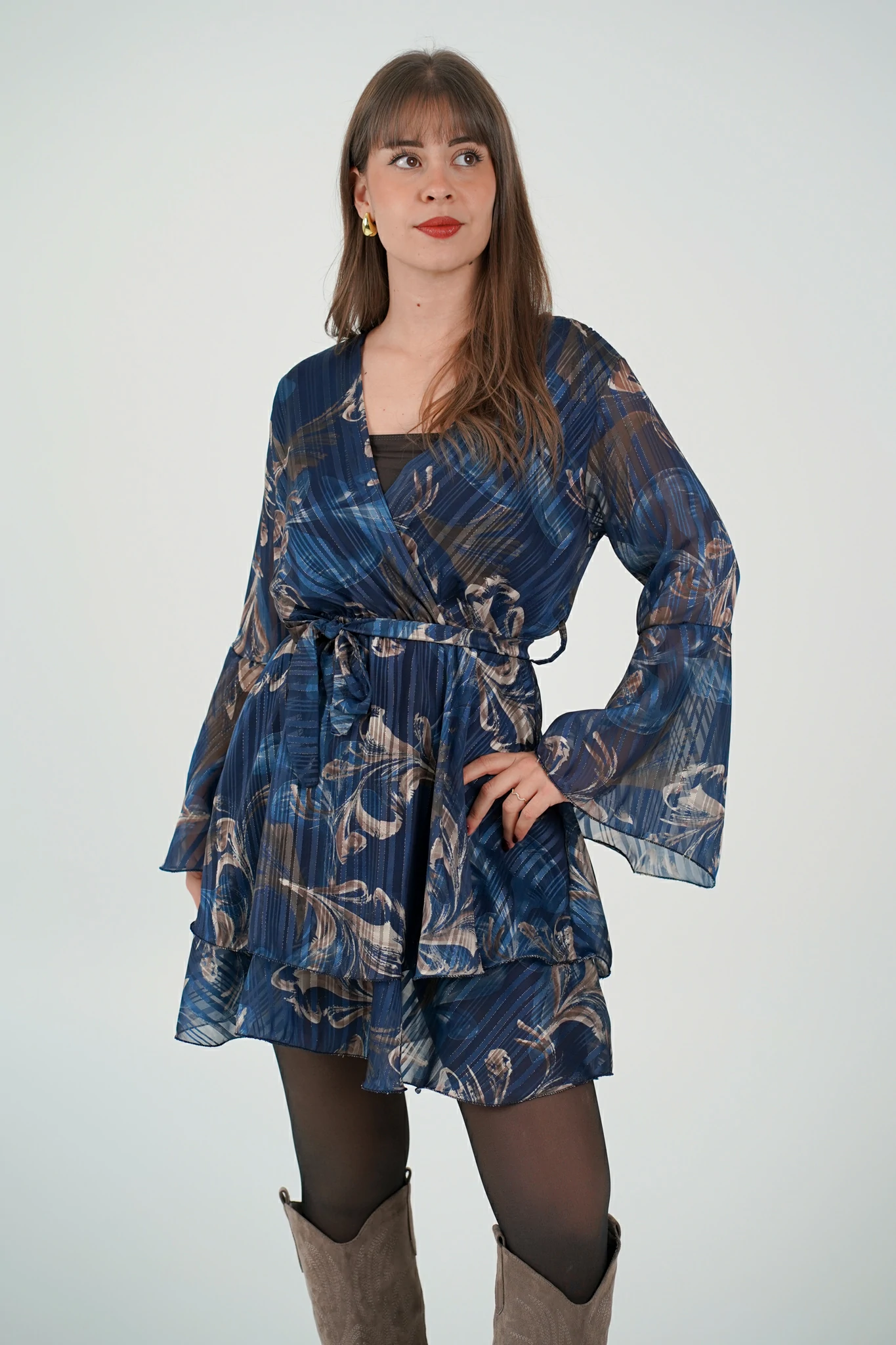Questo abitino romantico ti conquisterà! Ha le manichette a campanella e una balzetta sulla gonna