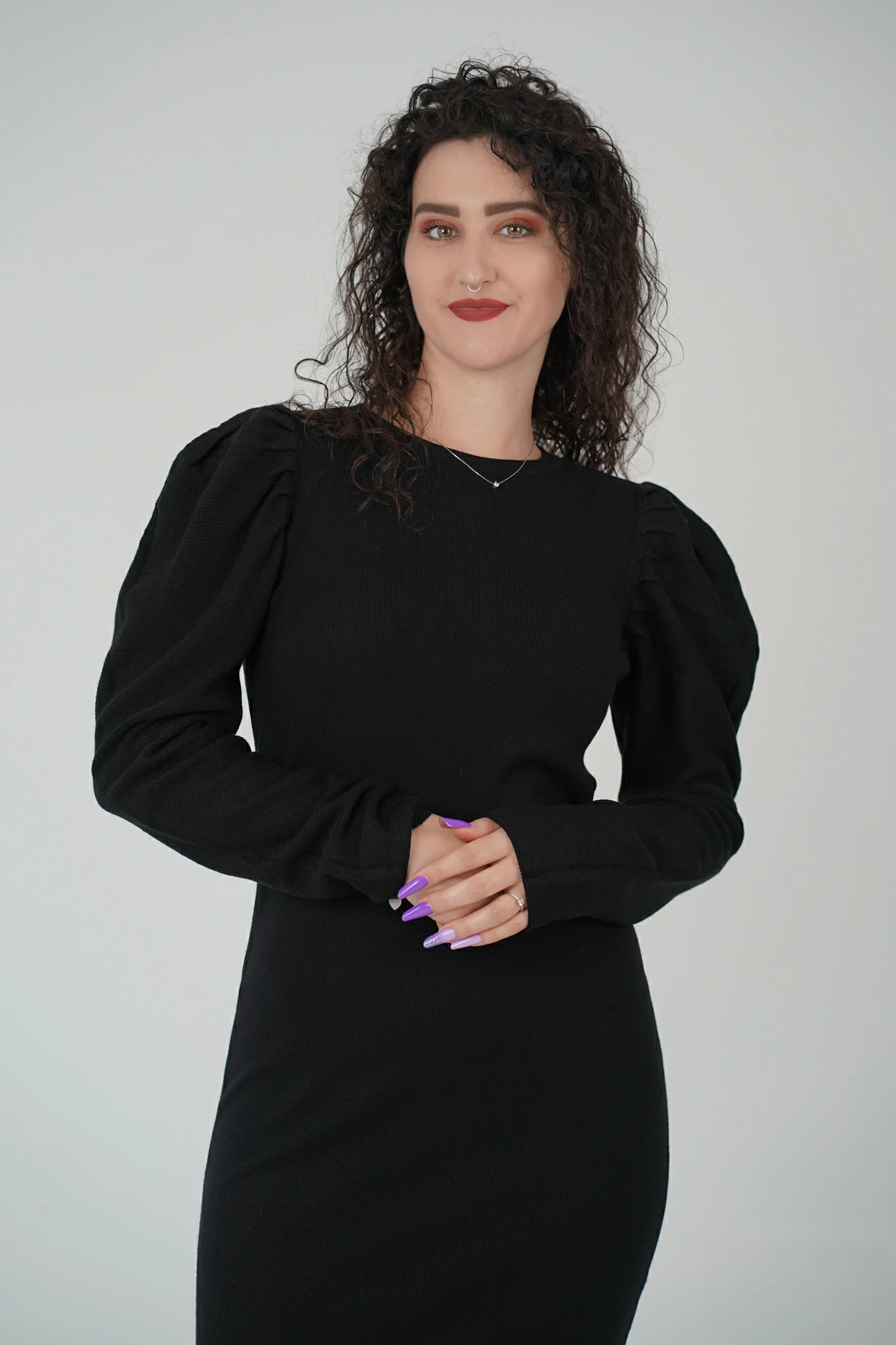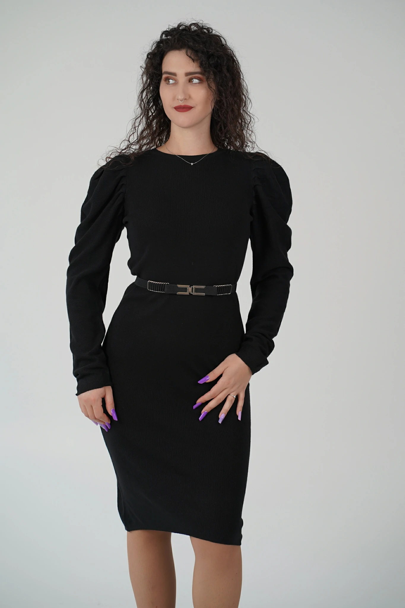 Con la sua trama a costine sottili, avvolge la silhouette senza costringere, mentre le spalle a sbuffo aggiungono un tocco romantico e deciso allo stesso tempo