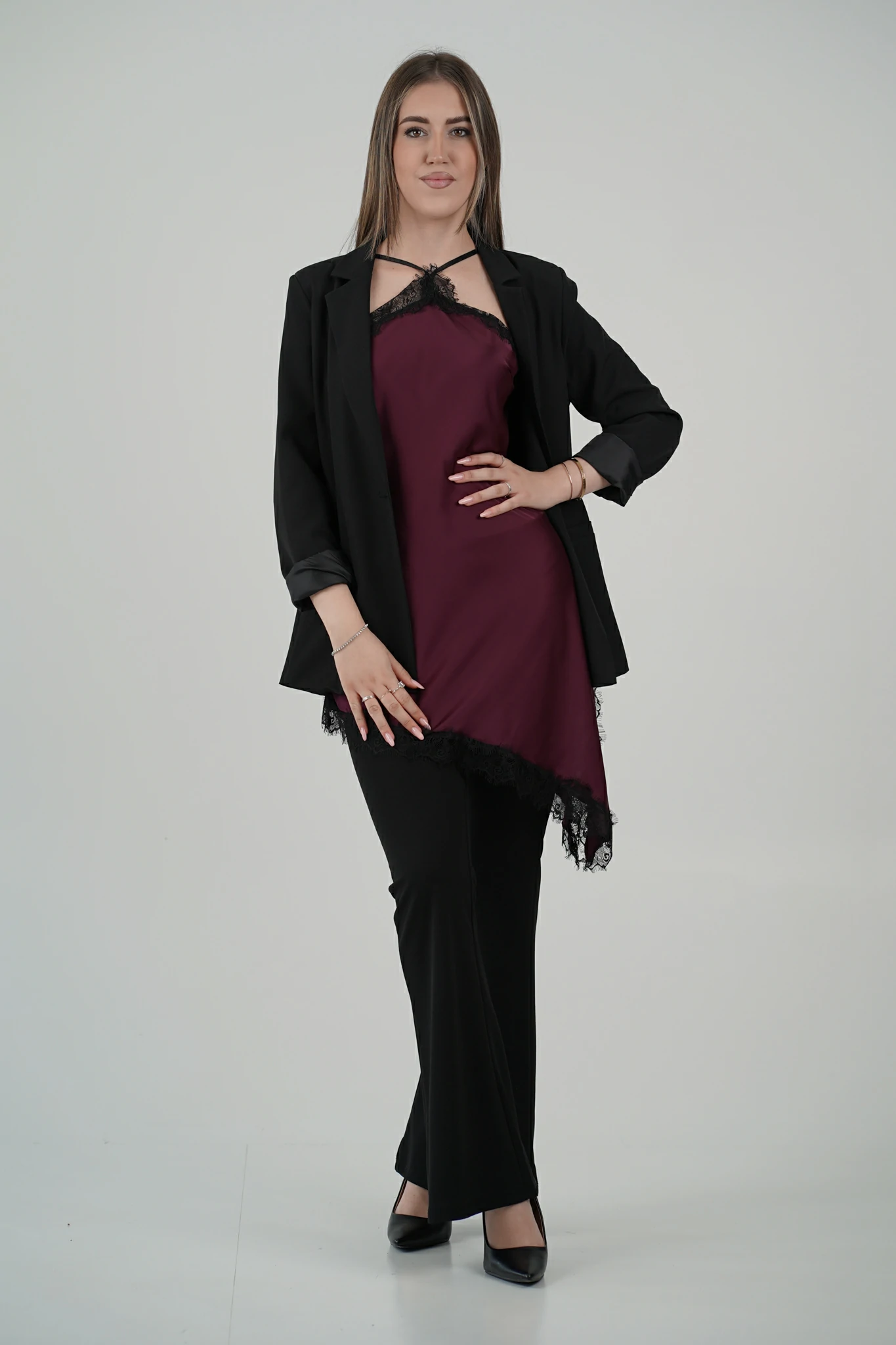 Per un aperitivo con le amiche, abbinalo a un blazer oversize e sandali con tacco sottile