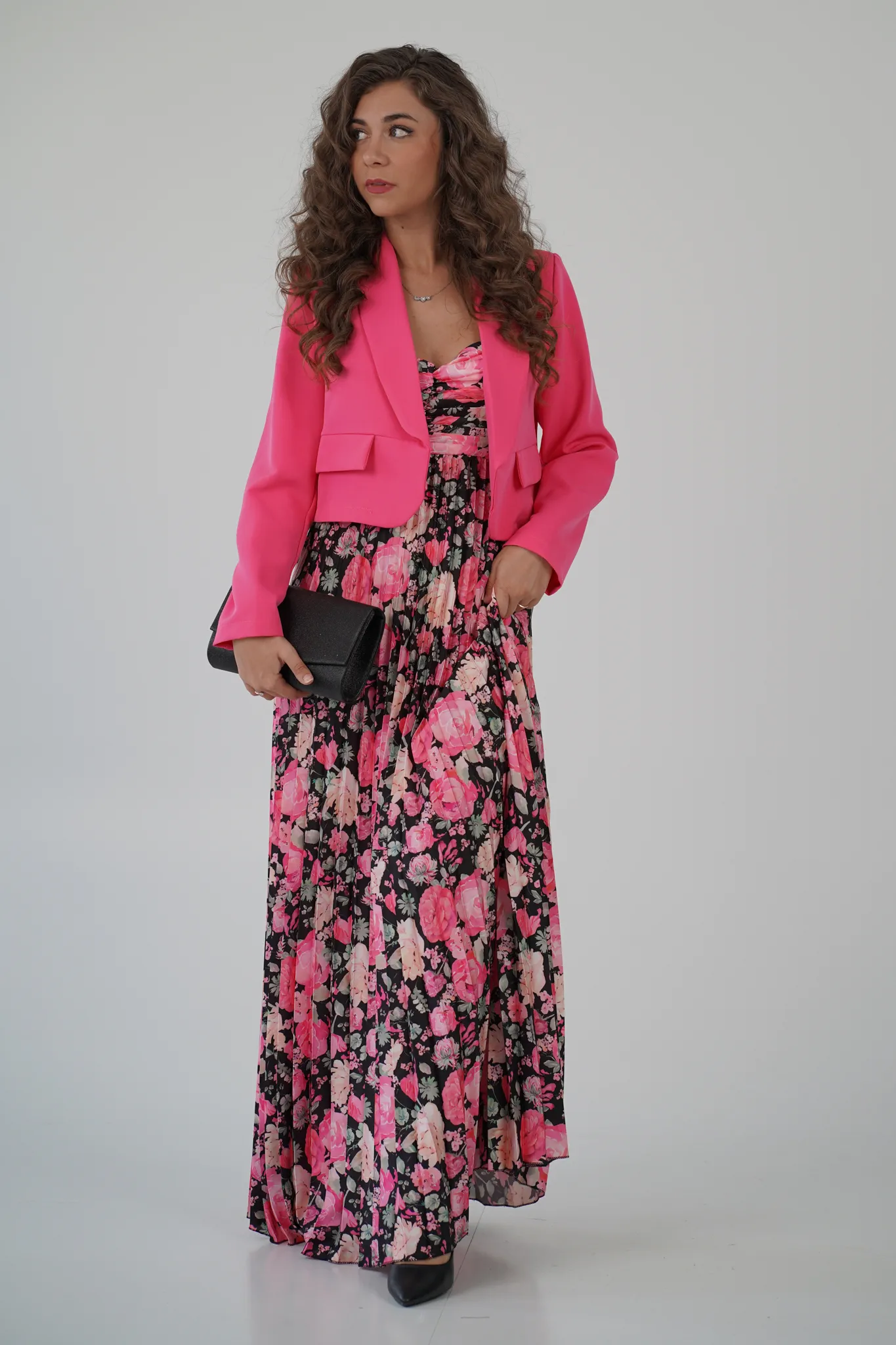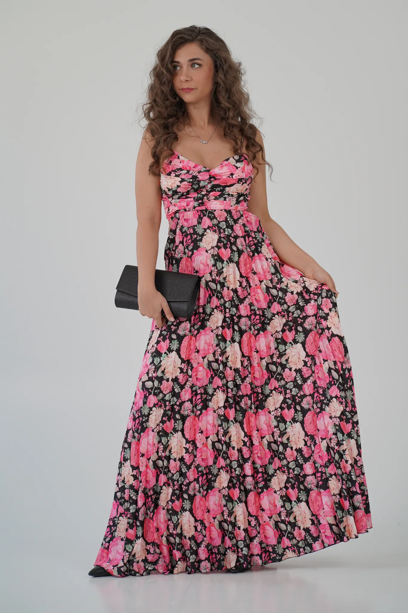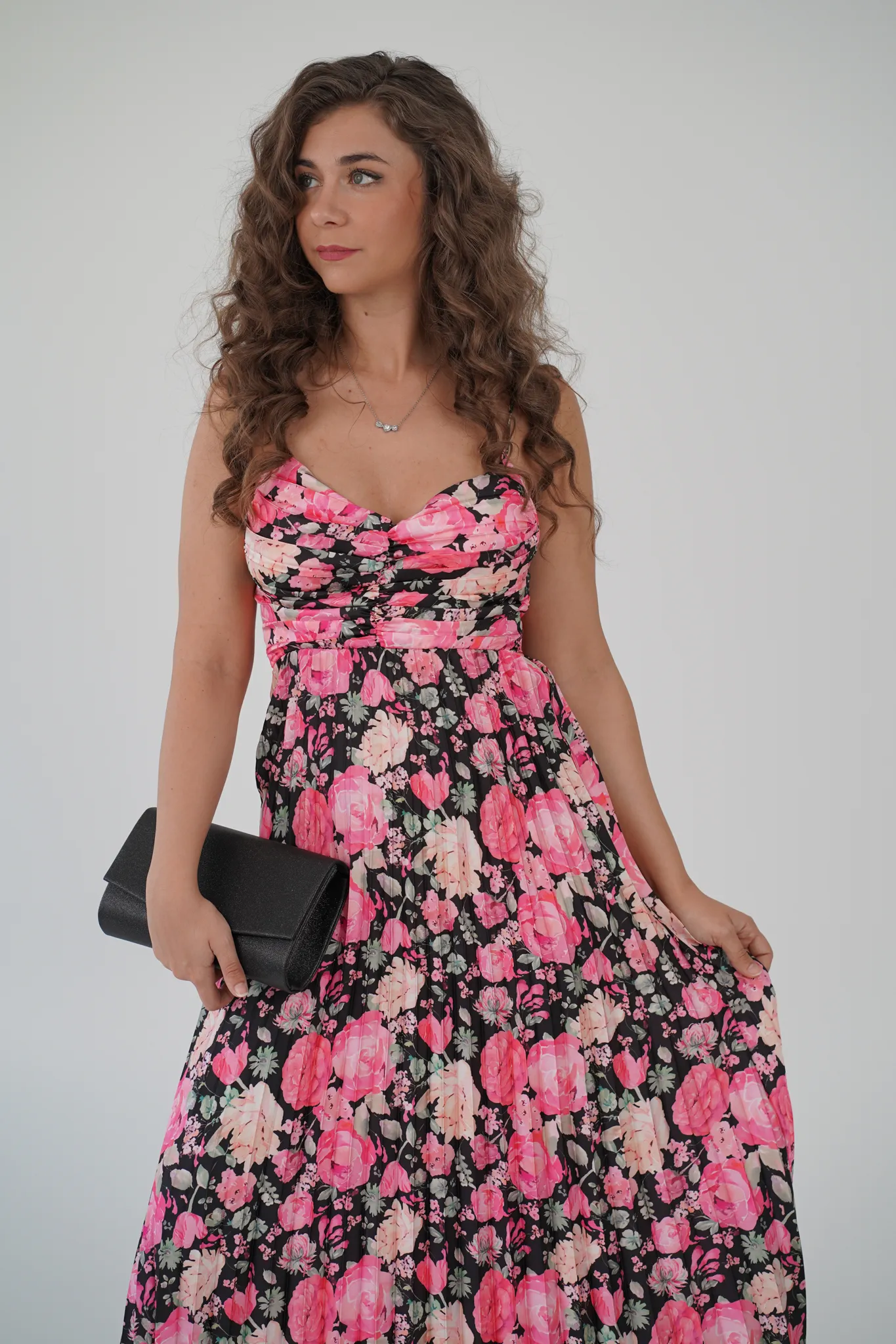 Descrizione: Abito lungo dal fascino romantico e femminile 🌸 caratterizzato da una stampa floreale intensa che cattura subito lo sguardo ✨