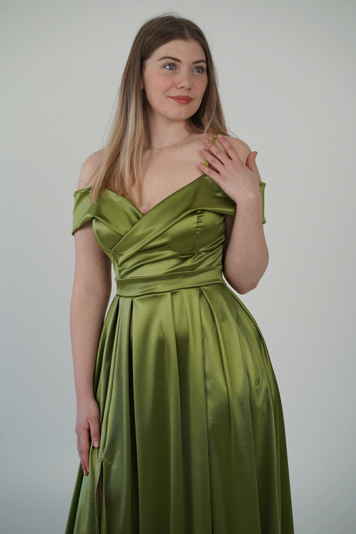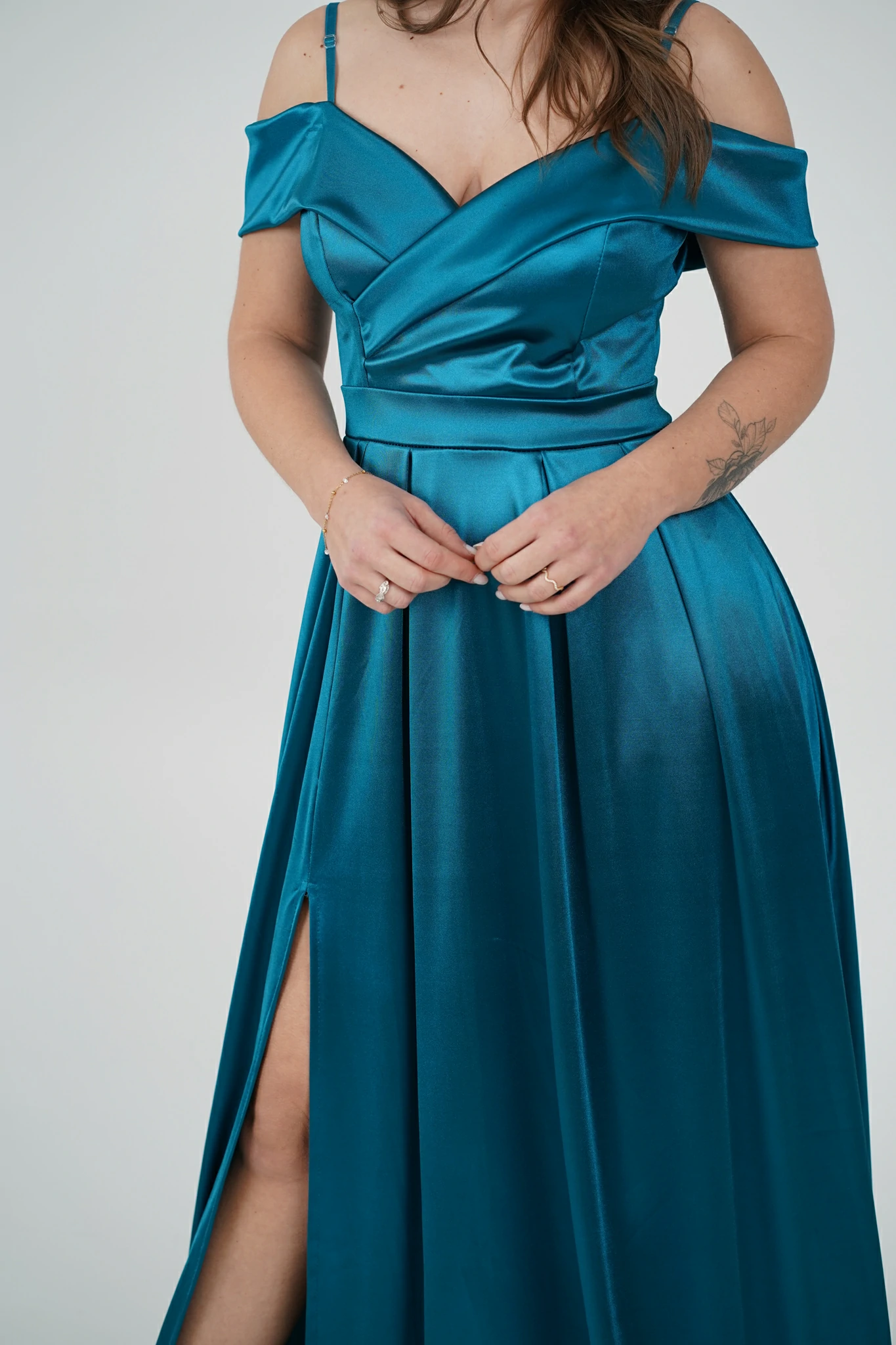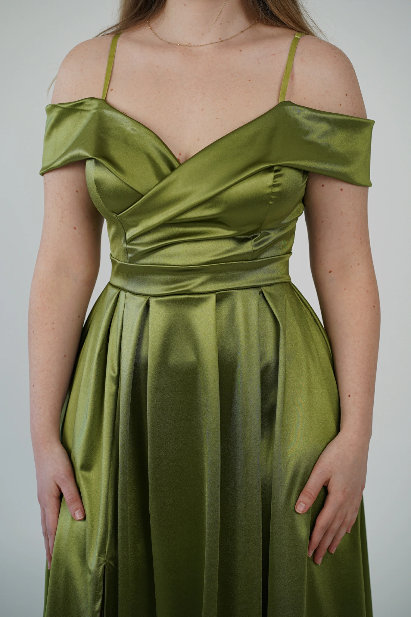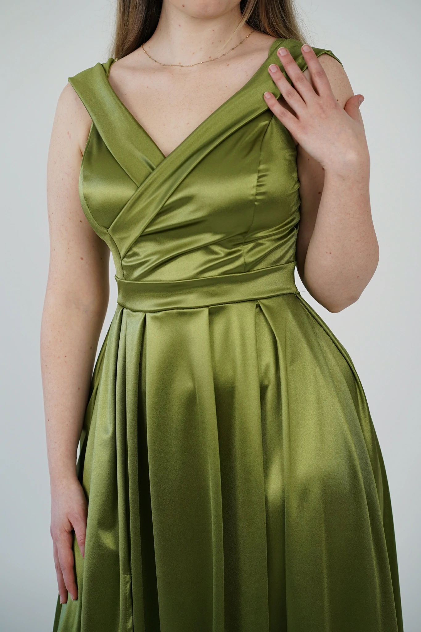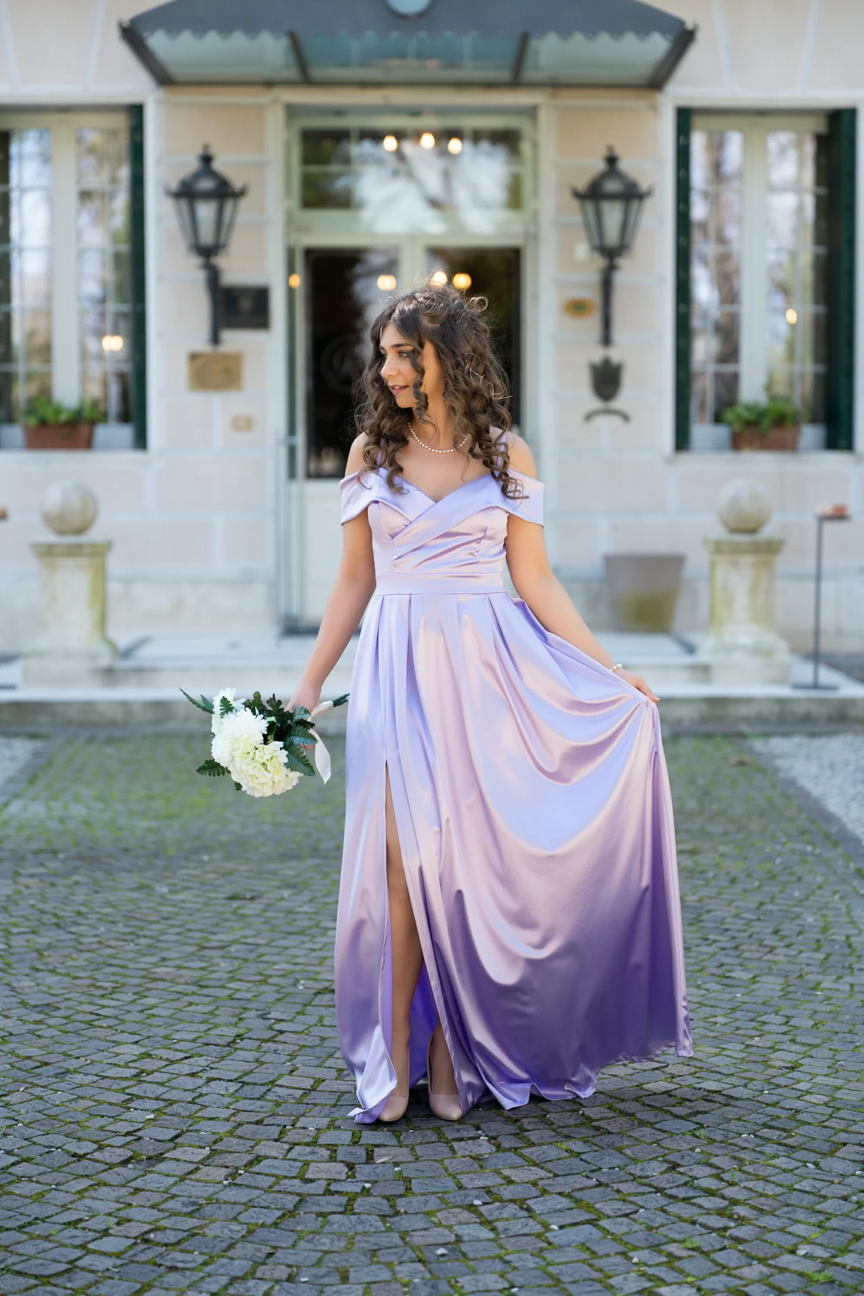 Descrizione: Abito da cerimonia con ampia e svolazzante gonna in raso