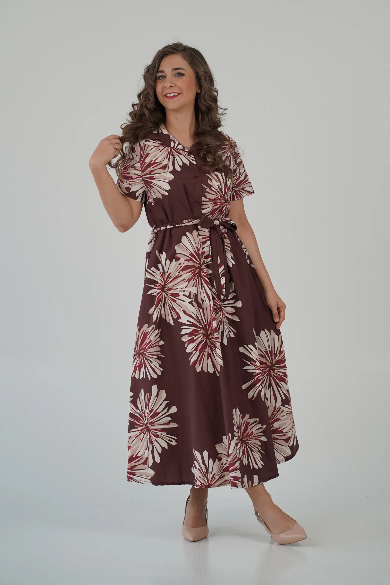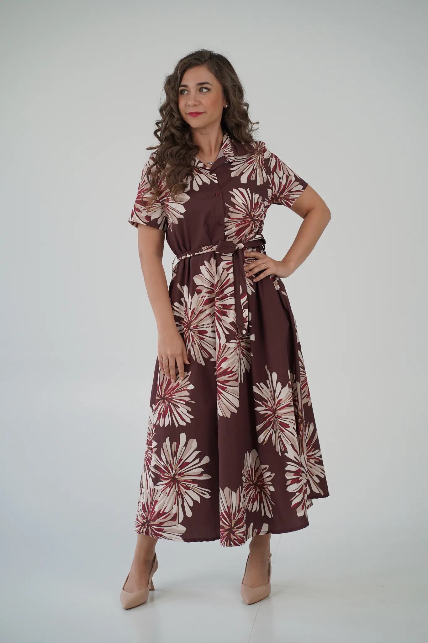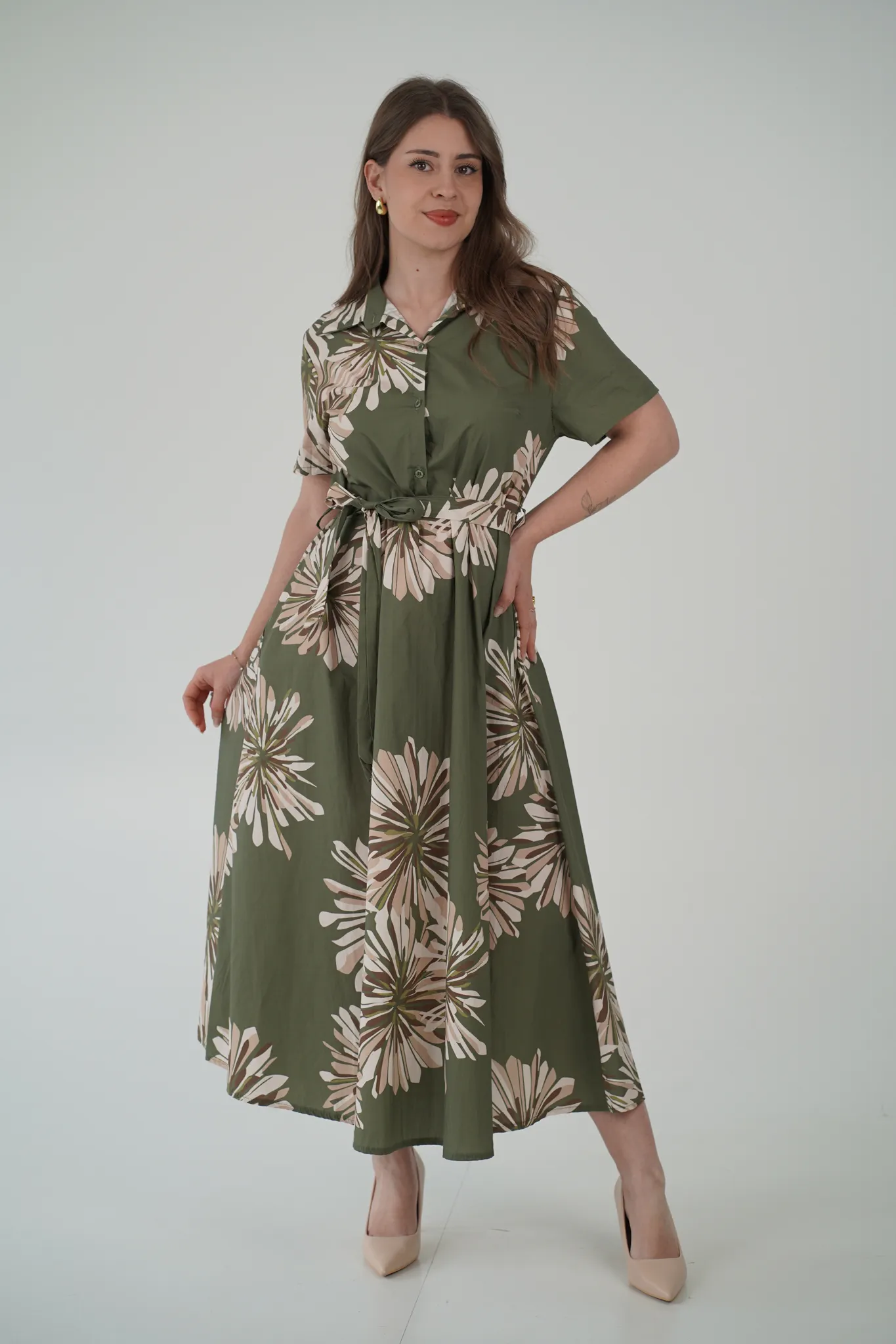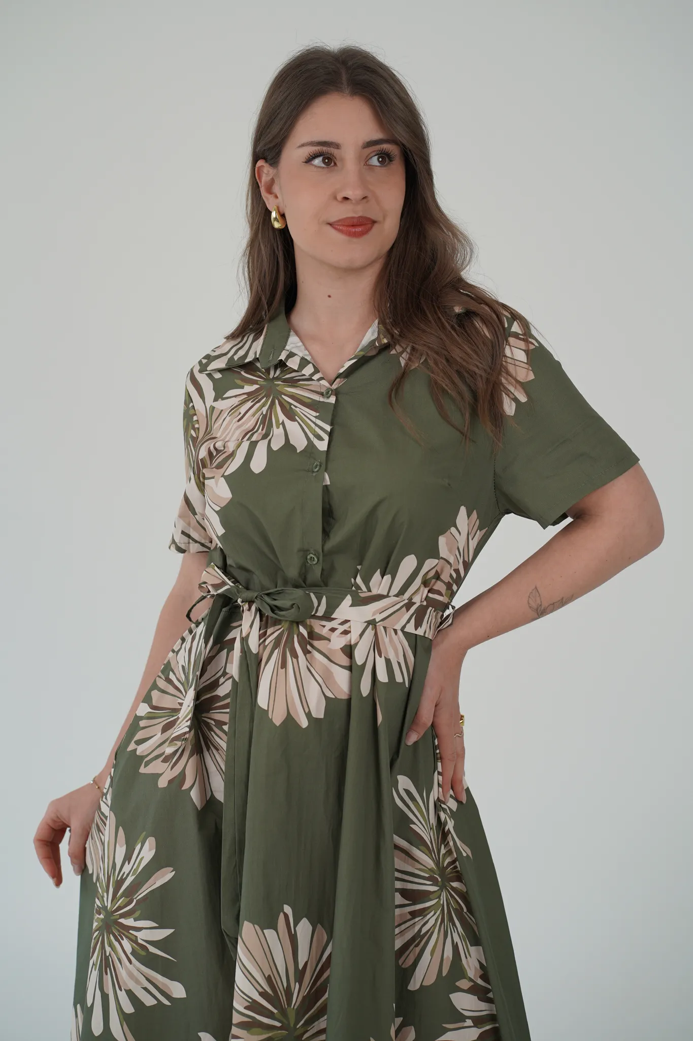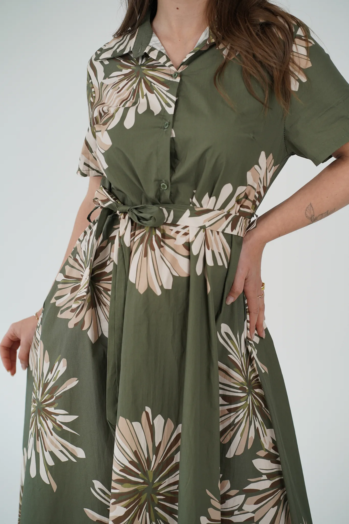 Realizzato in cotone leggero, è fresco sulla pelle e valorizza la silhouette grazie al cinturino tono su tono che segna delicatamente il punto vita.