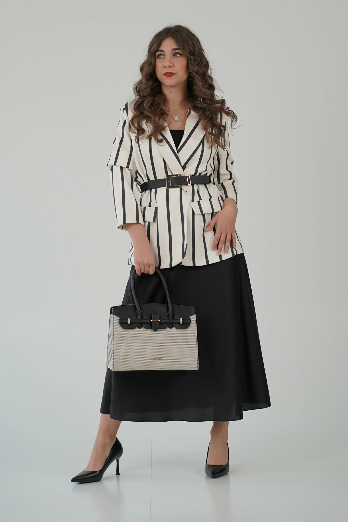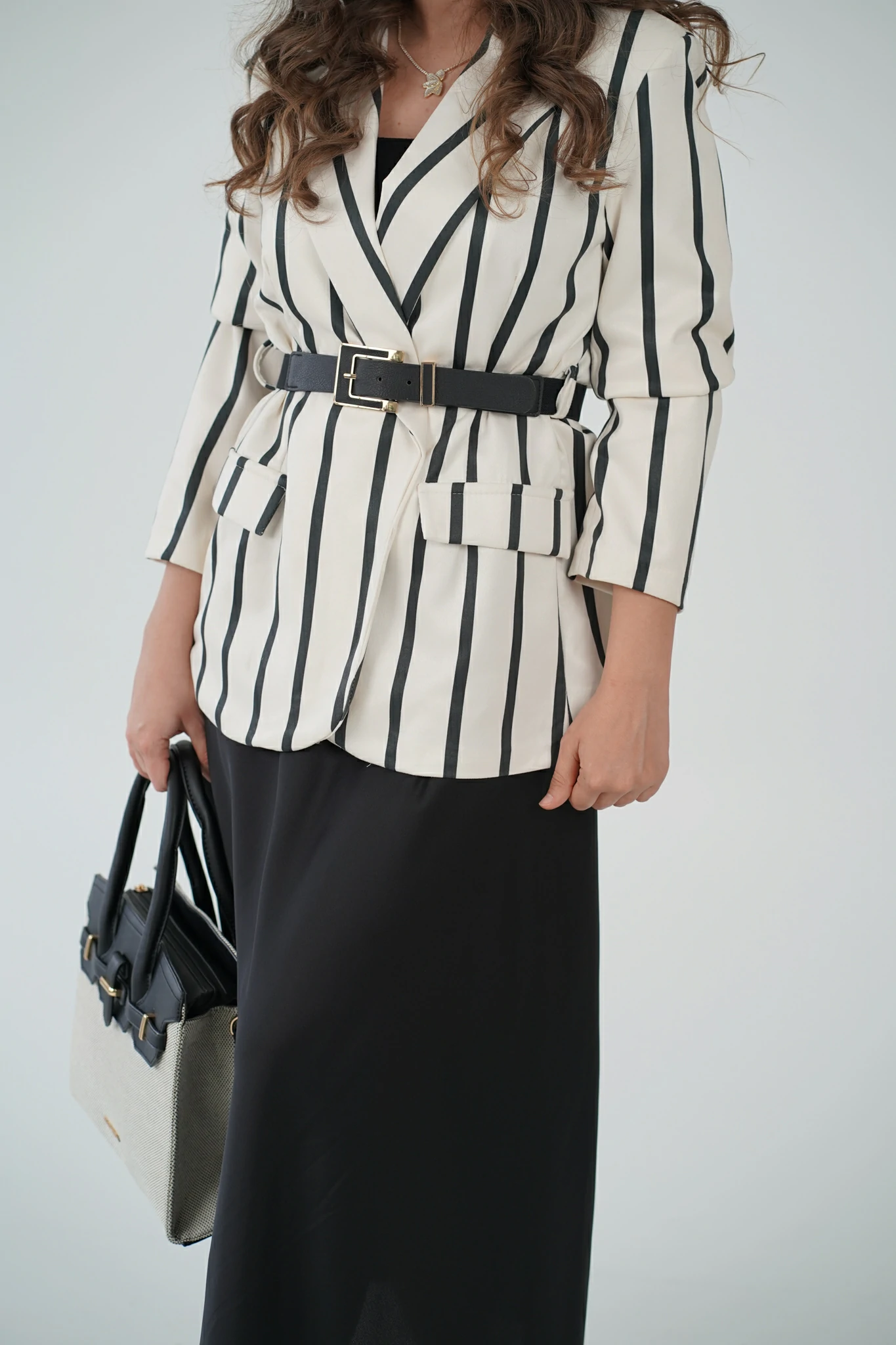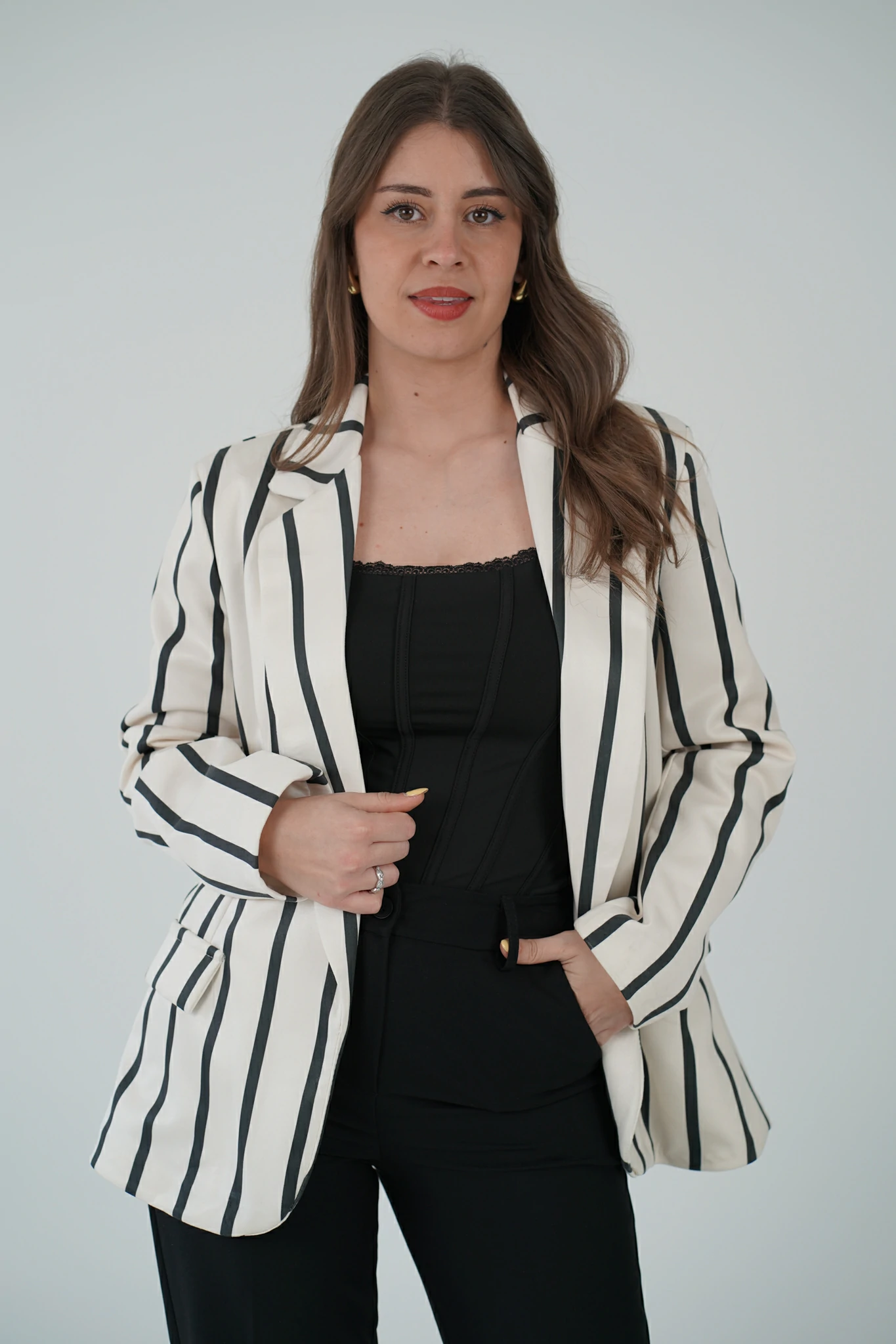 Blazer panna a righe nere – eleganza decisa e contemporanea