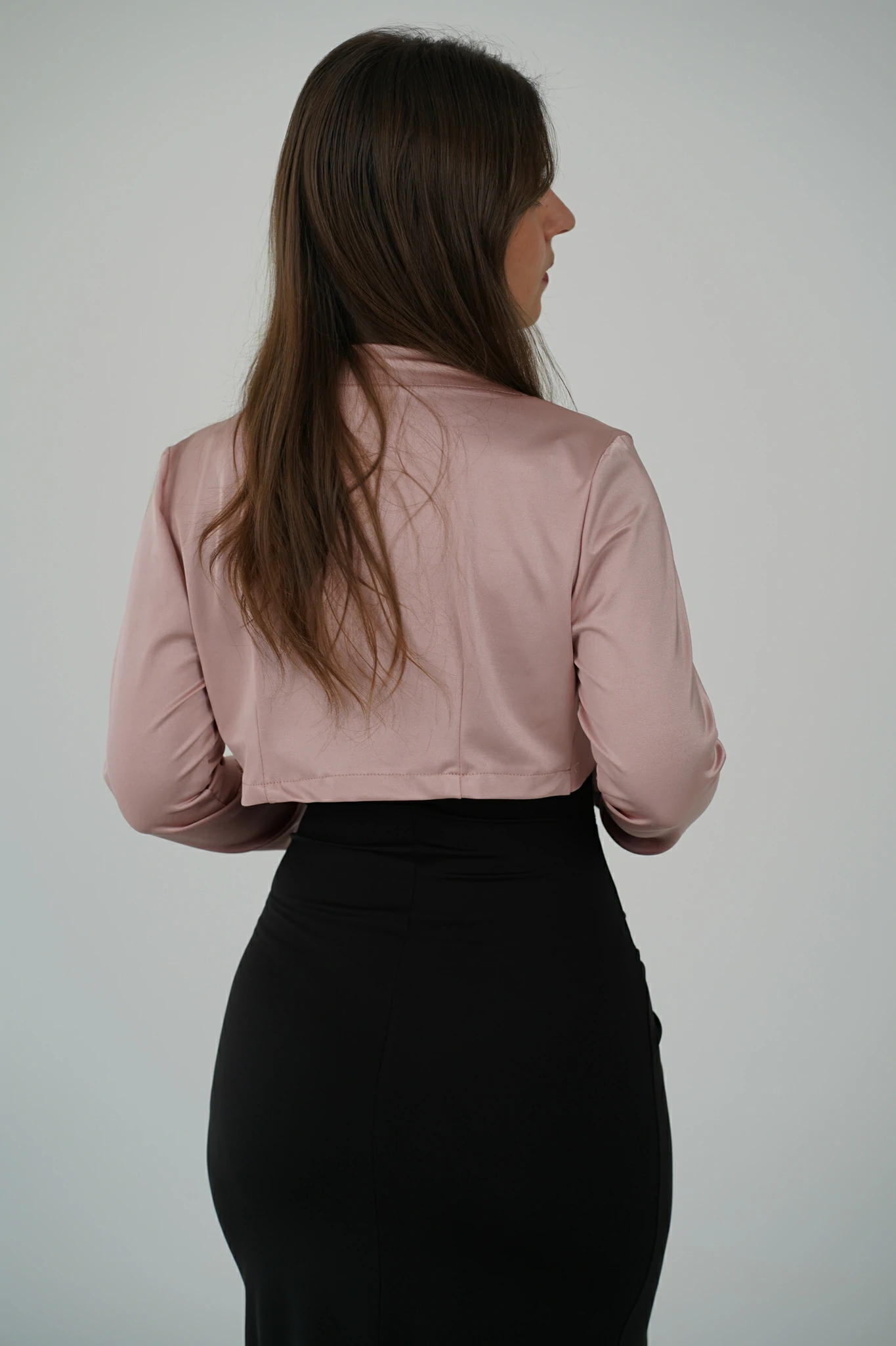 Descrizione: Bolerino corto in morbido e lucente raso ✨