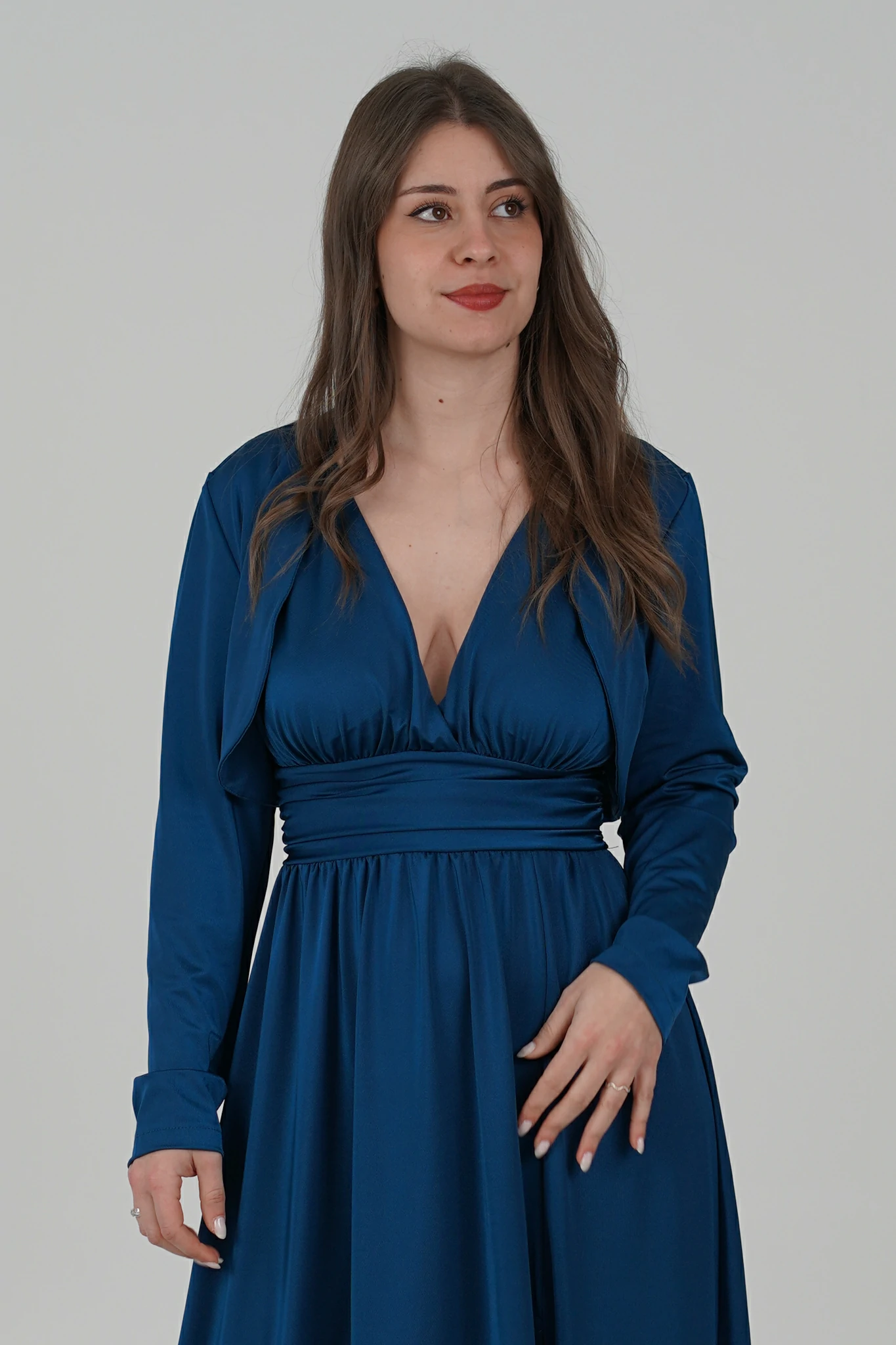Indossato sopra un abito da cerimonia, questo bolerino in raso esalta il look, creando un effetto elegante e raffinato 💖