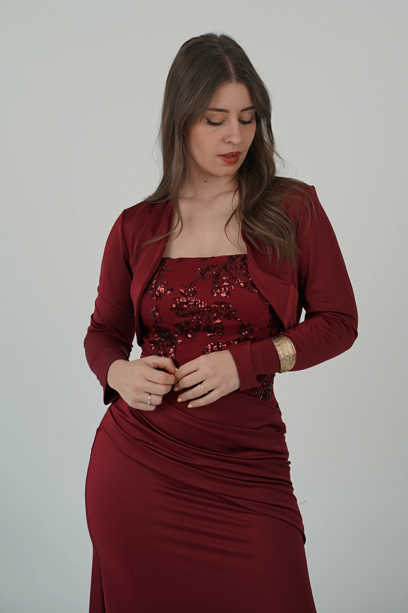 É una soluzione elegante e funzionale per chi vuole coprire spalle e braccia con raffinatezza e senza compromettere l’aspetto delicato e femminile dell’abito