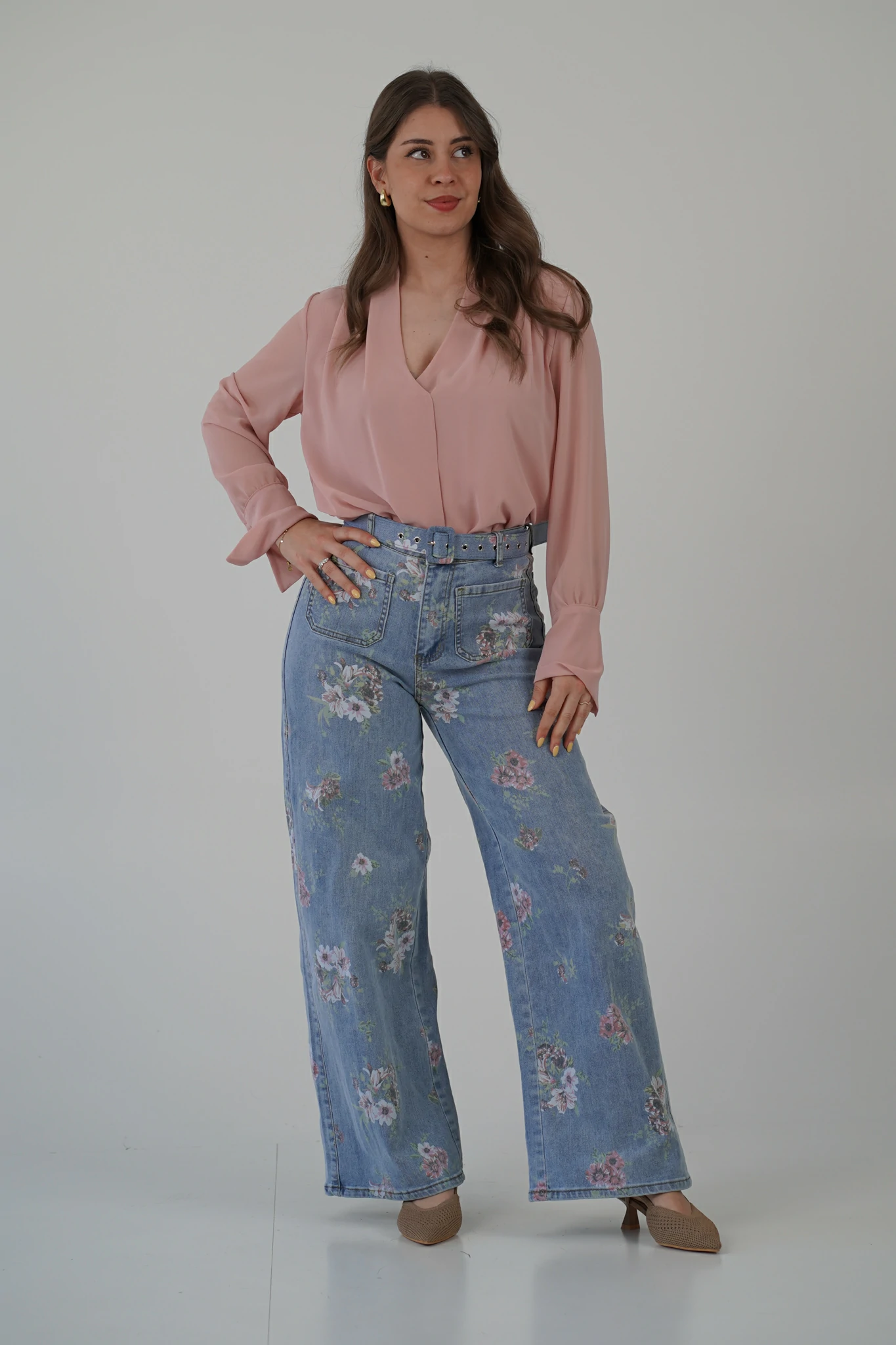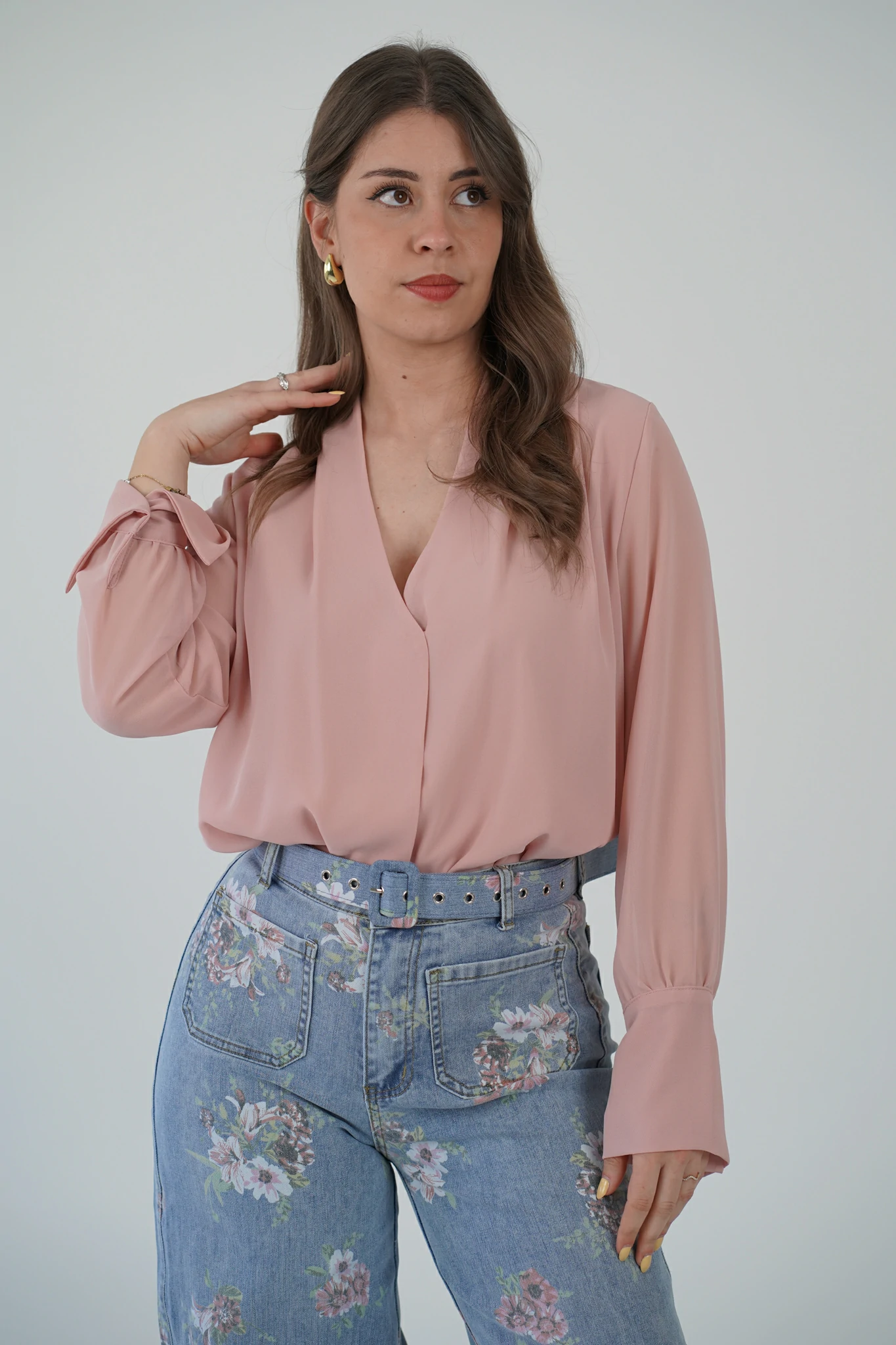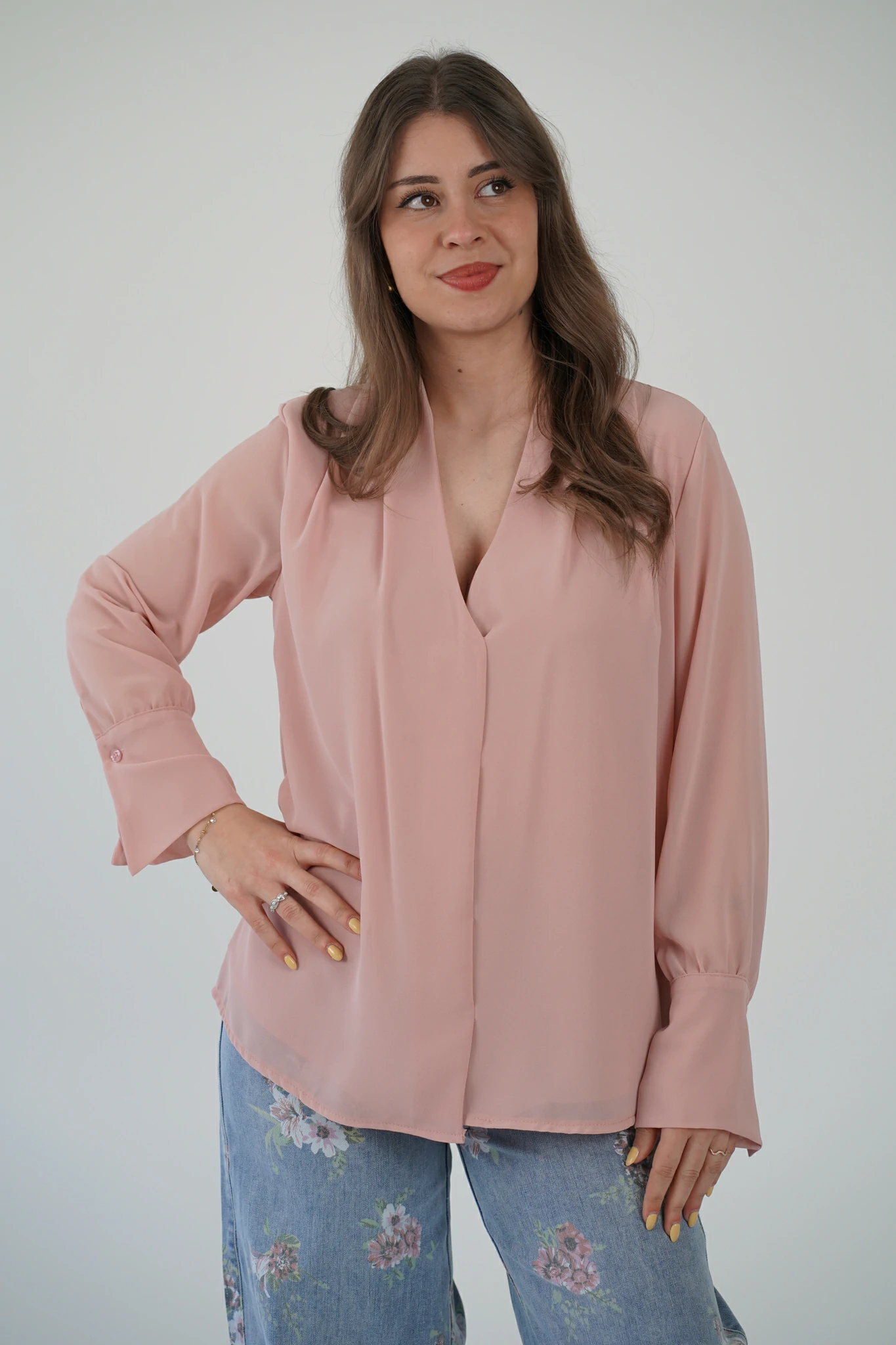 Descrizione: Camicetta basica con scollo a V e manichetta lunga con bottoncino