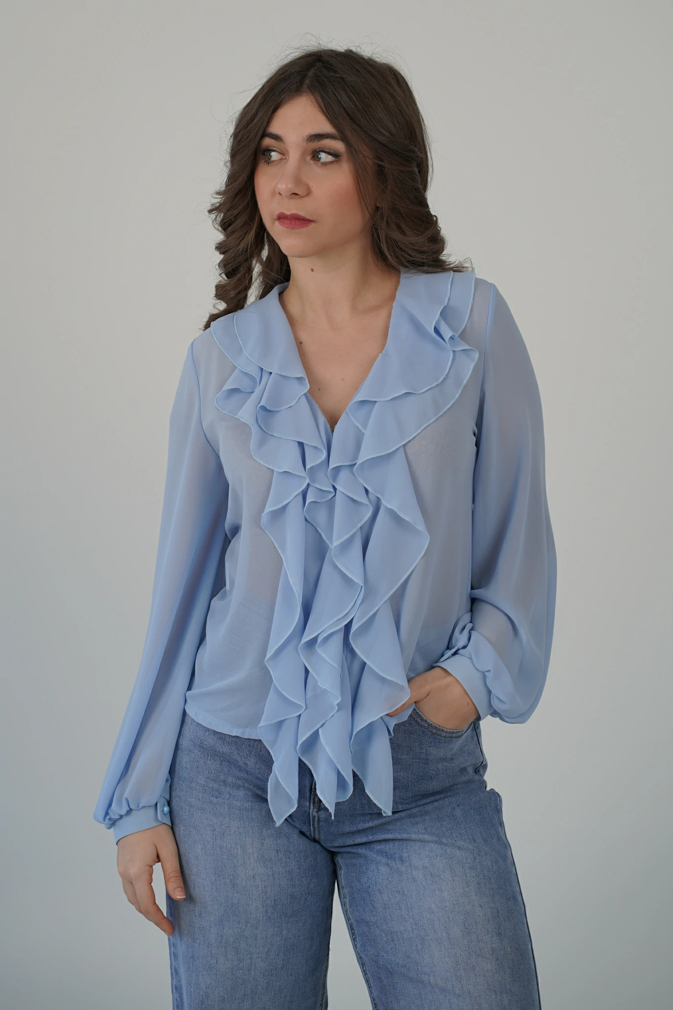 Camicia Volant Scollo a V