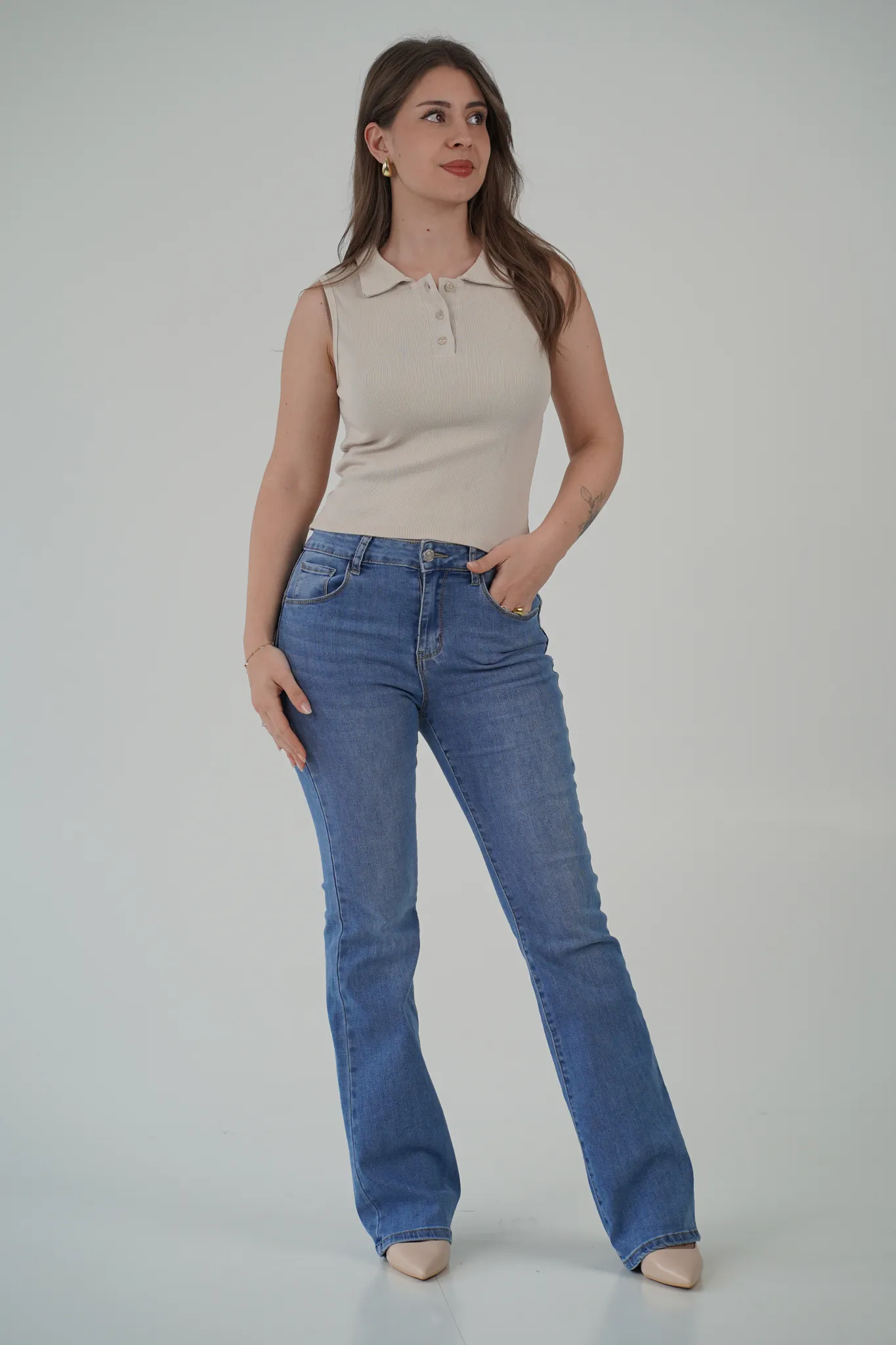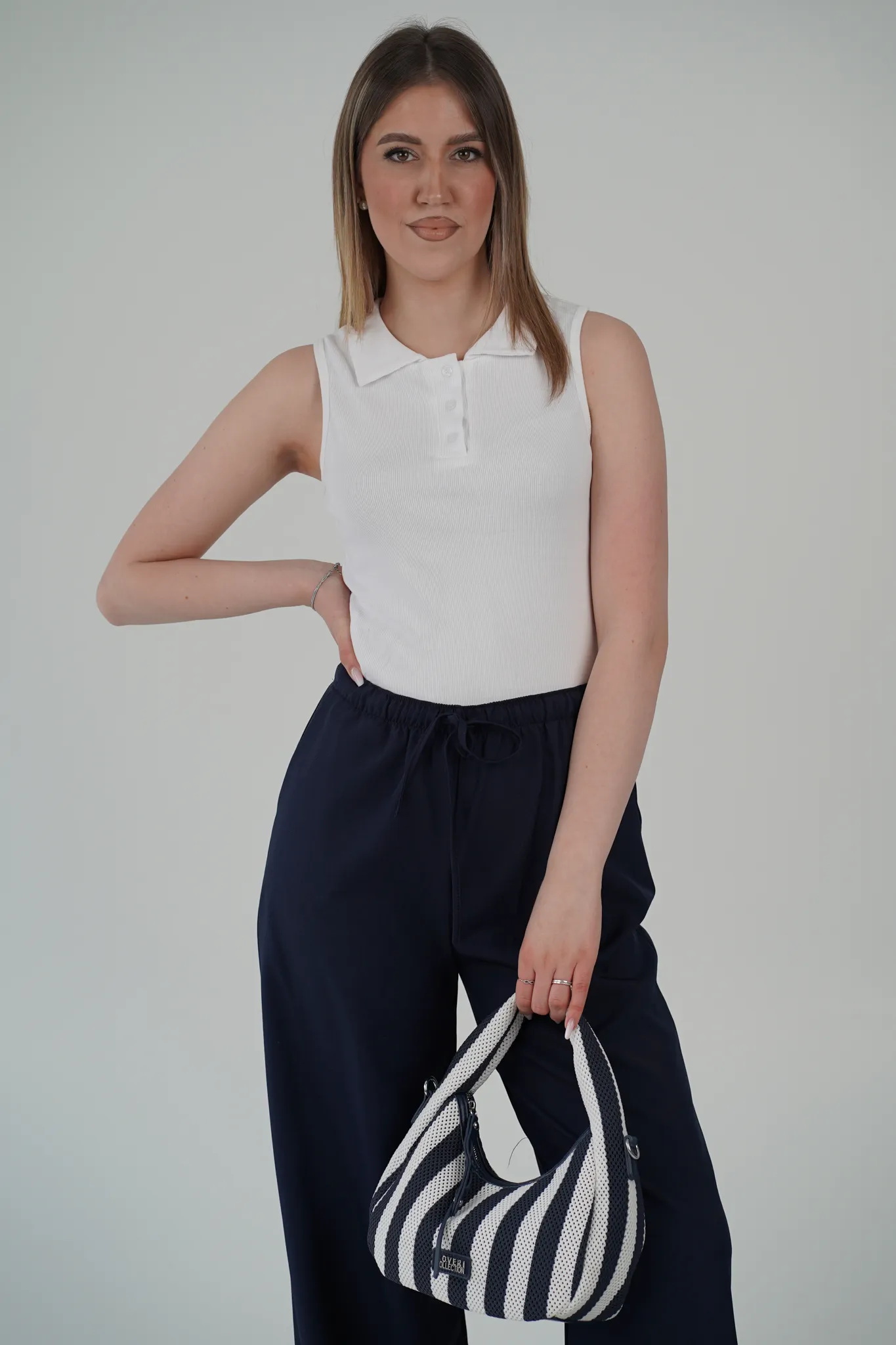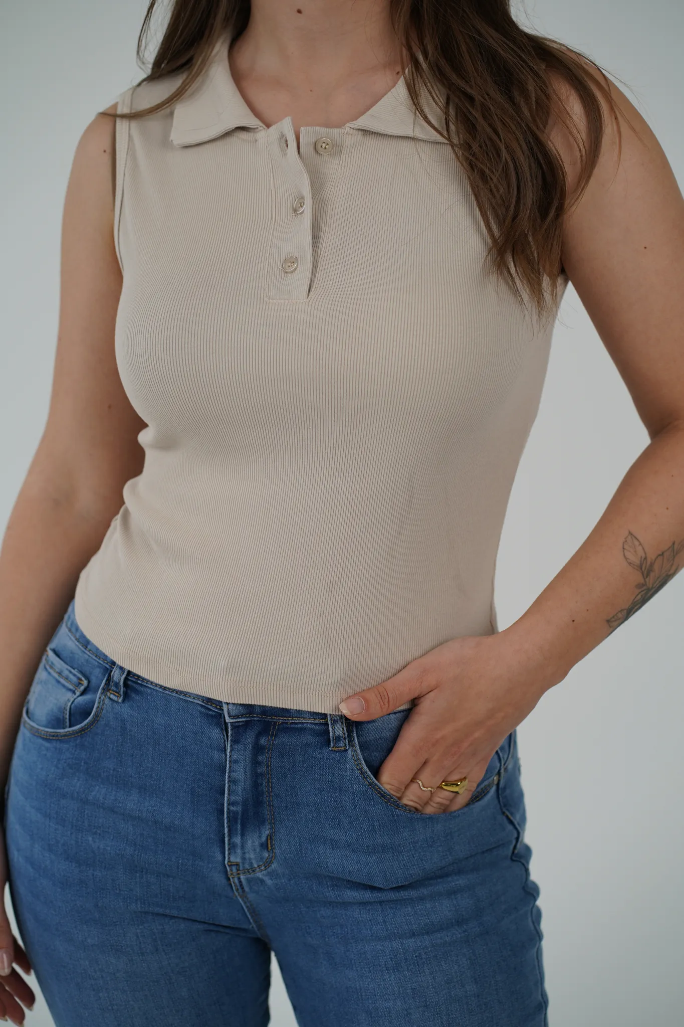 Descrizione: Canotta a costine sottili con colletto a camicia e tre bottoncini dal design sofisticato e curato nei dettagli ✨