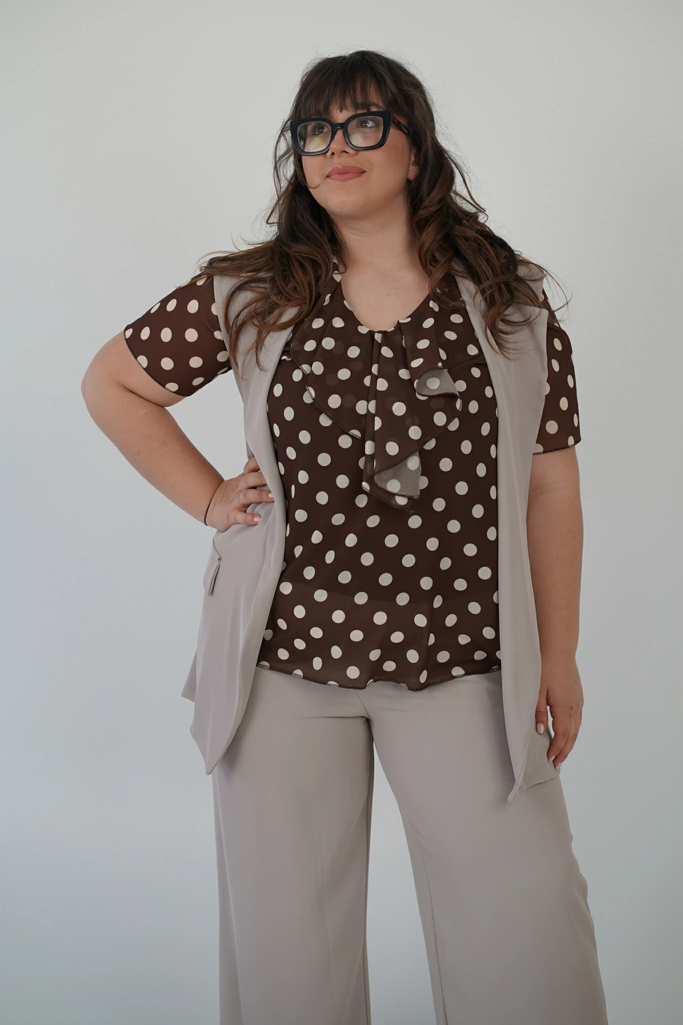Il gilet con cintura in vita valorizza la figura e dona struttura al look, mentre il pantalone ampio e fluido slancia la figura. Un completo versatile che si adatta perfettamente sia a look casual chic che a outfit più eleganti. ✨