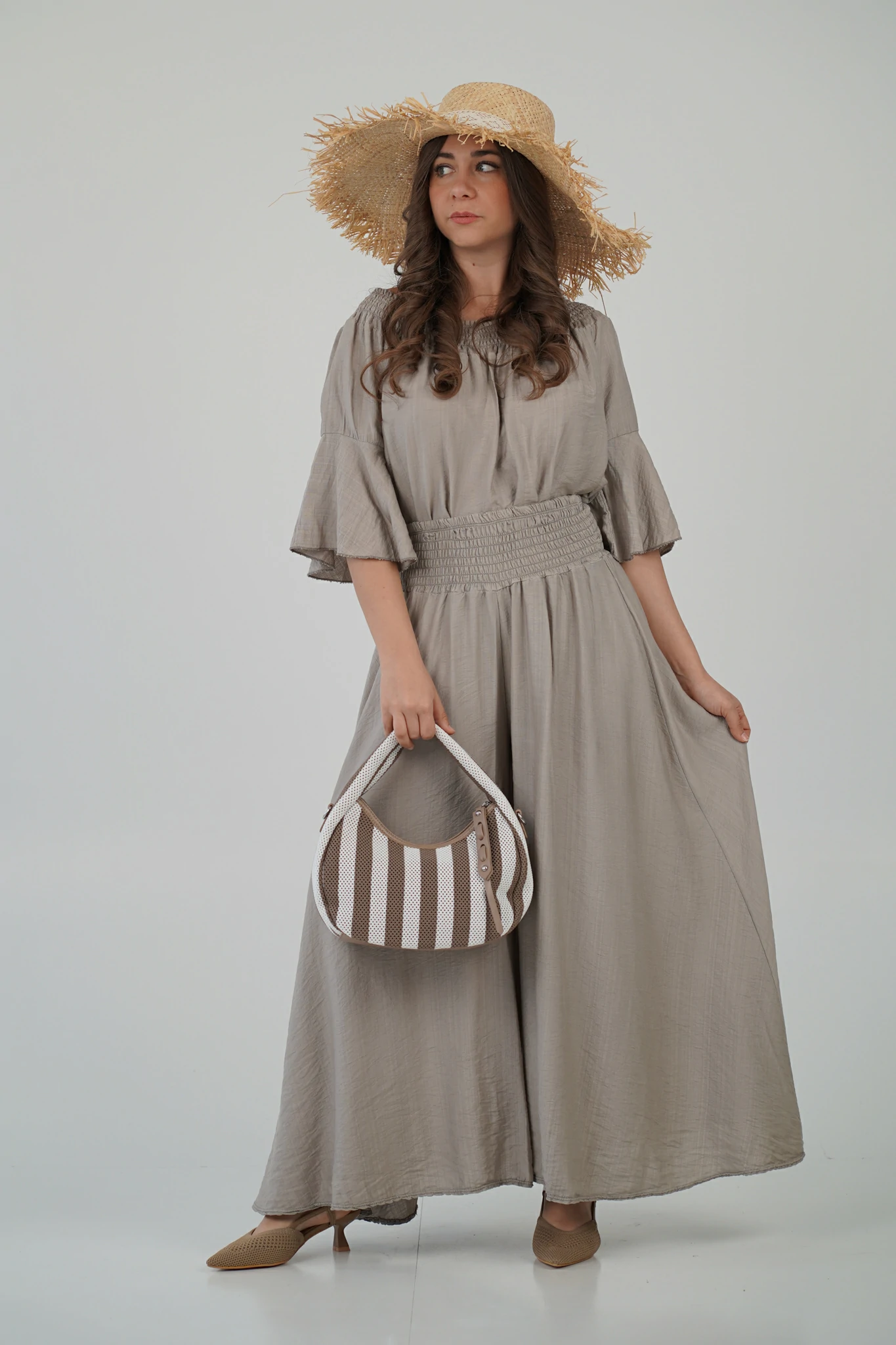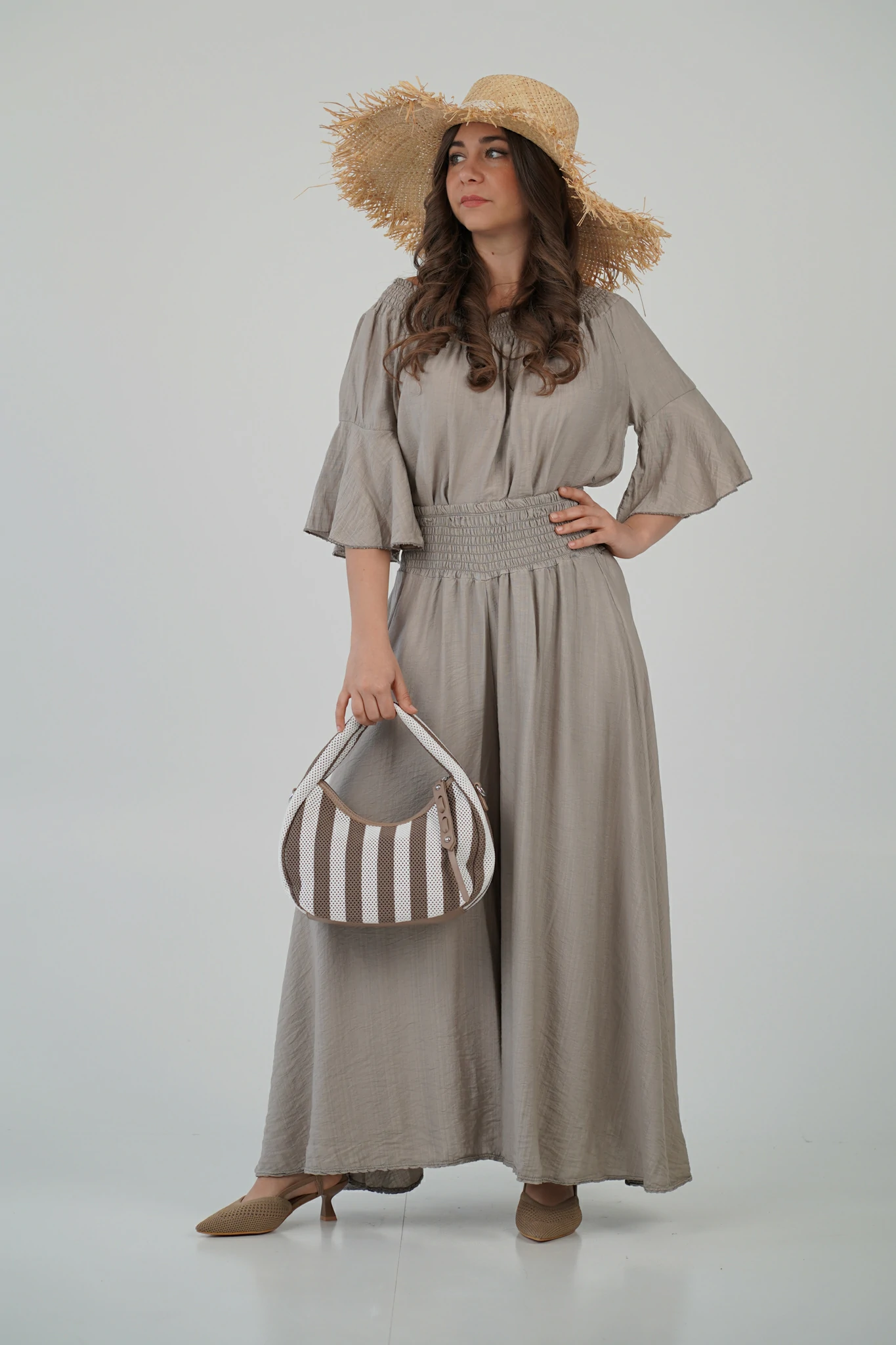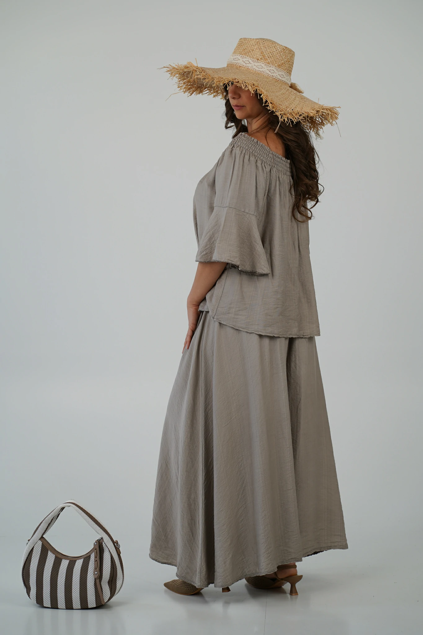 - 👡 Con sandali flat e borsa in paglia per un look easy-chic da giorno