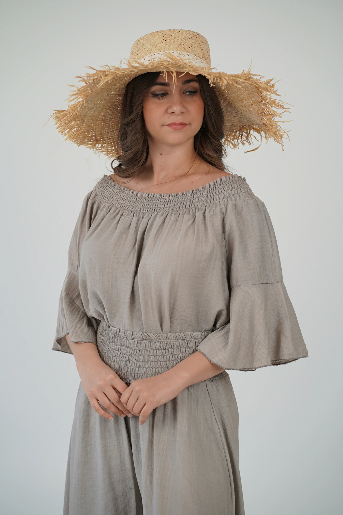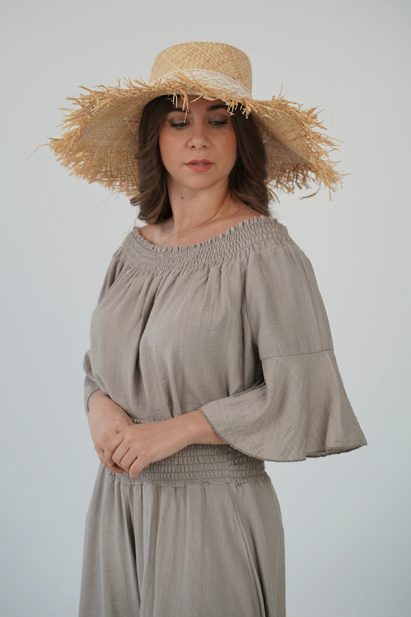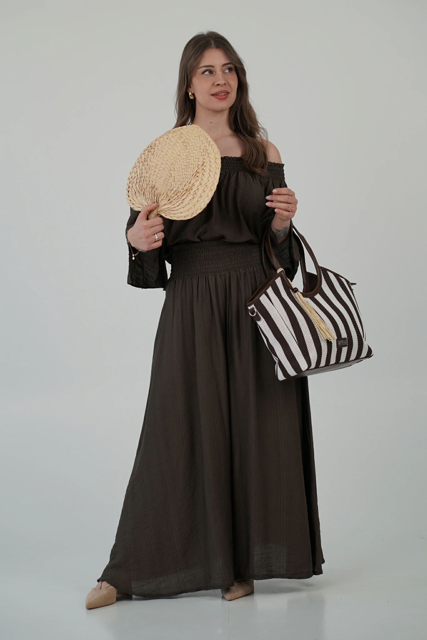- 👡 Con sandali flat e borsa in paglia per un look easy-chic da giorno