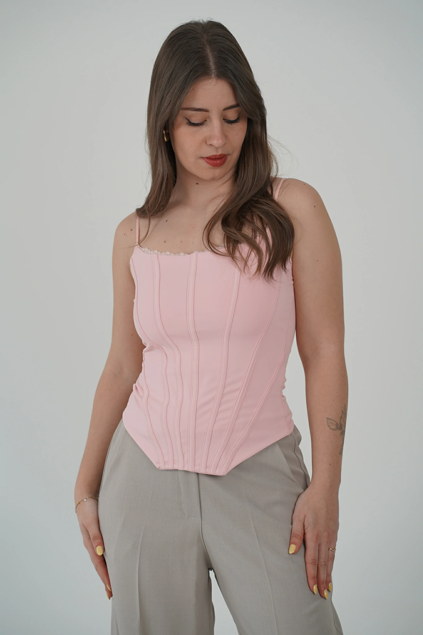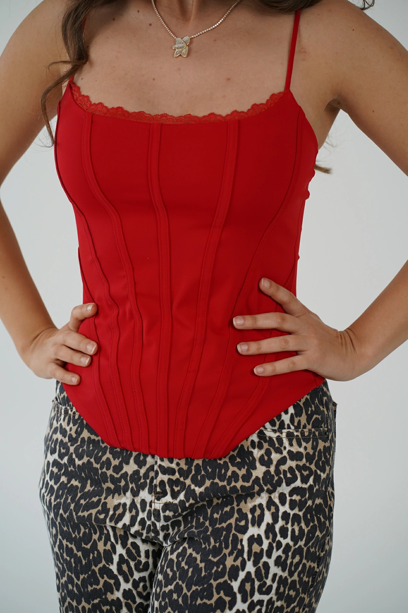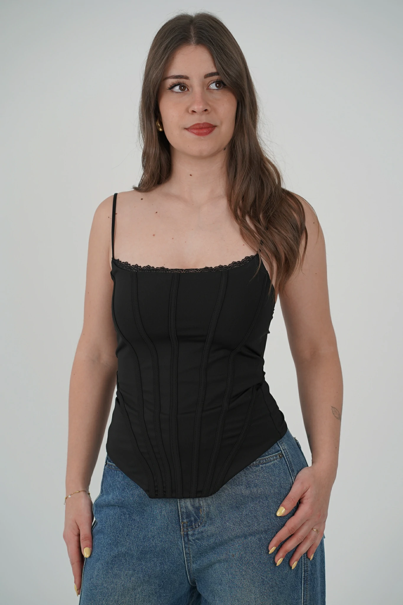 Descrizione: Corsetto con Spalline Sottili e Bordino in Pizzo