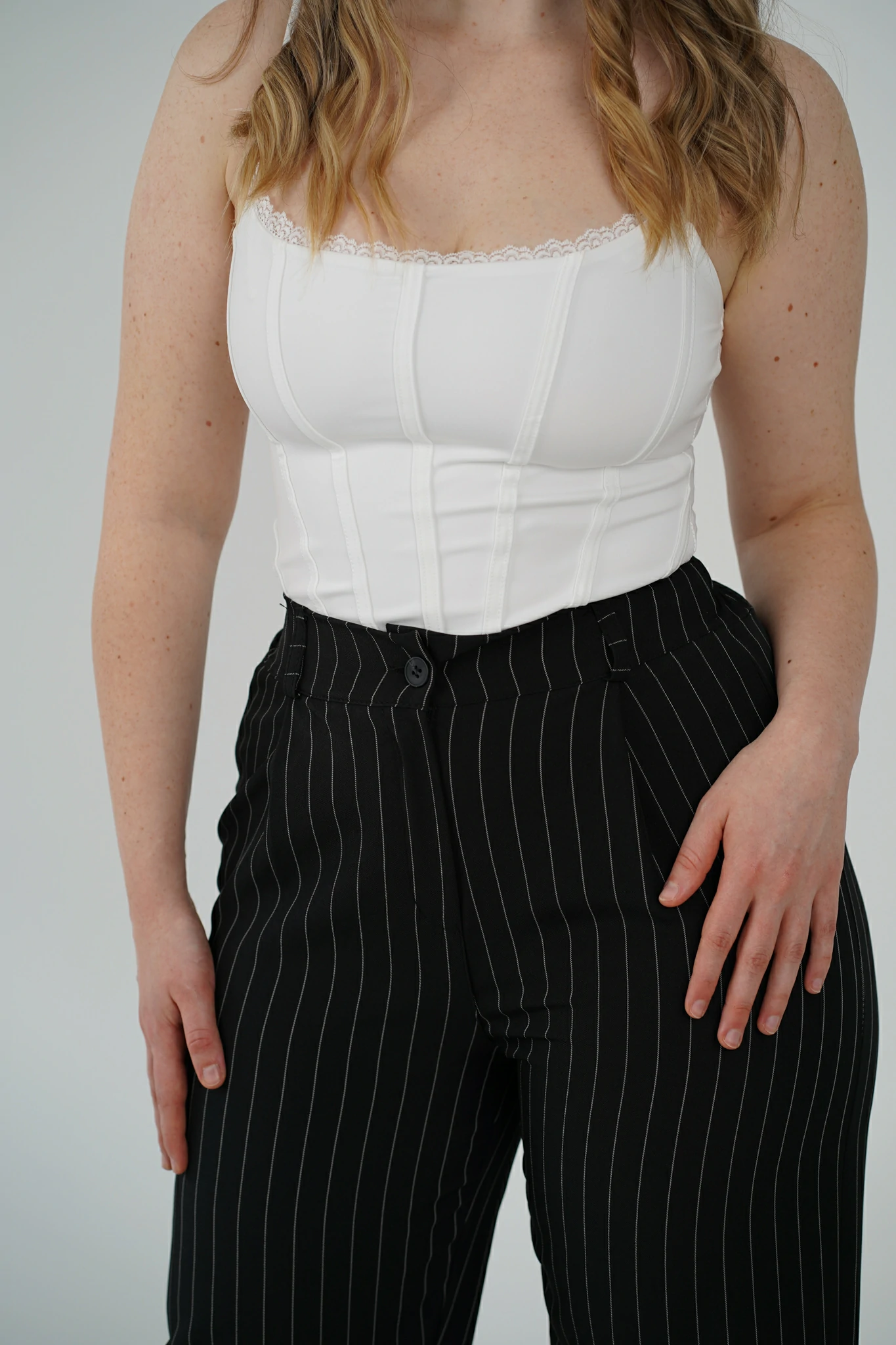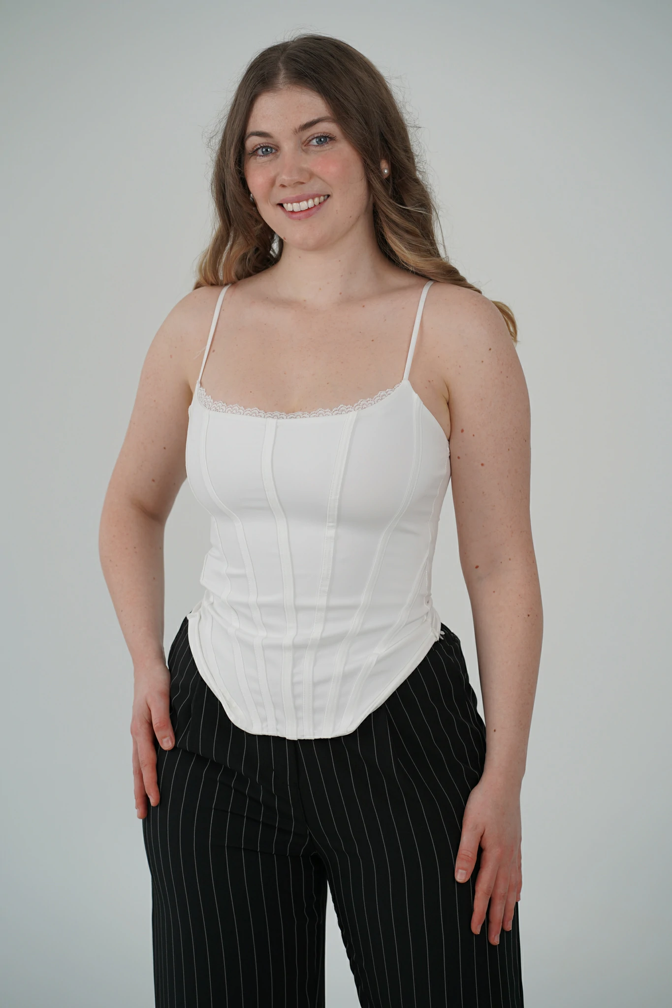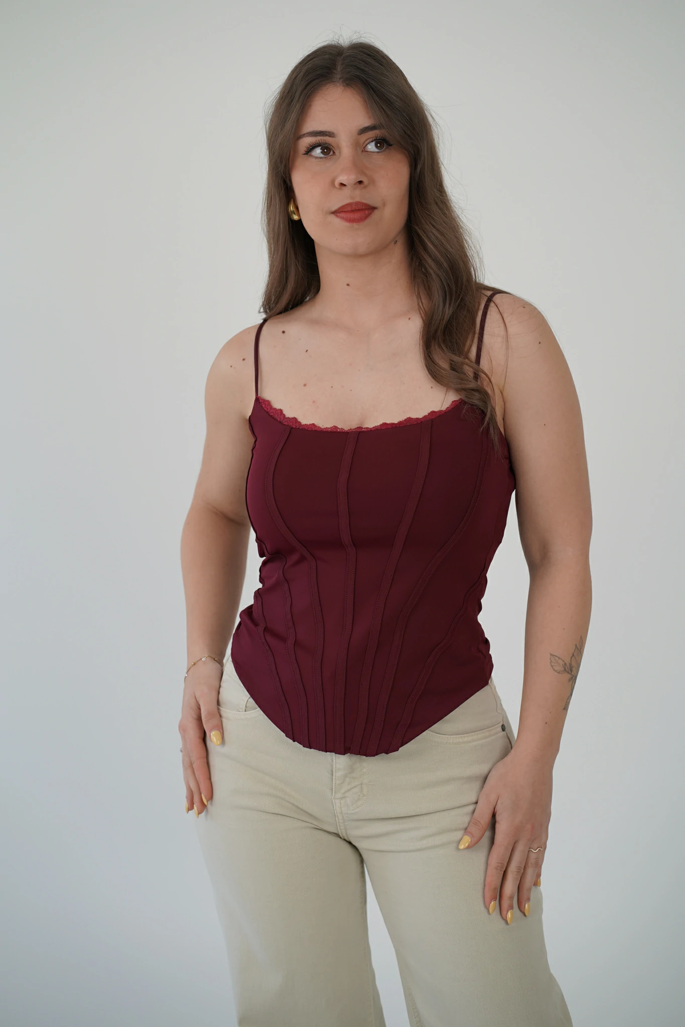Descrizione: Corsetto con Spalline Sottili e Bordino in Pizzo