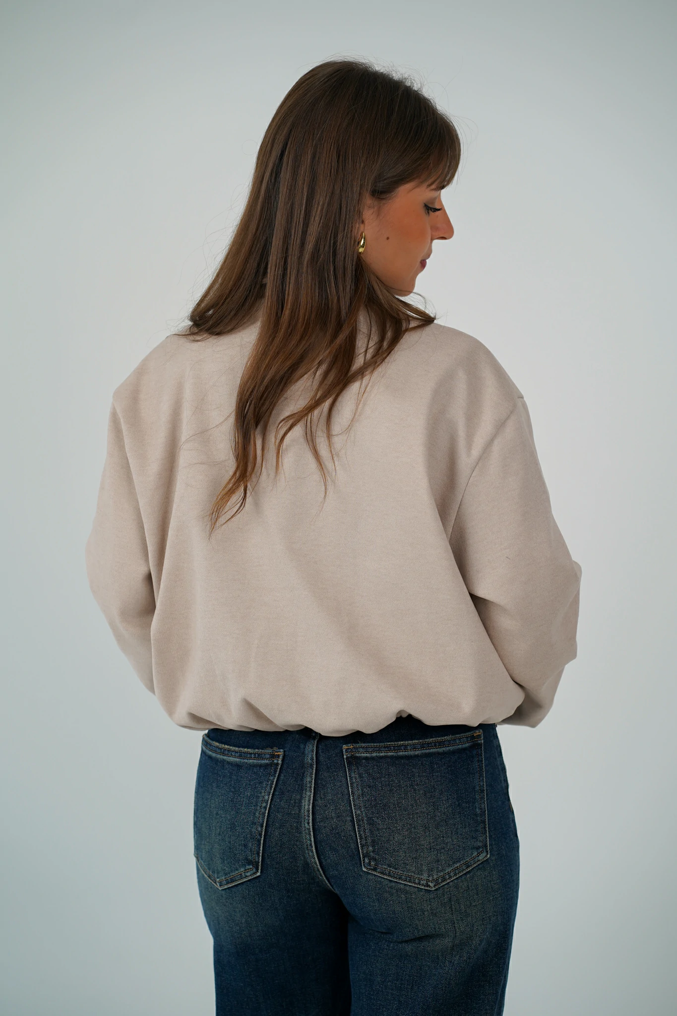 • Taglio bomber leggermente corto 👉 perfetto con pantaloni a vita alta