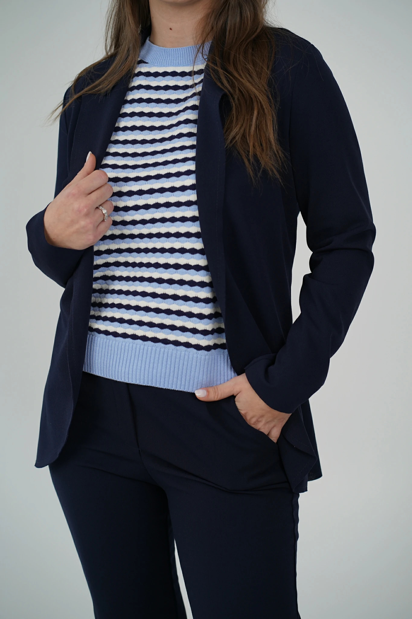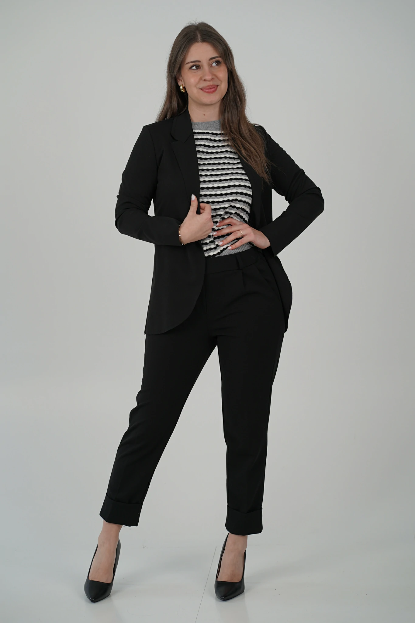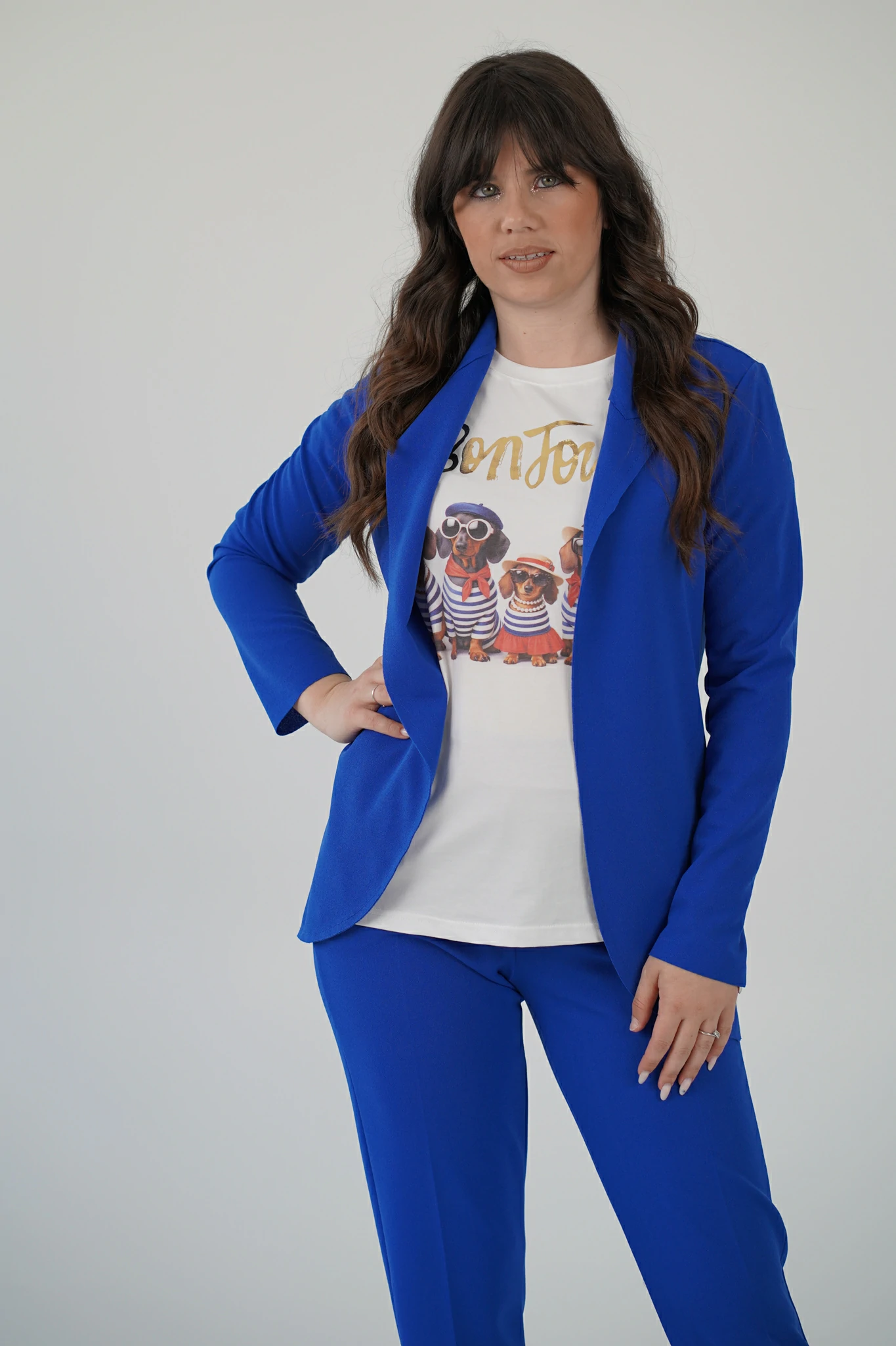 Portata con il pantalone coordinato è ideale per occasioni più formali
