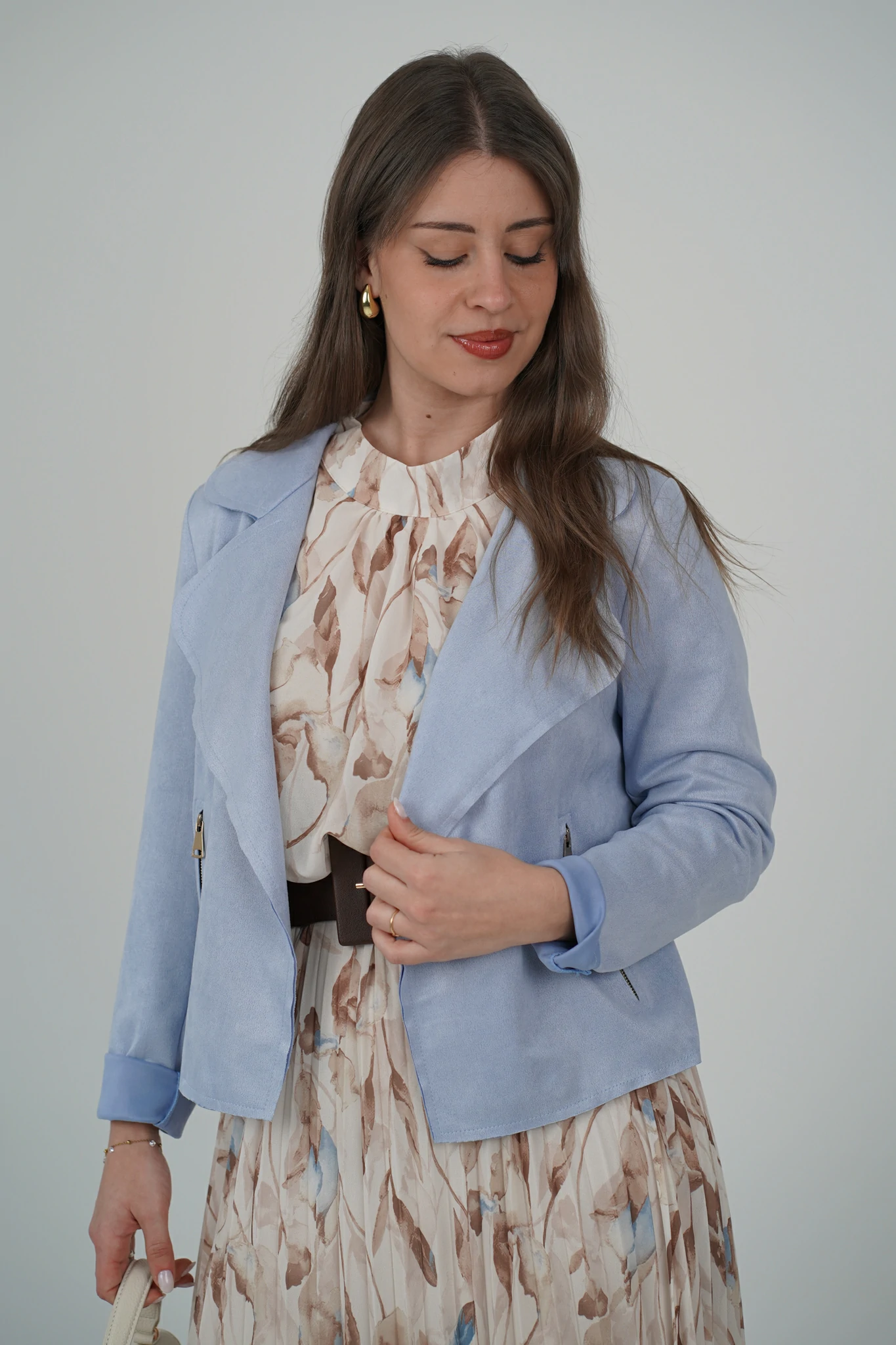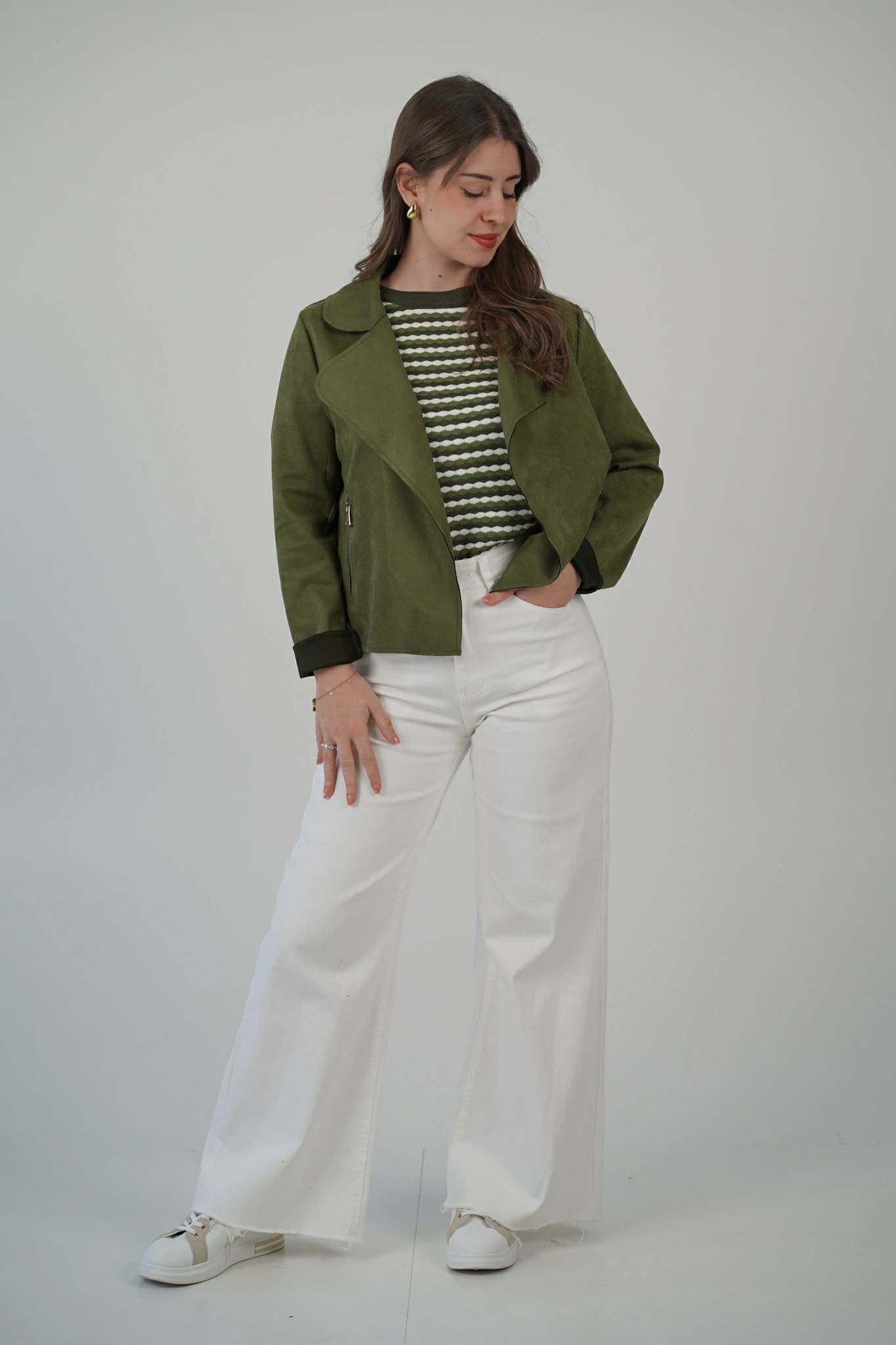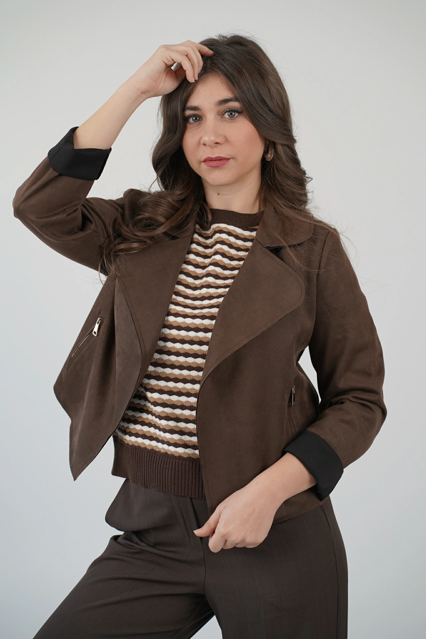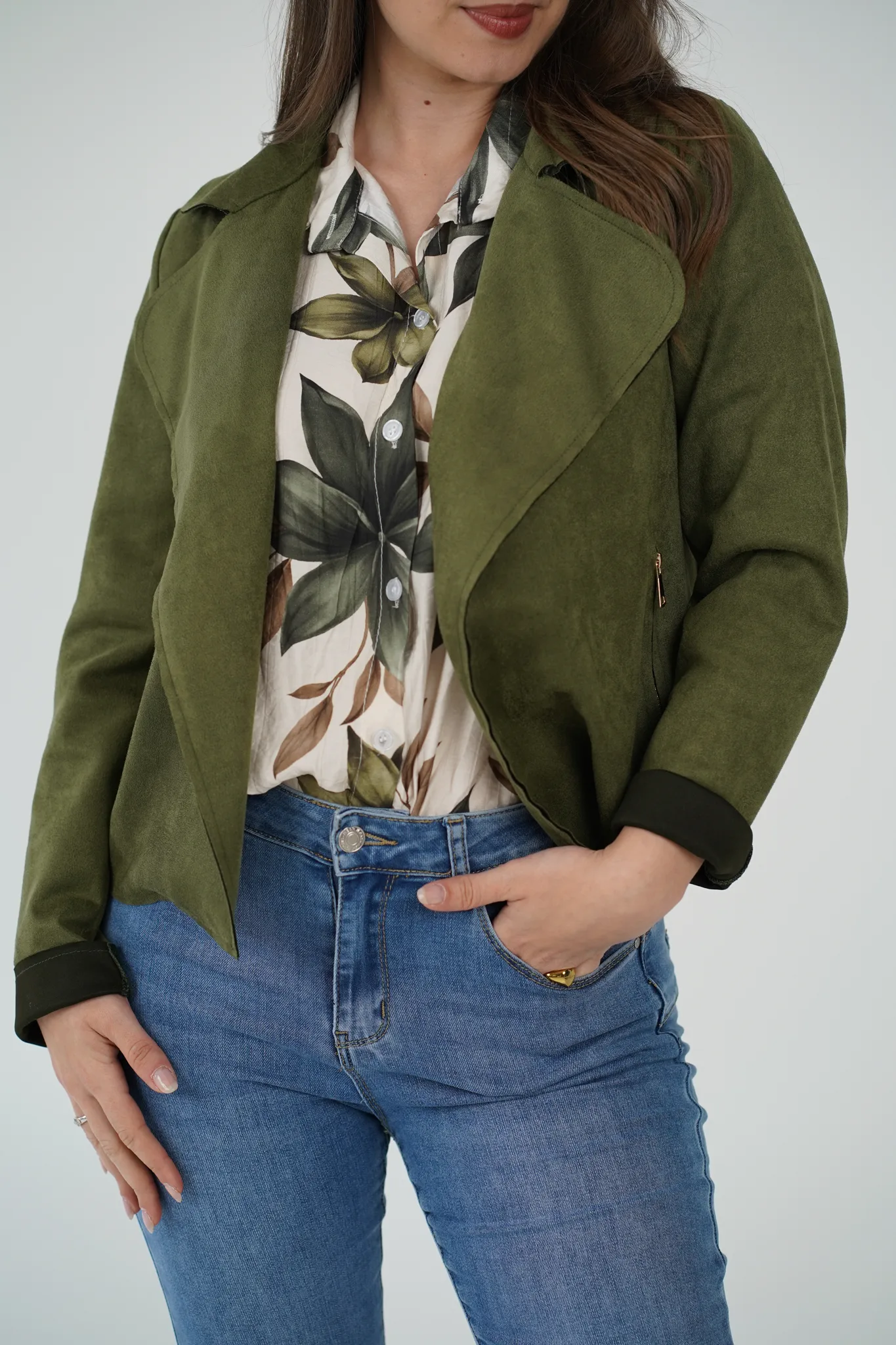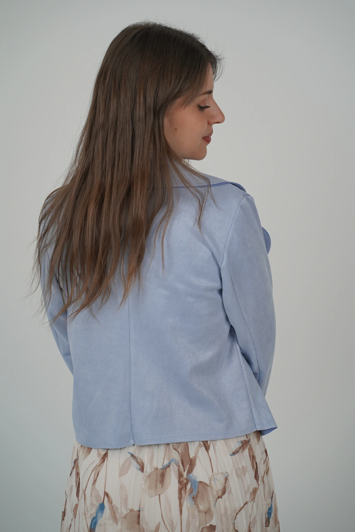 Descrizione: Questo giacchino corto in simil pelle scamosciata è ideale per completare i tuoi outfit