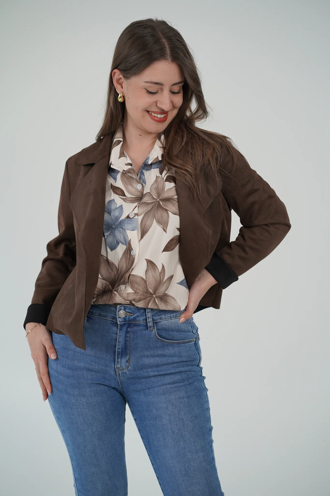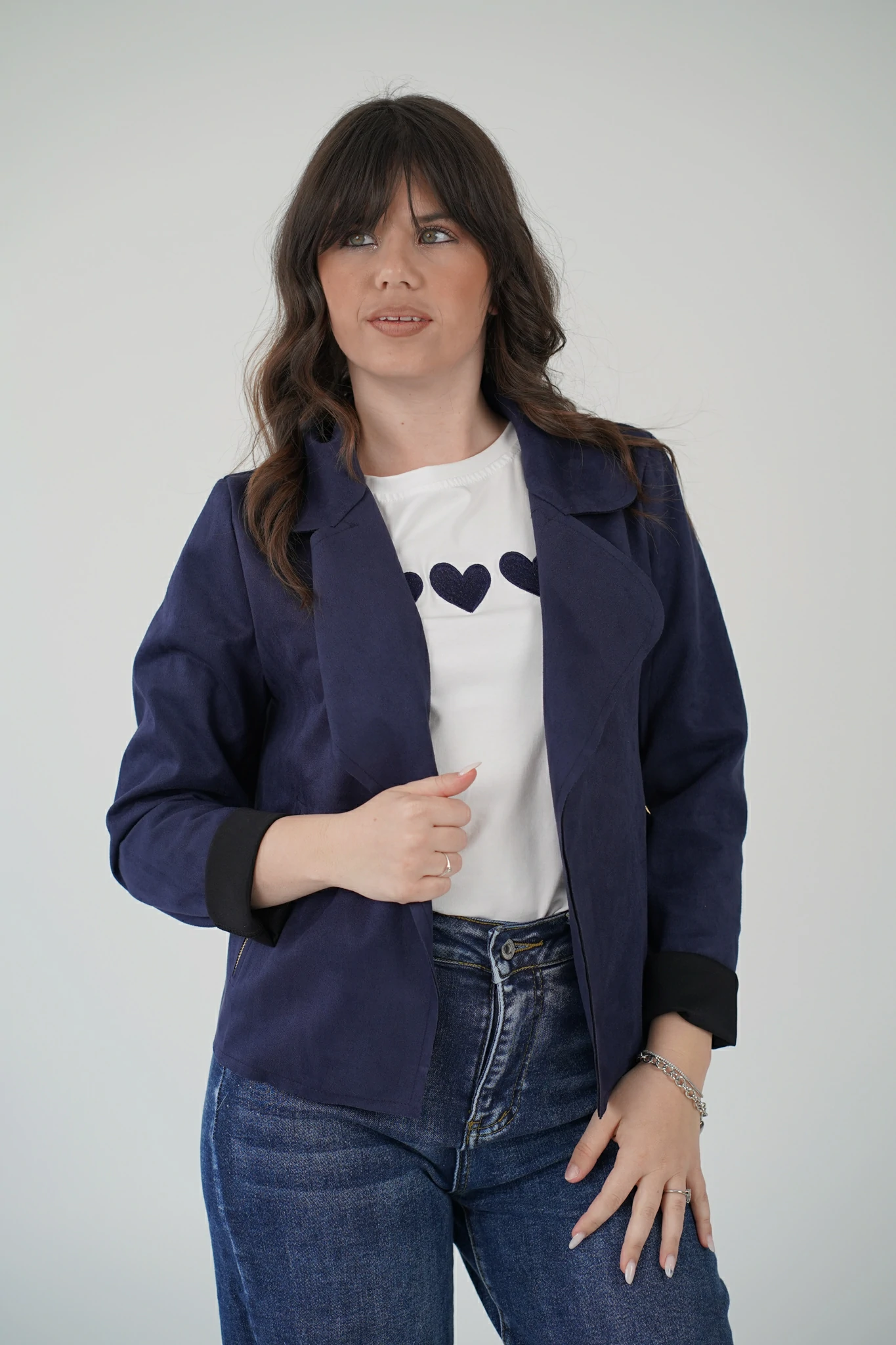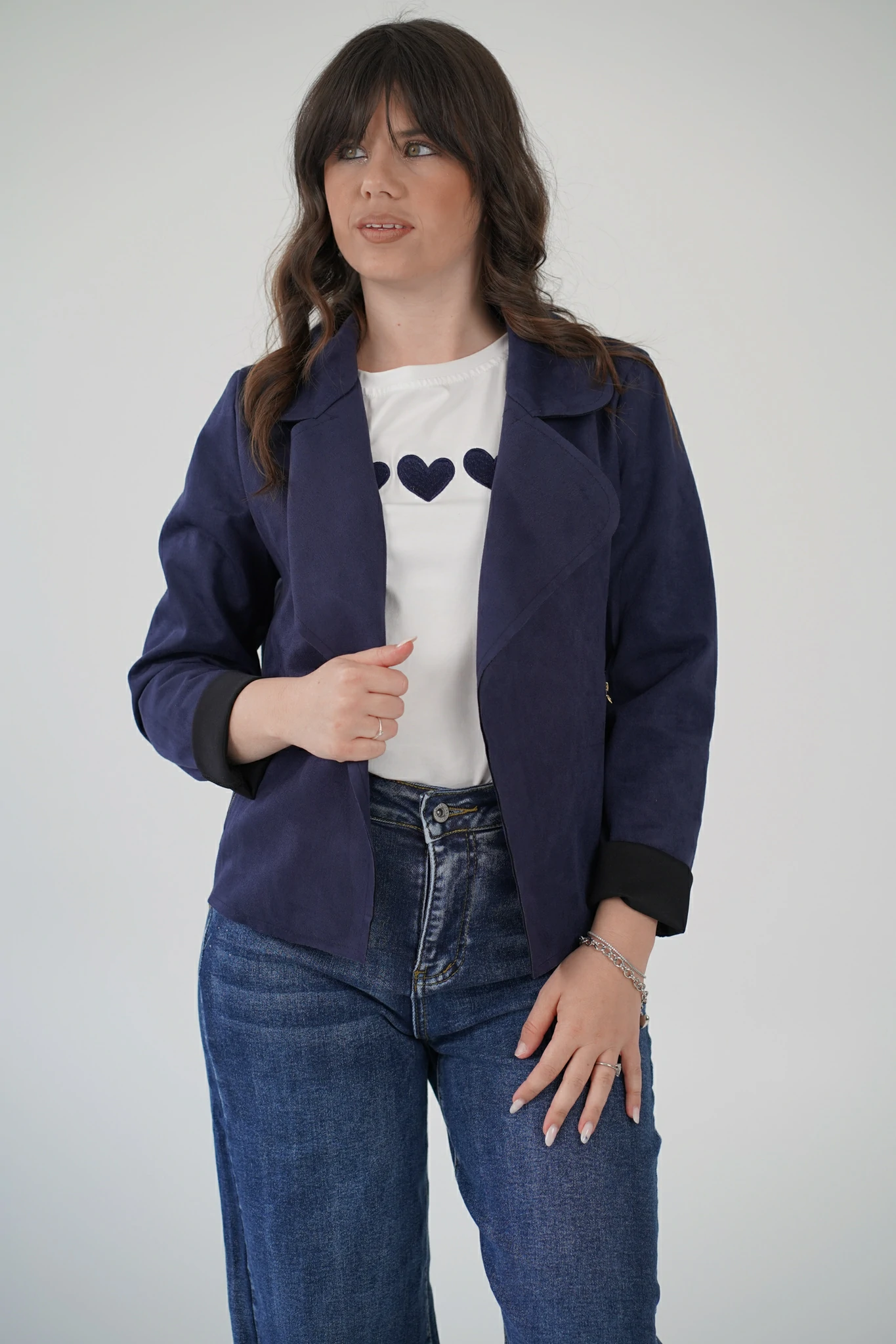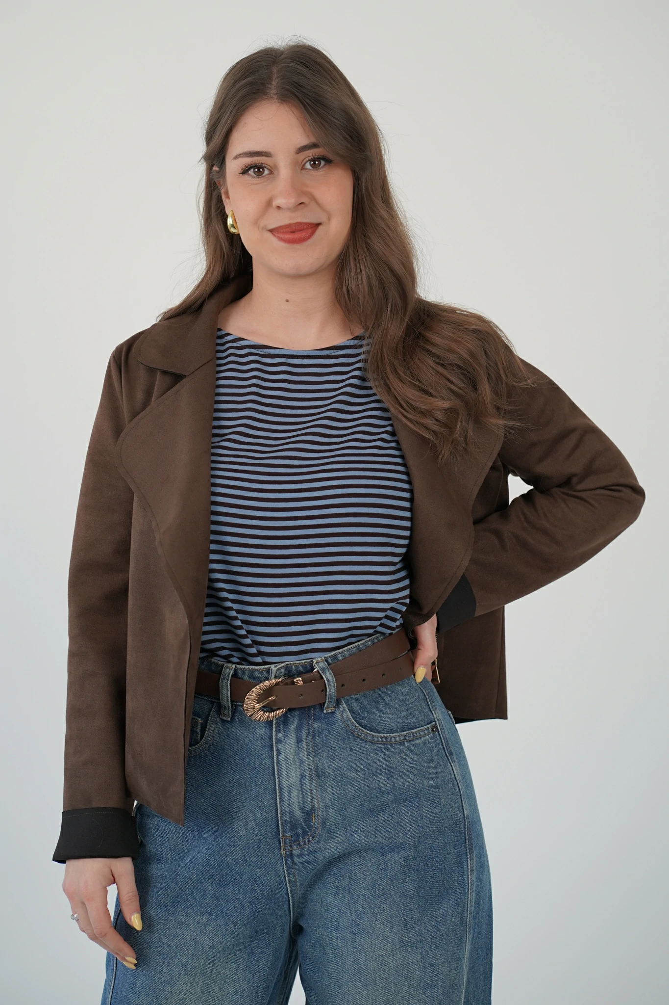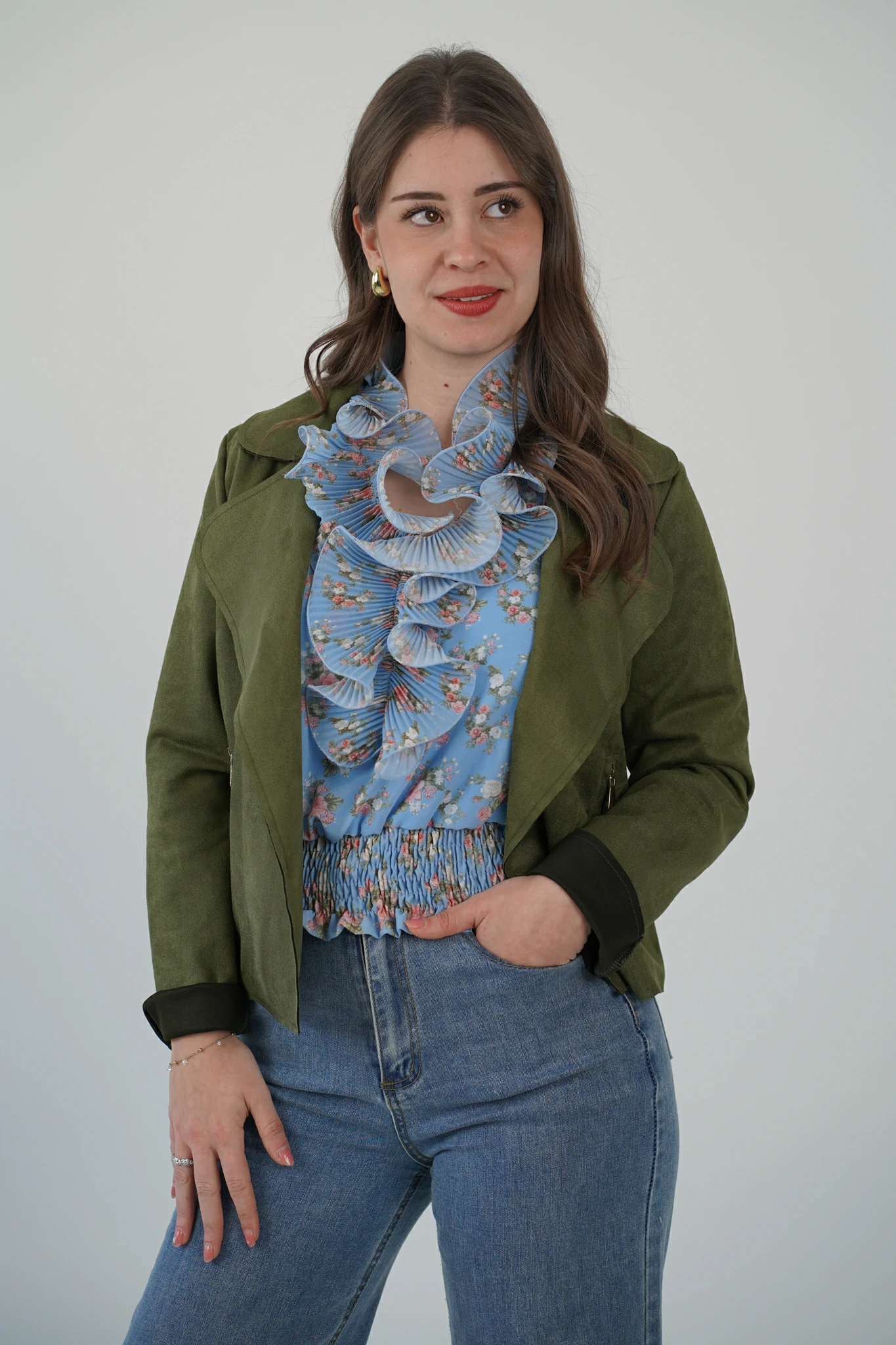 Descrizione: Questo giacchino corto in simil pelle scamosciata è ideale per completare i tuoi outfit