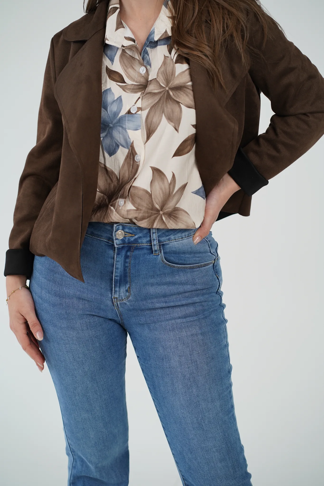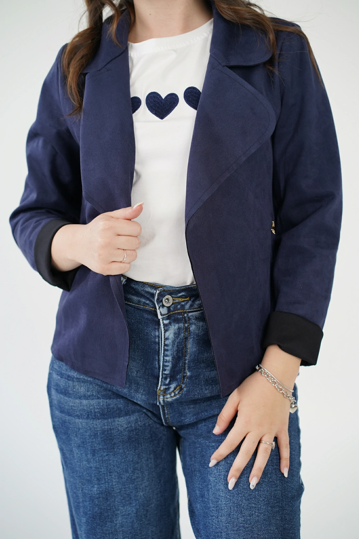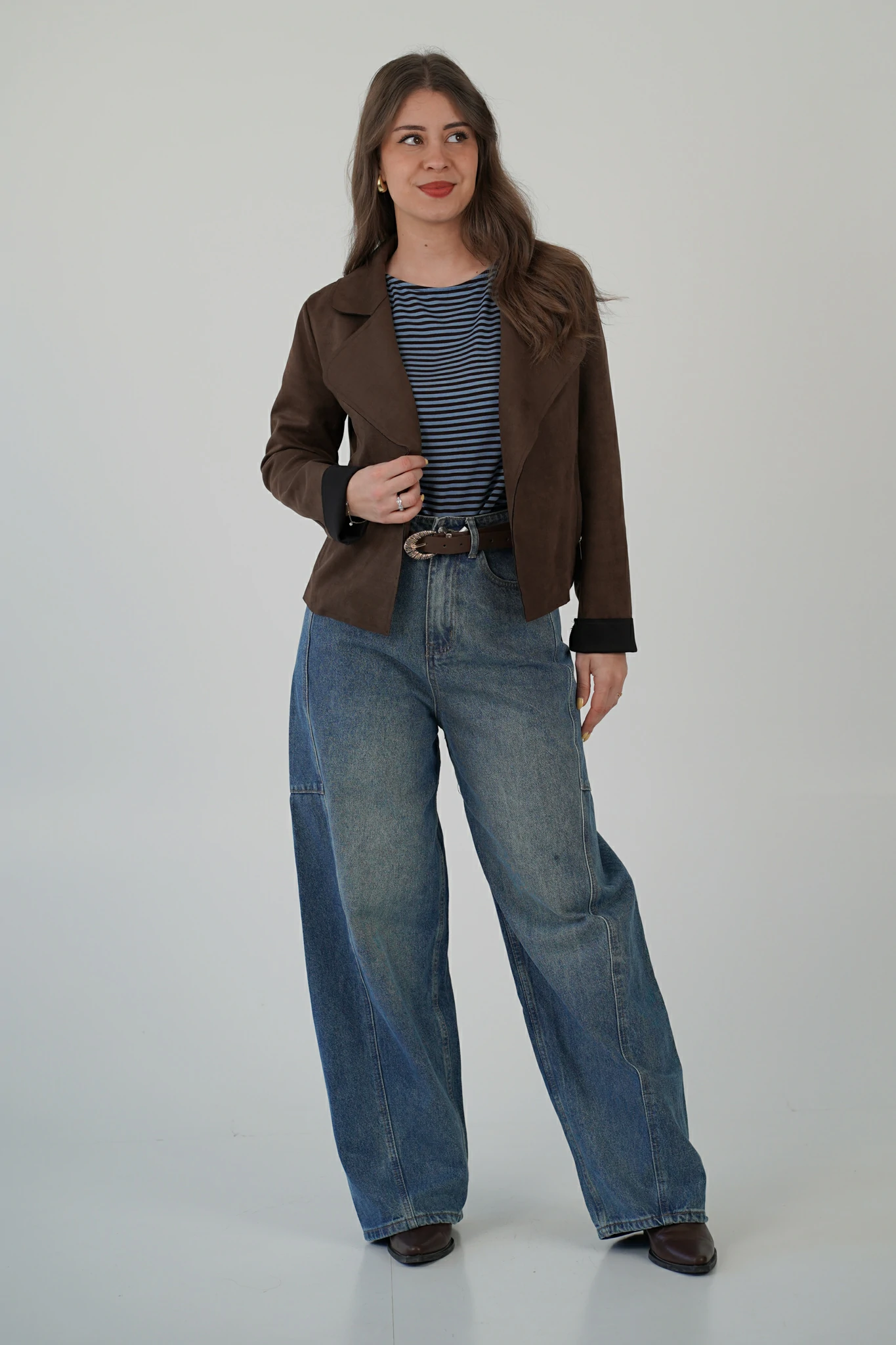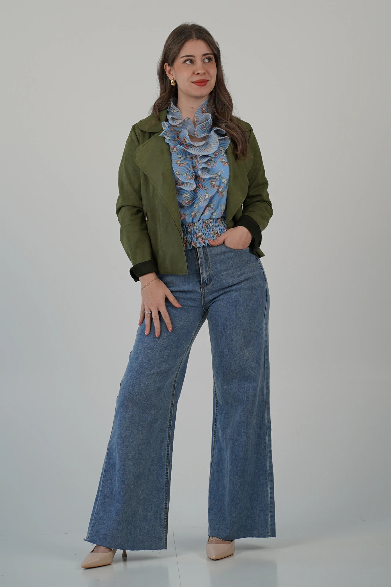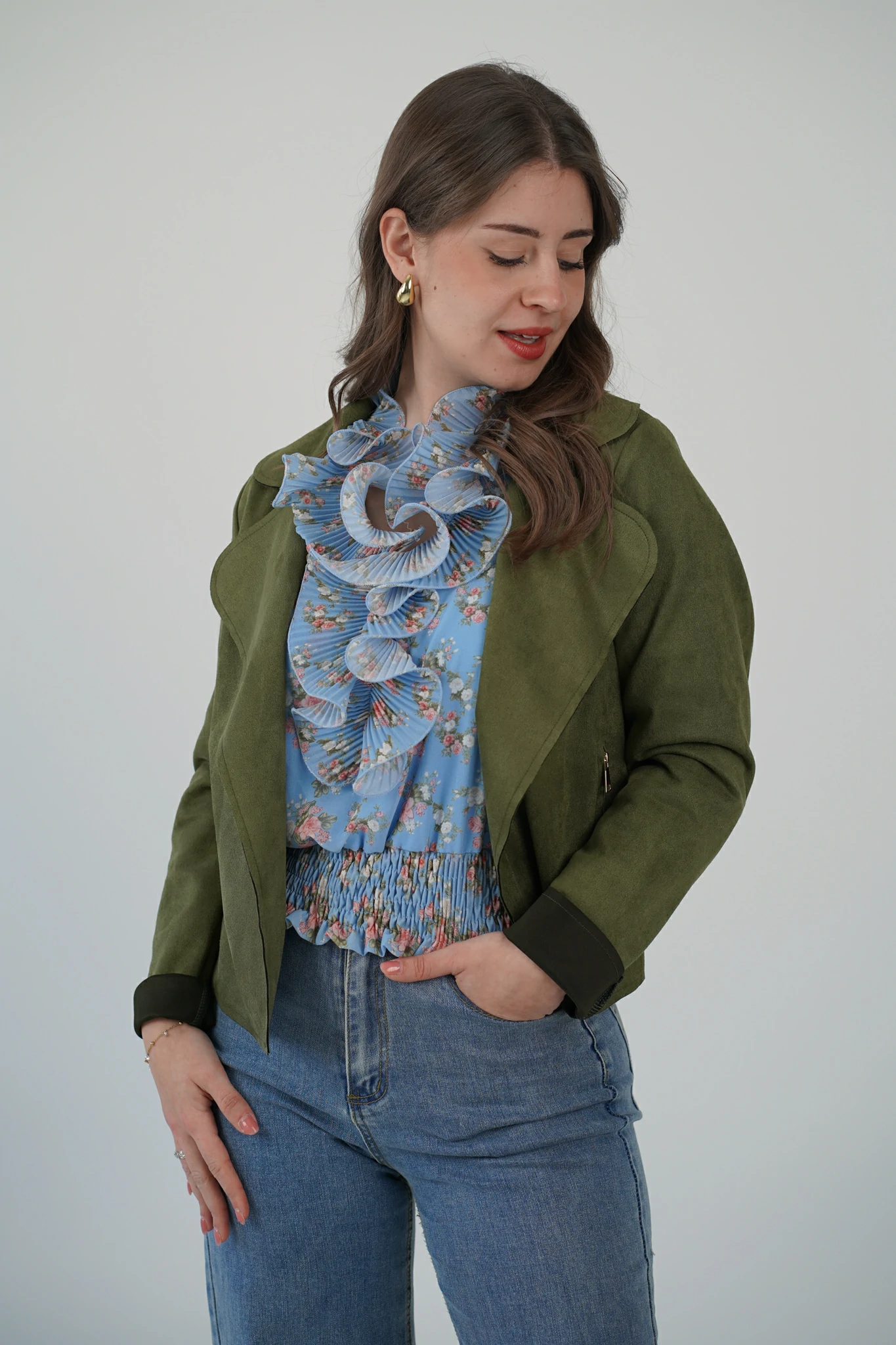 Descrizione: Questo giacchino corto in simil pelle scamosciata è ideale per completare i tuoi outfit