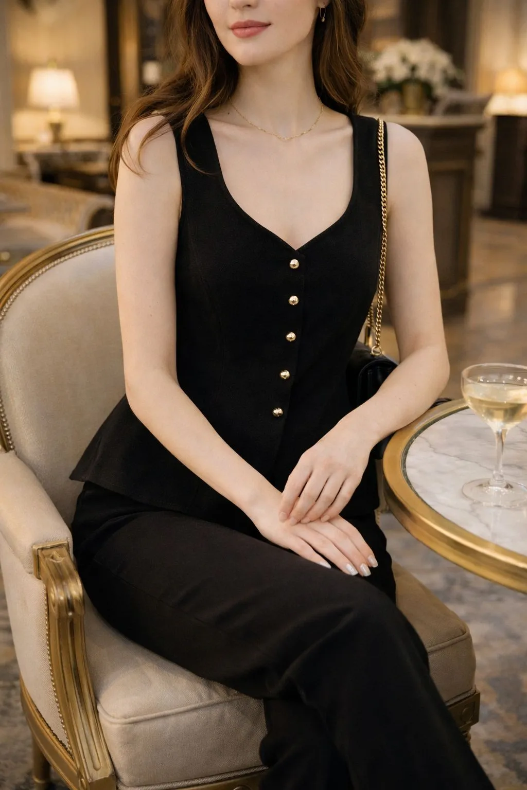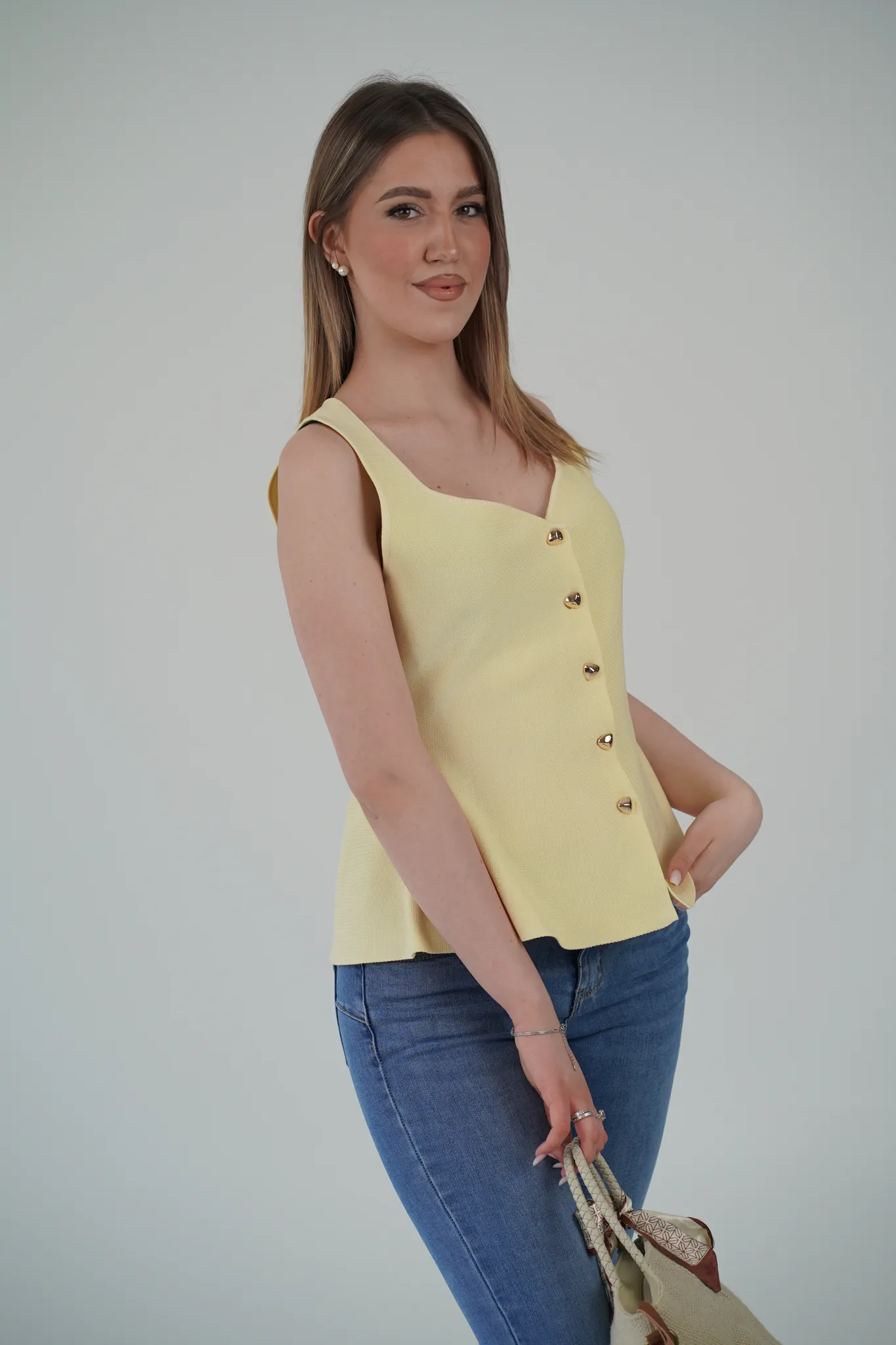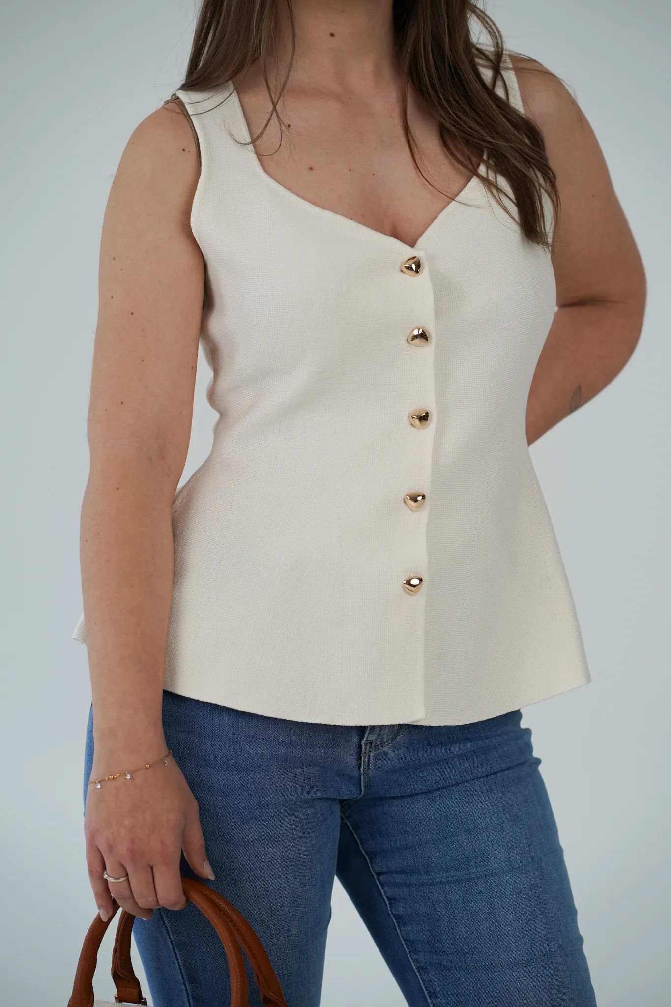 Descrizione: Gilet scollo a cuore con bottoni dorati