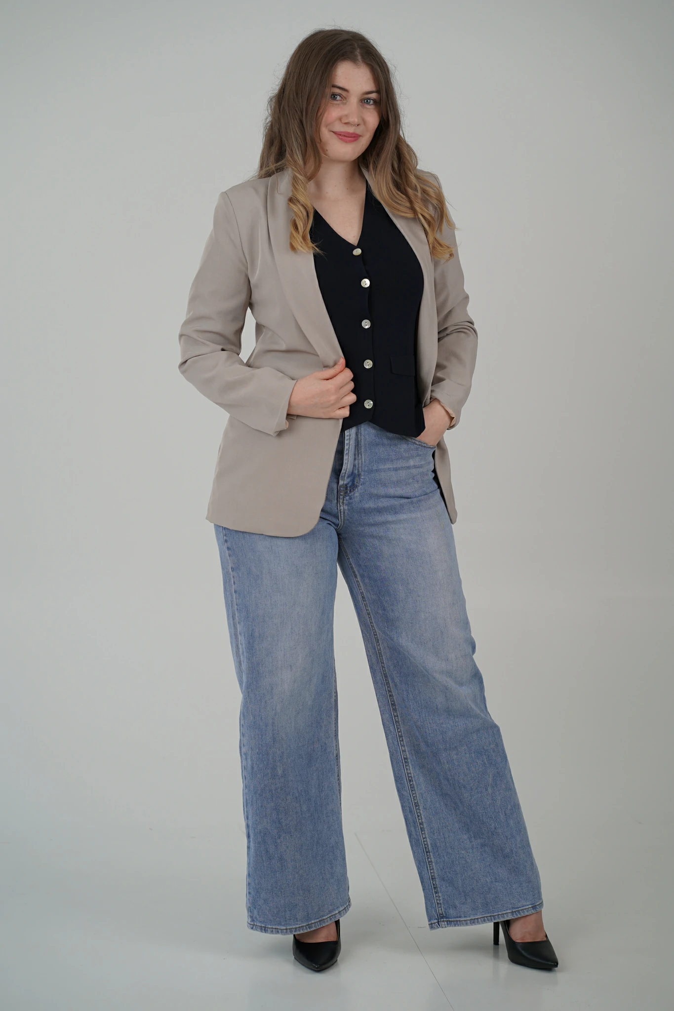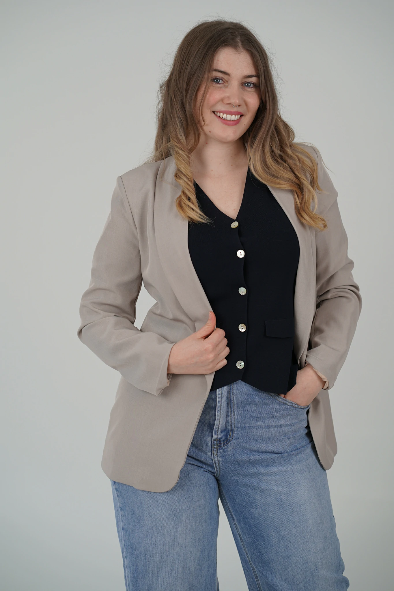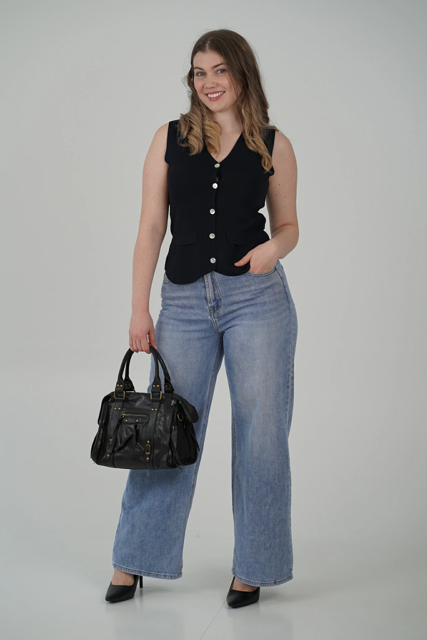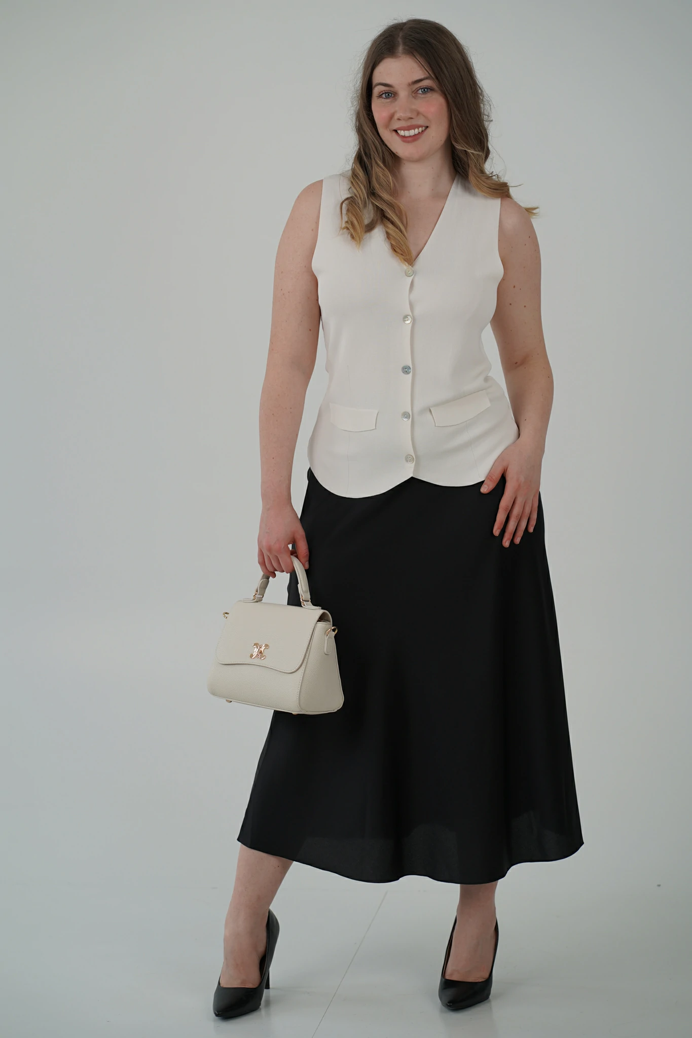 Questo gilet è il capo versatile che trasforma anche l’outfit più semplice in un look curato e sofisticato. Perfetto per arricchire i tuoi abbinamenti con un tocco di eleganza contemporanea, è pensato per la donna che ama distinguersi con stile.