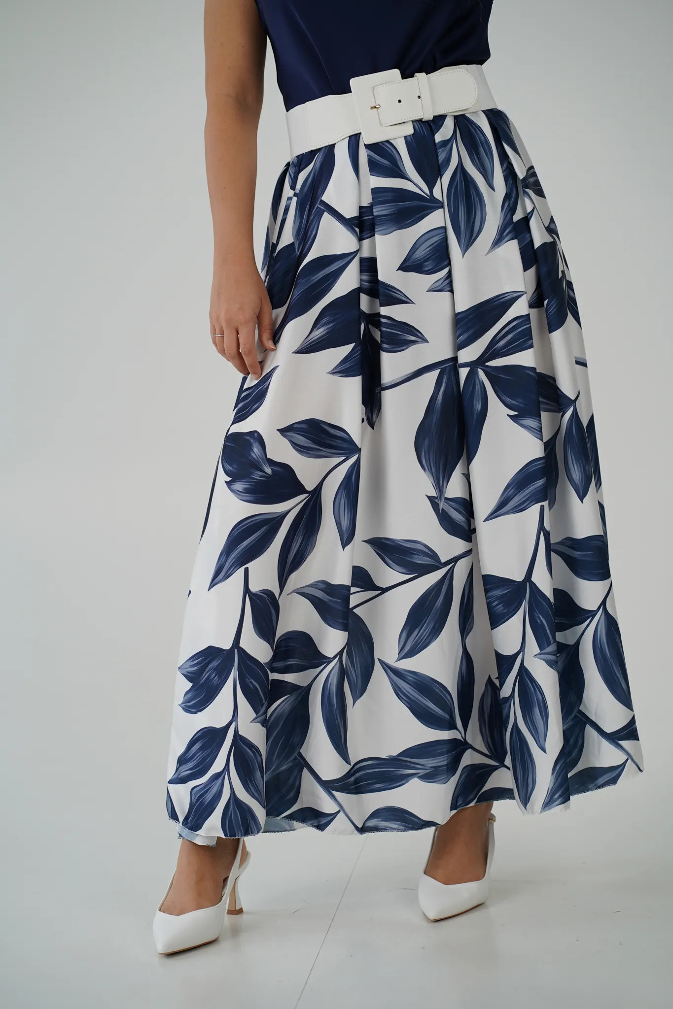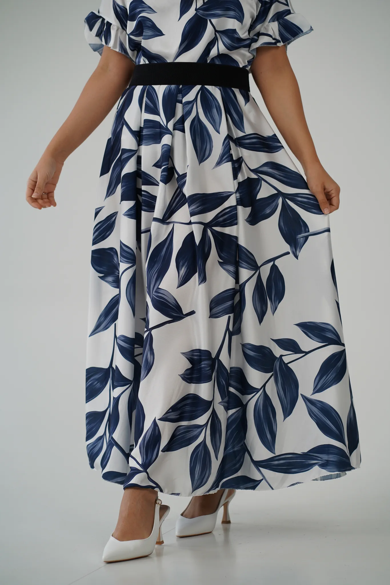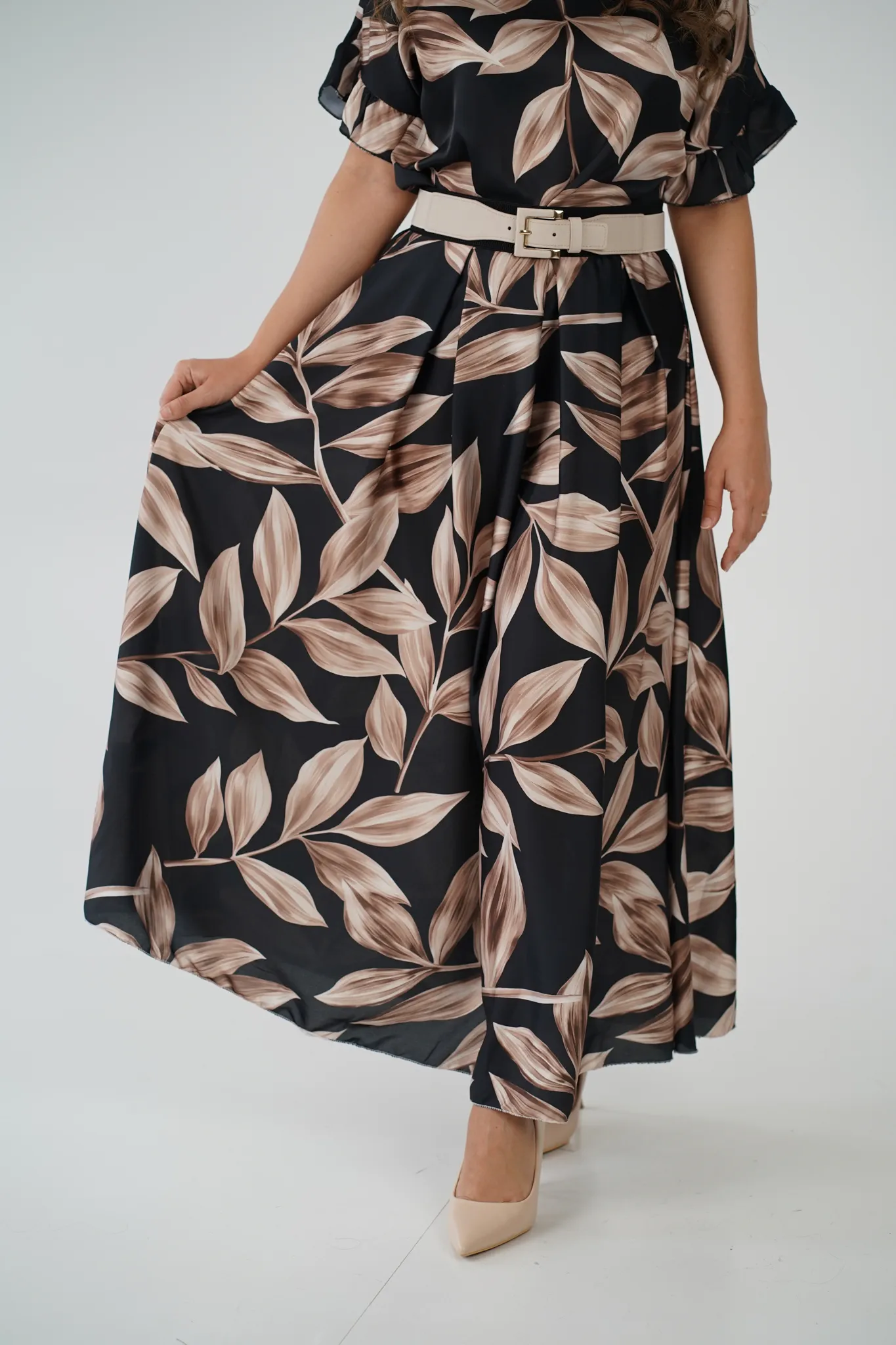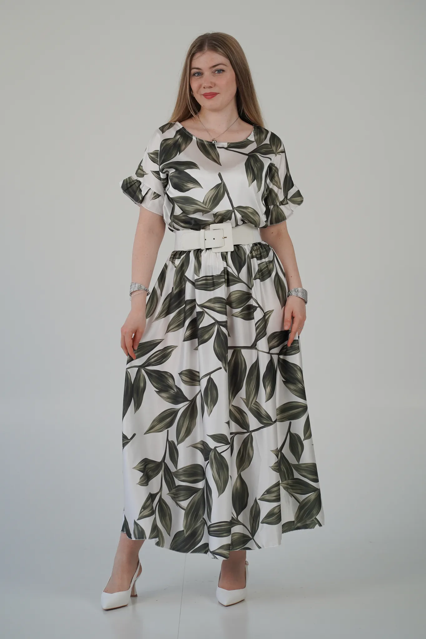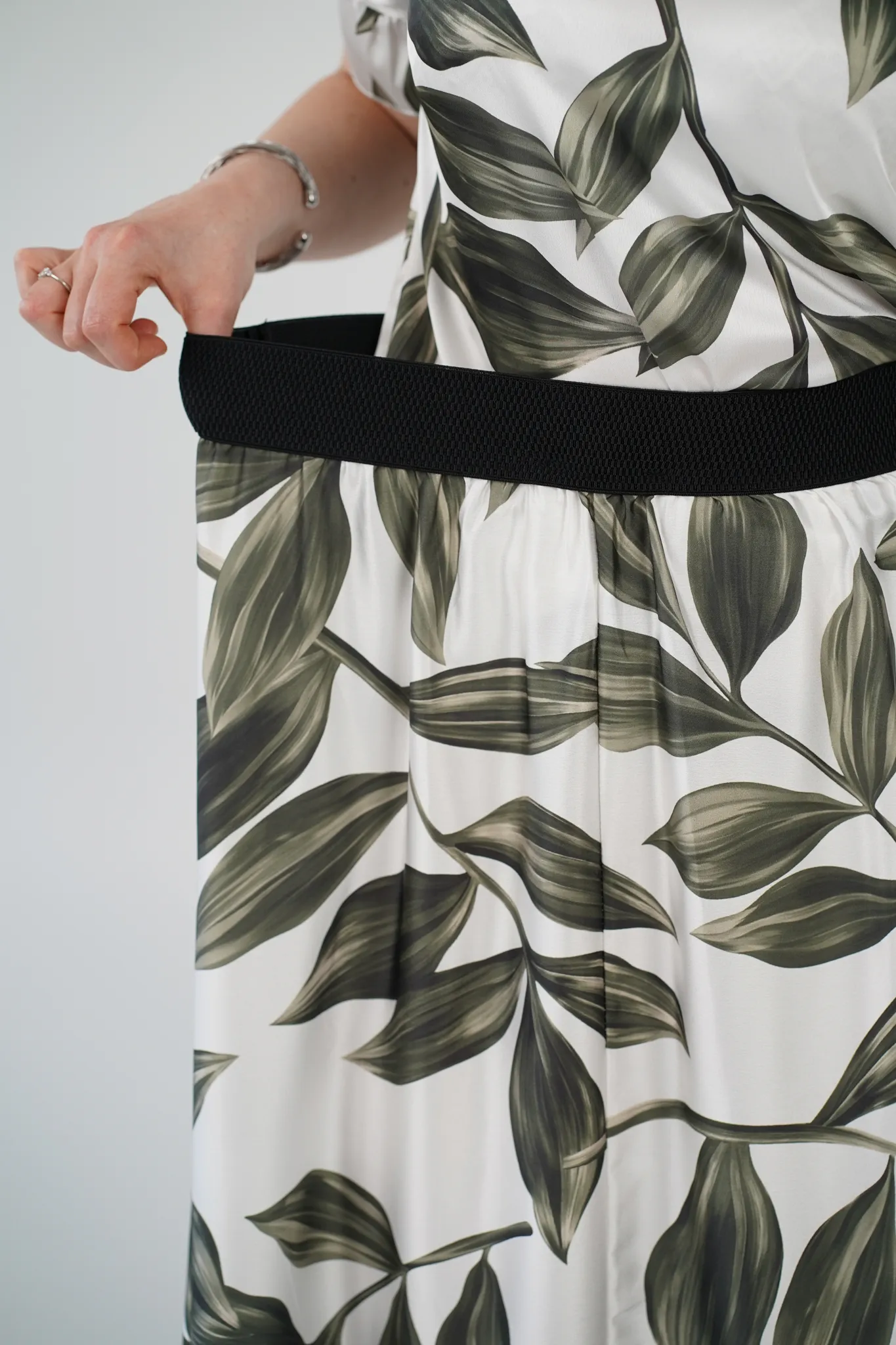 Descrizione: Gonna Lunga in Satin con Elastico in Vita e Fantasia a Foglie 🍃
