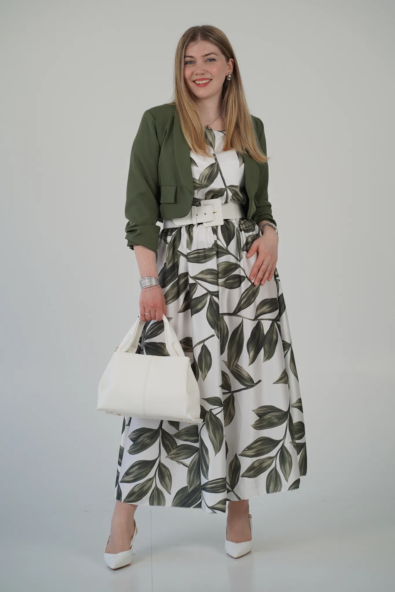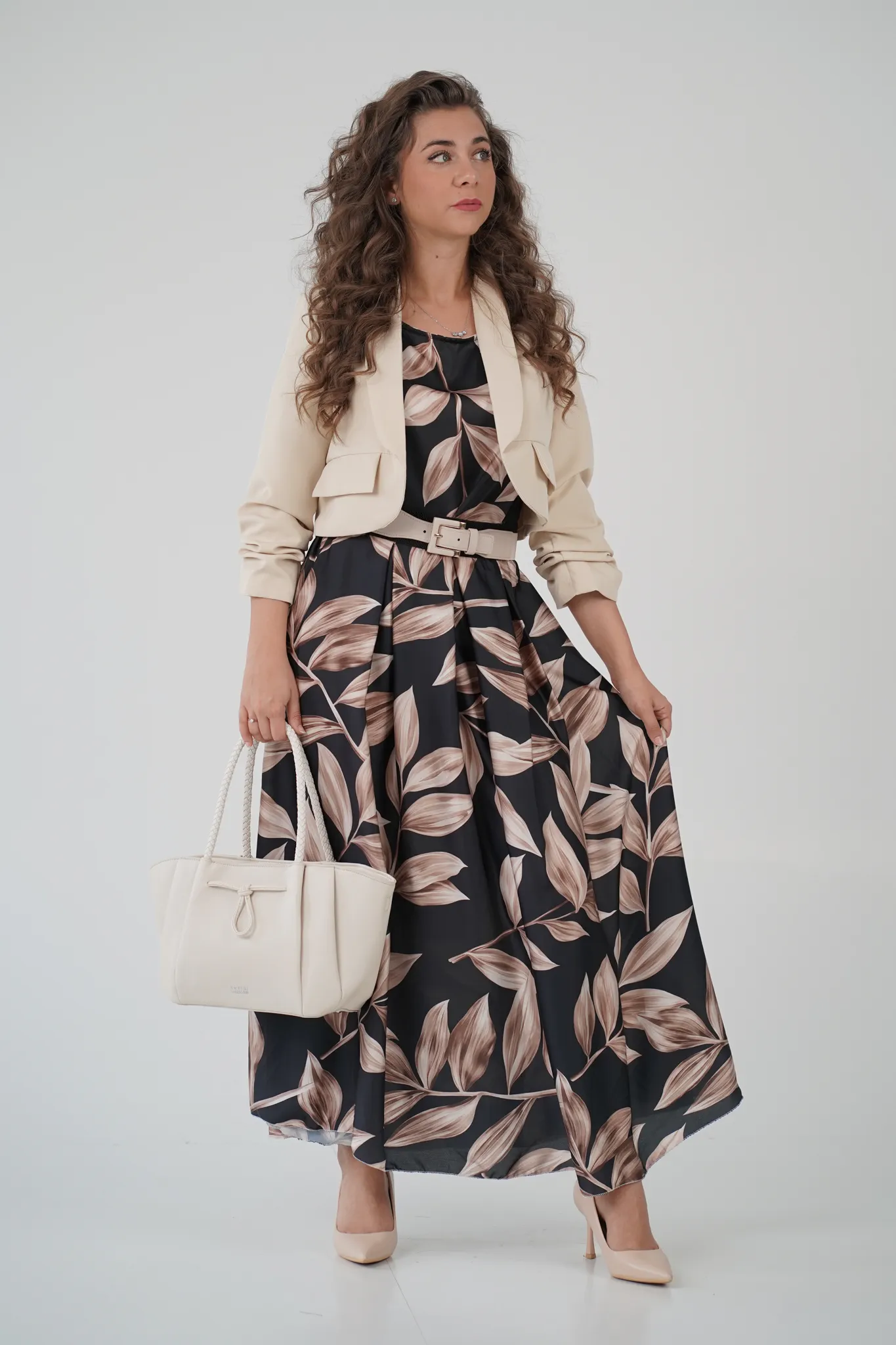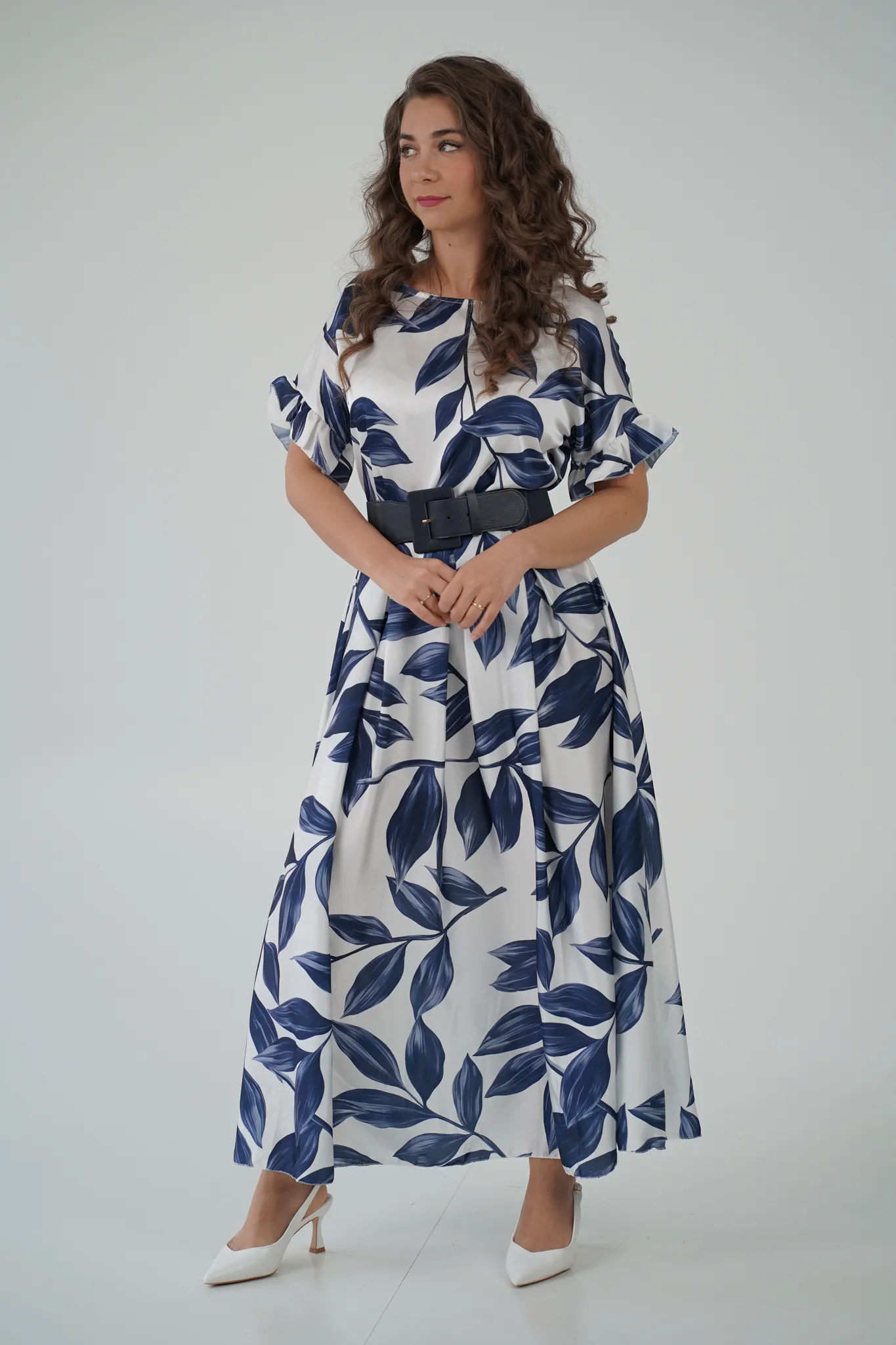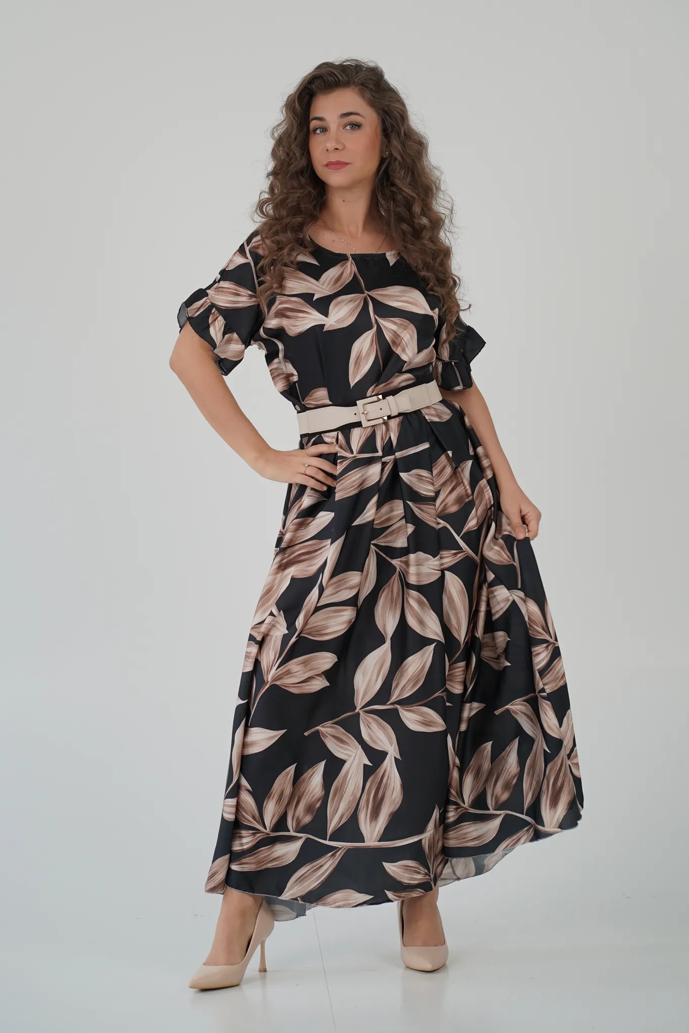 Descrizione: Gonna Lunga in Satin con Elastico in Vita e Fantasia a Foglie 🍃