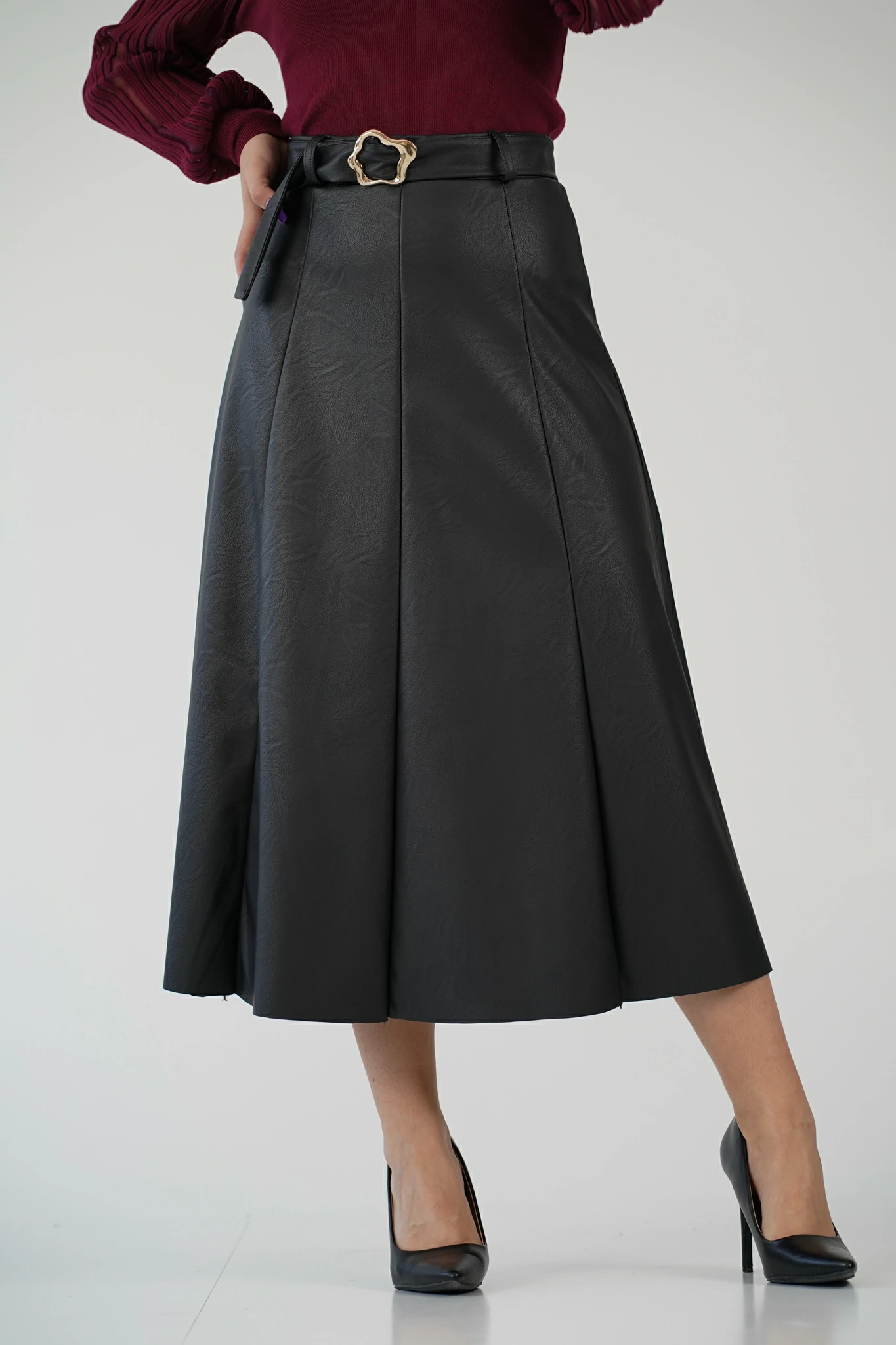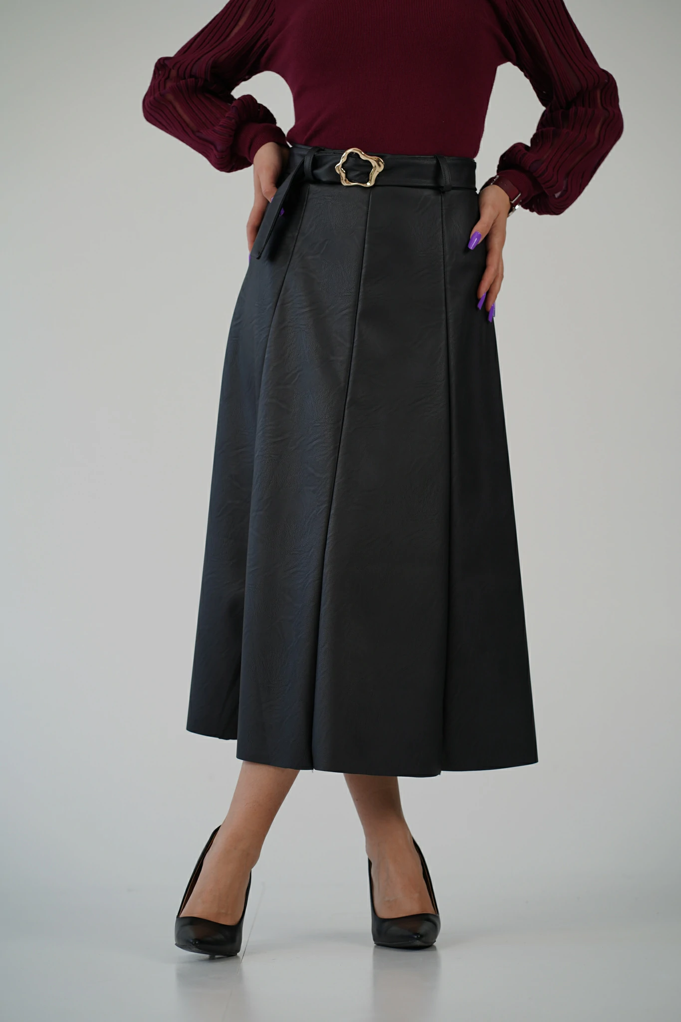 Descrizione: Gonna Longuette in Ecopelle con Cintura✨