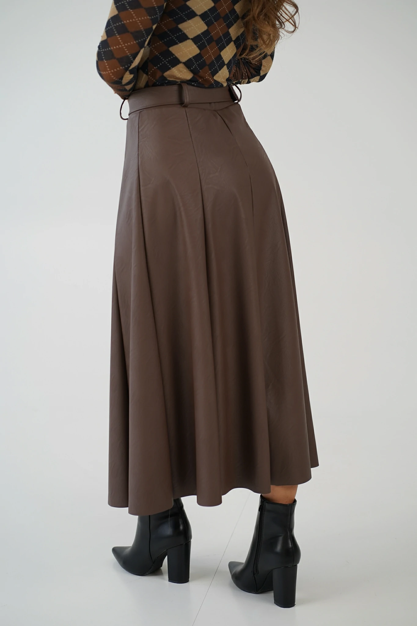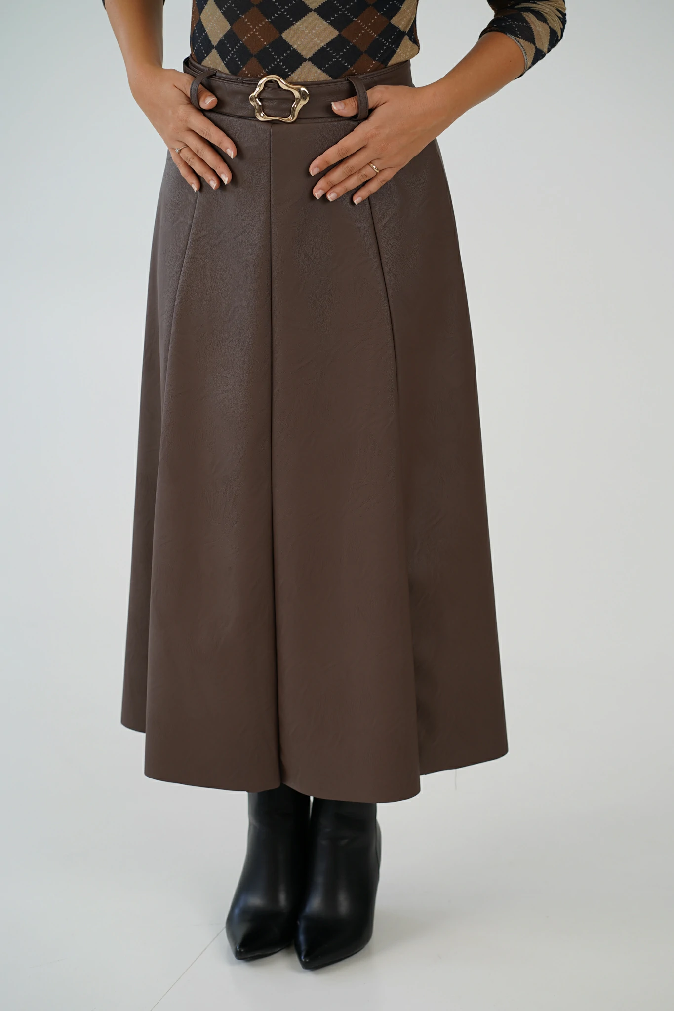 Questa gonna svasata in ecopelle è l’alleata perfetta per chi ama distinguersi senza rinunciare alla raffinatezza.