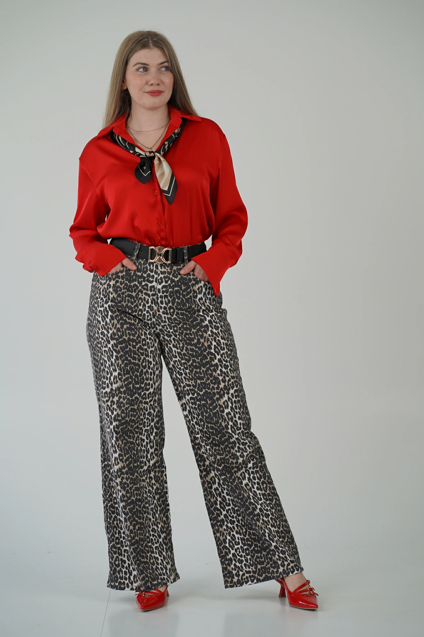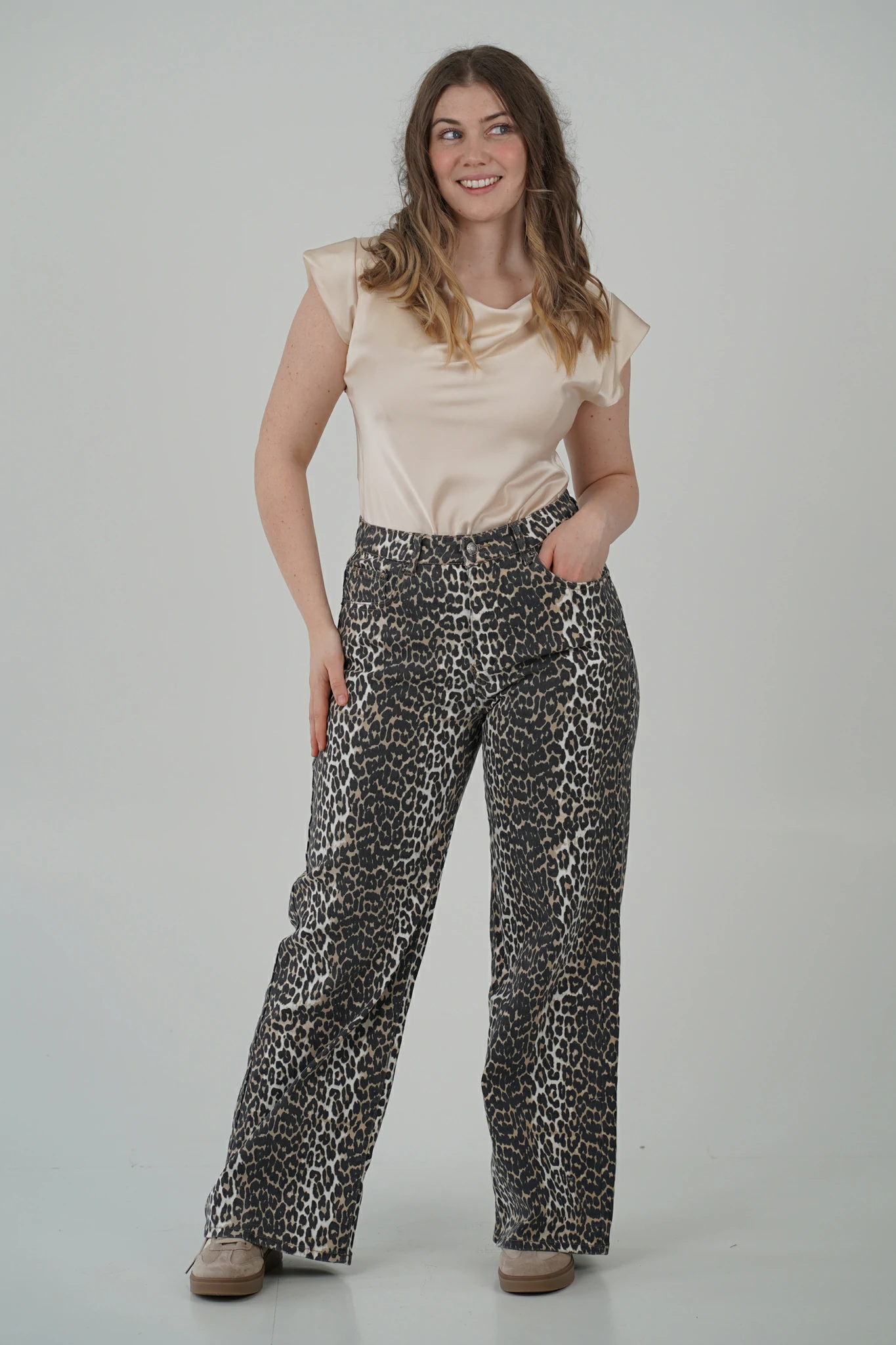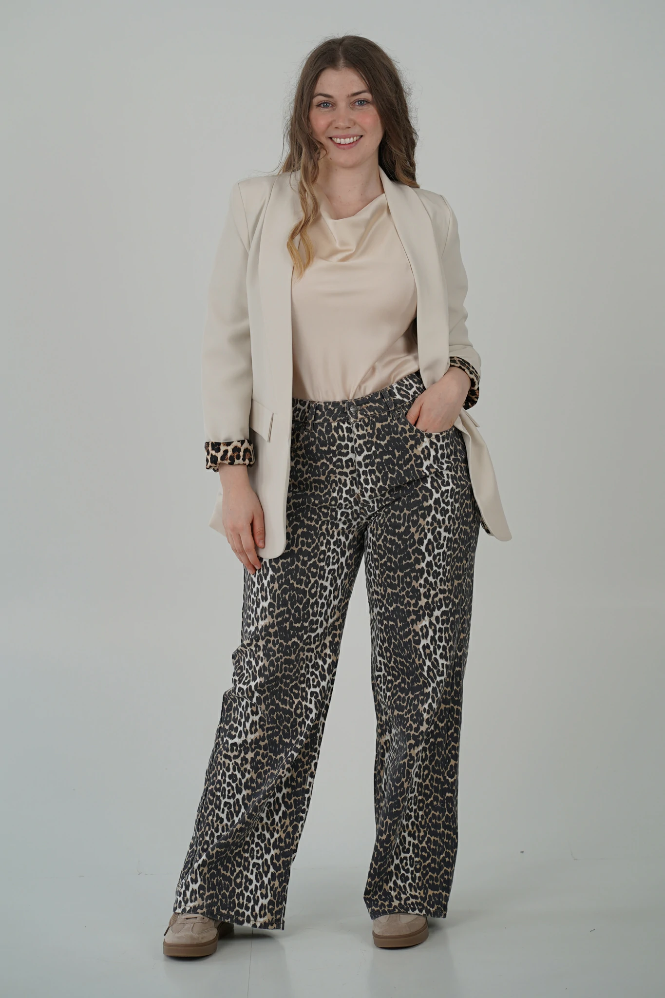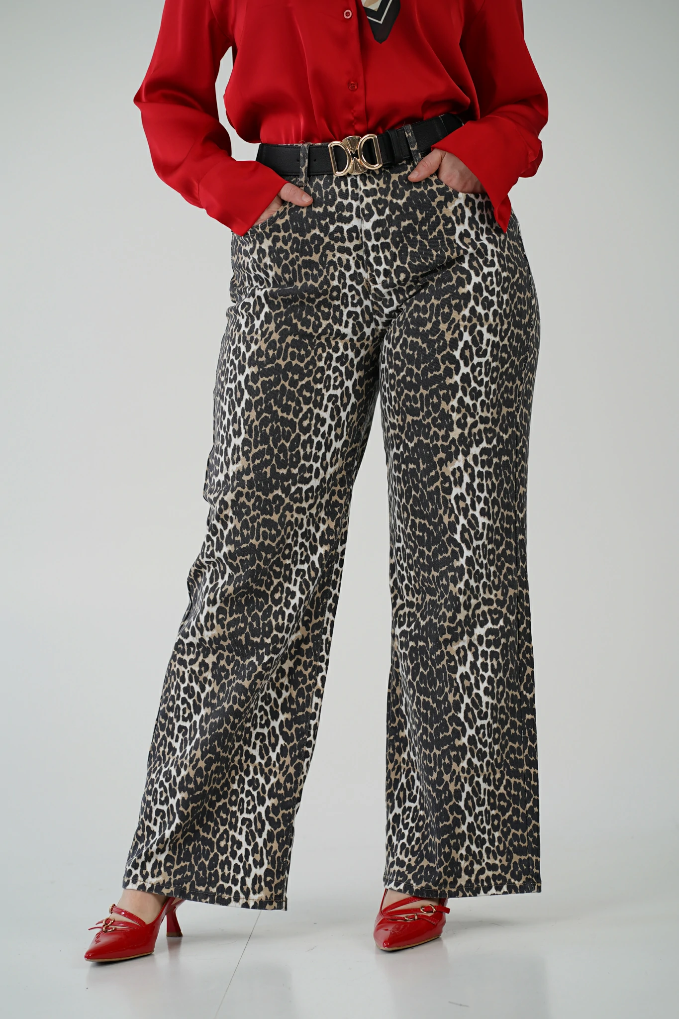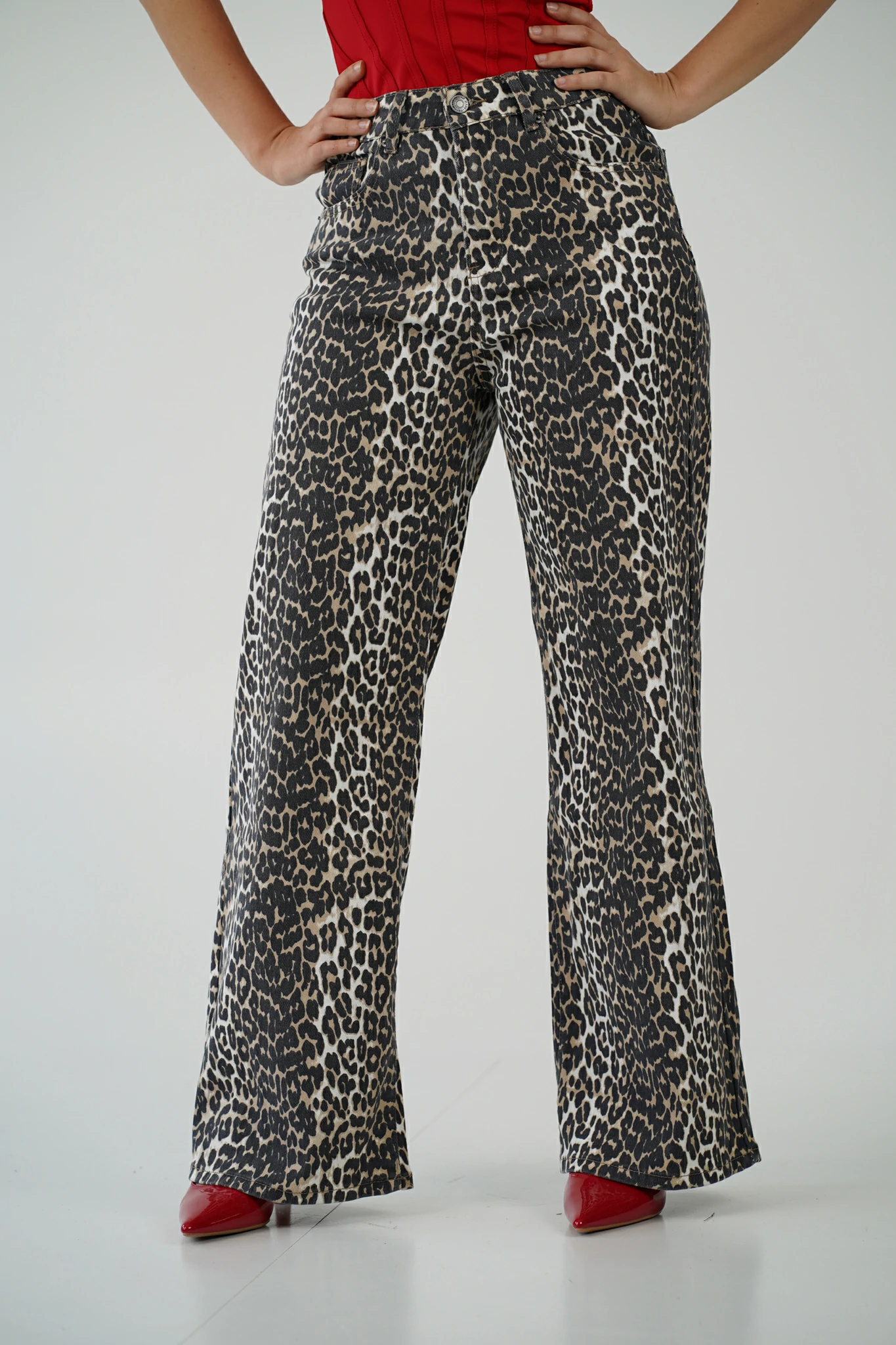 Immagina di camminare per le vie del centro con passo sicuro, il rumore dei tacchi che scandisce il ritmo della città. Gli sguardi si voltano, non solo per ciò che indossi, ma per come lo indossi. I tuoi jeans a stampa leopardata non sono solo un capo: sono un manifesto.