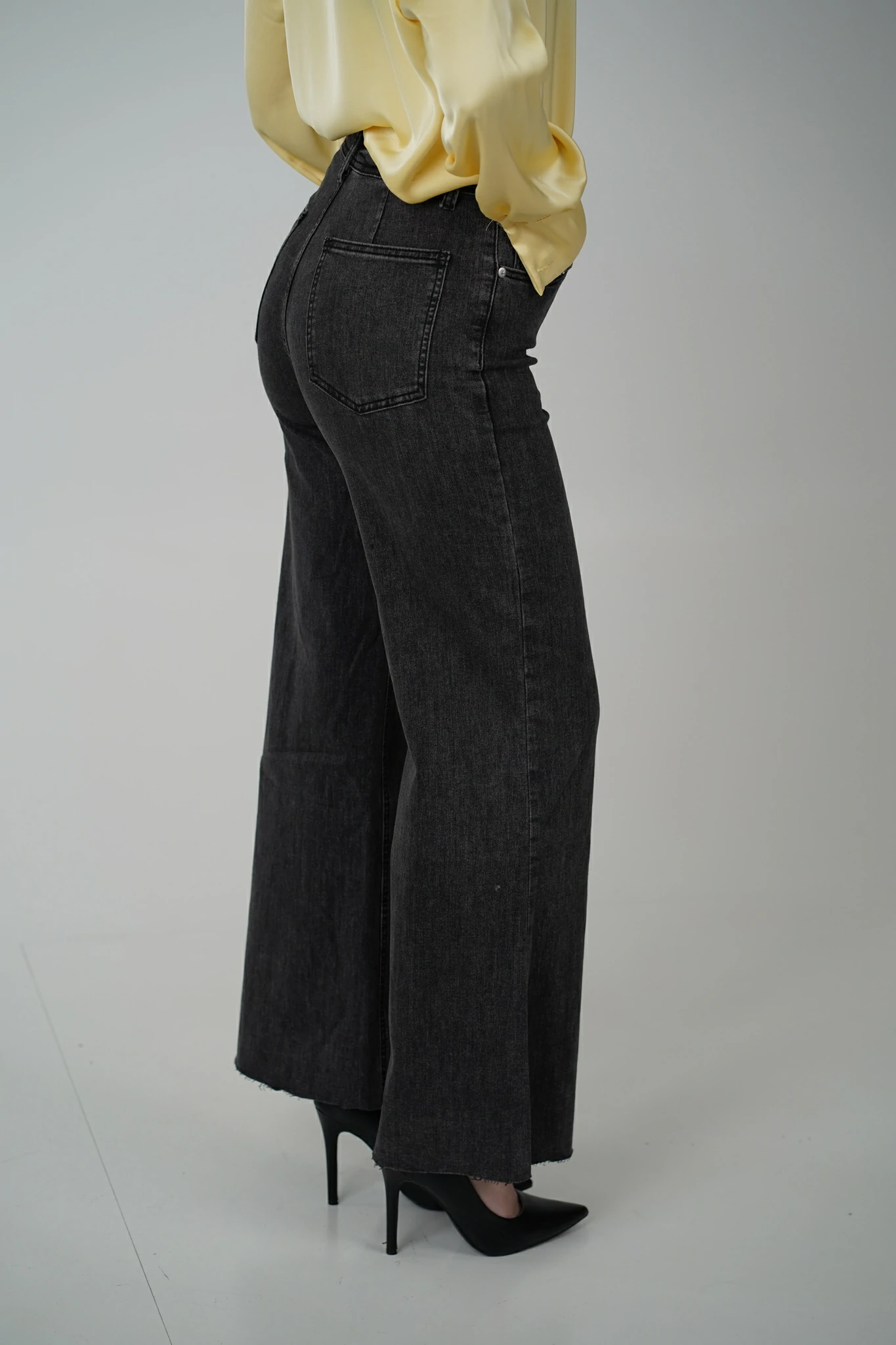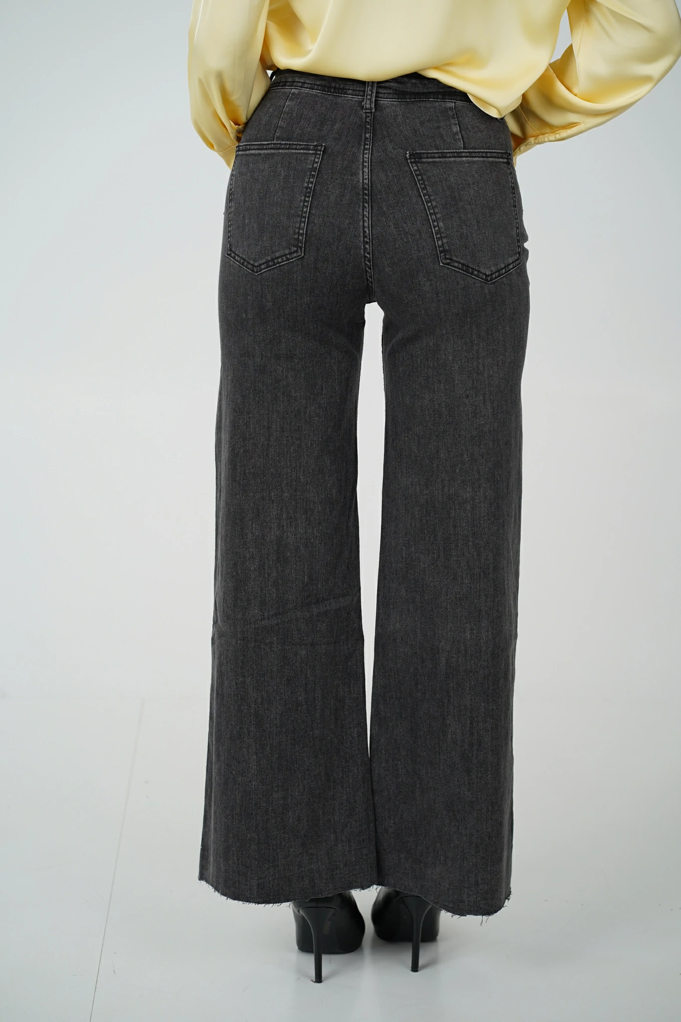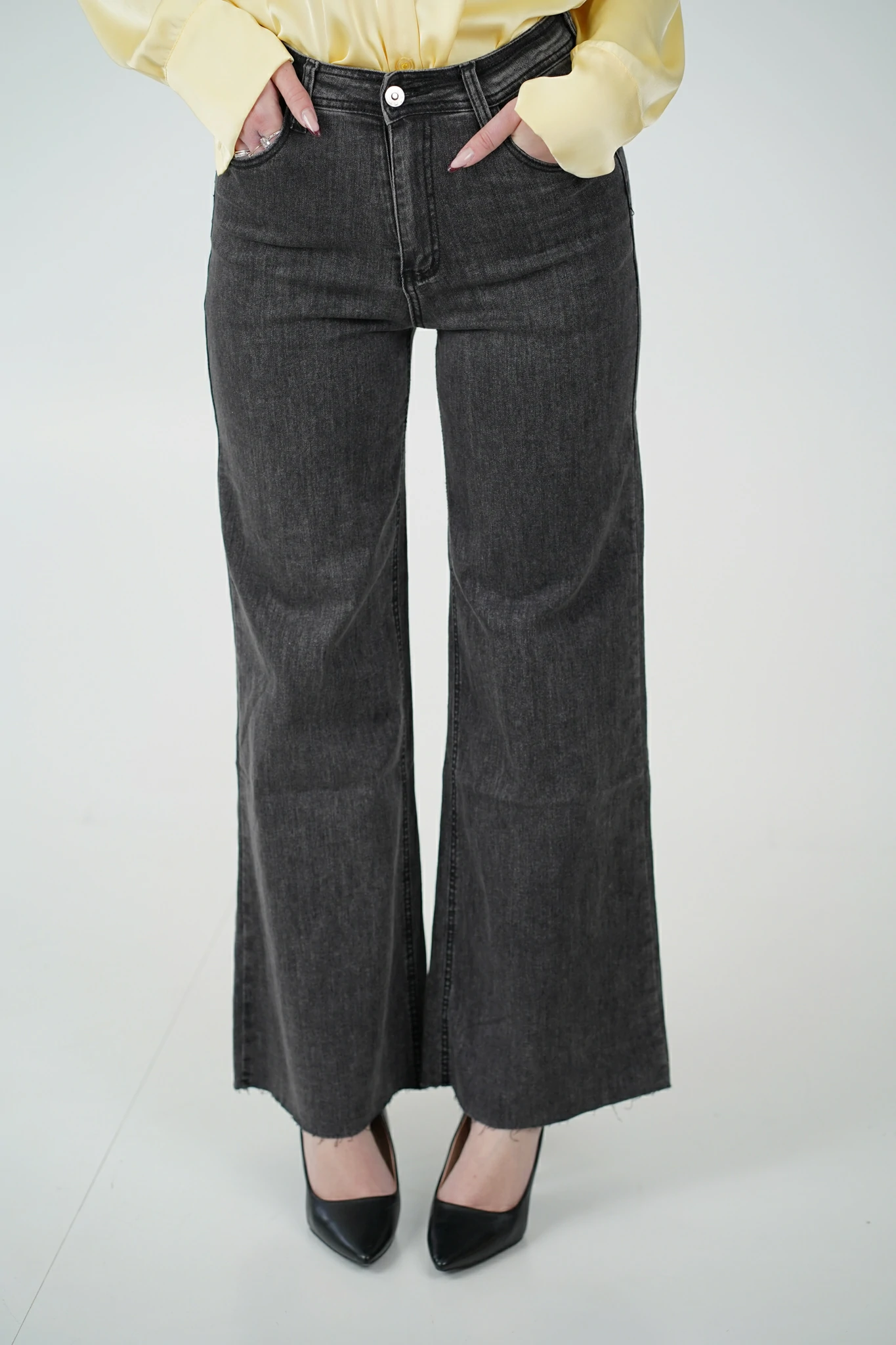Descrizione: Rivoluziona il tuo guardaroba con il nostro Jeans Wide Leg sfrangiato, un capo che unisce comfort e stile in un equilibrio perfetto.