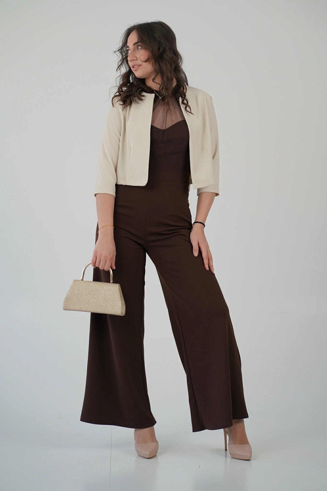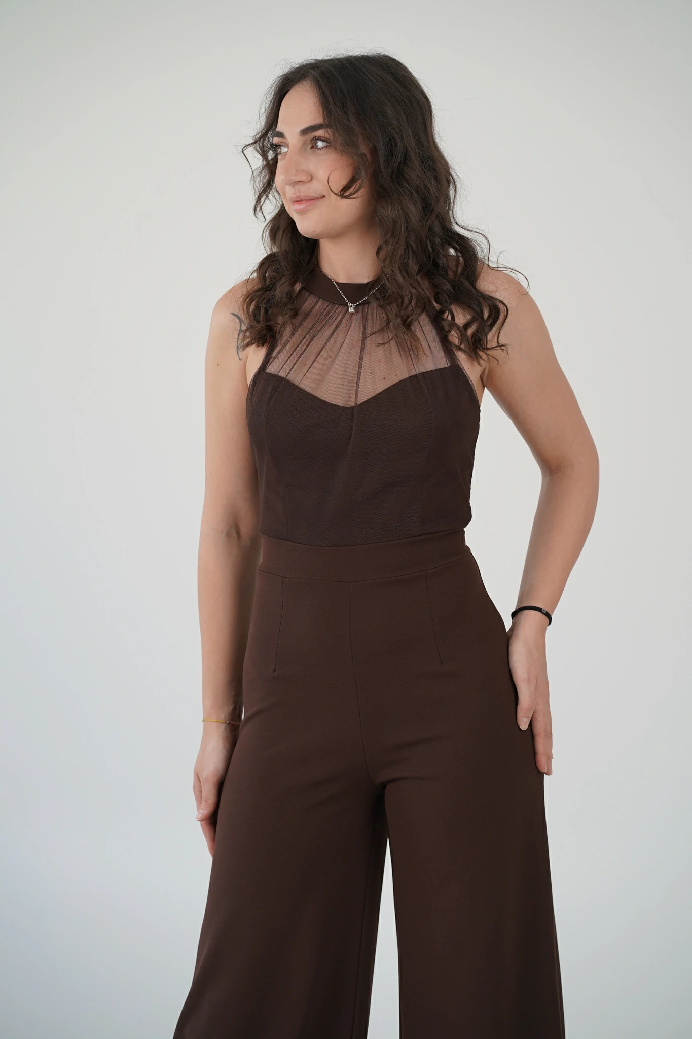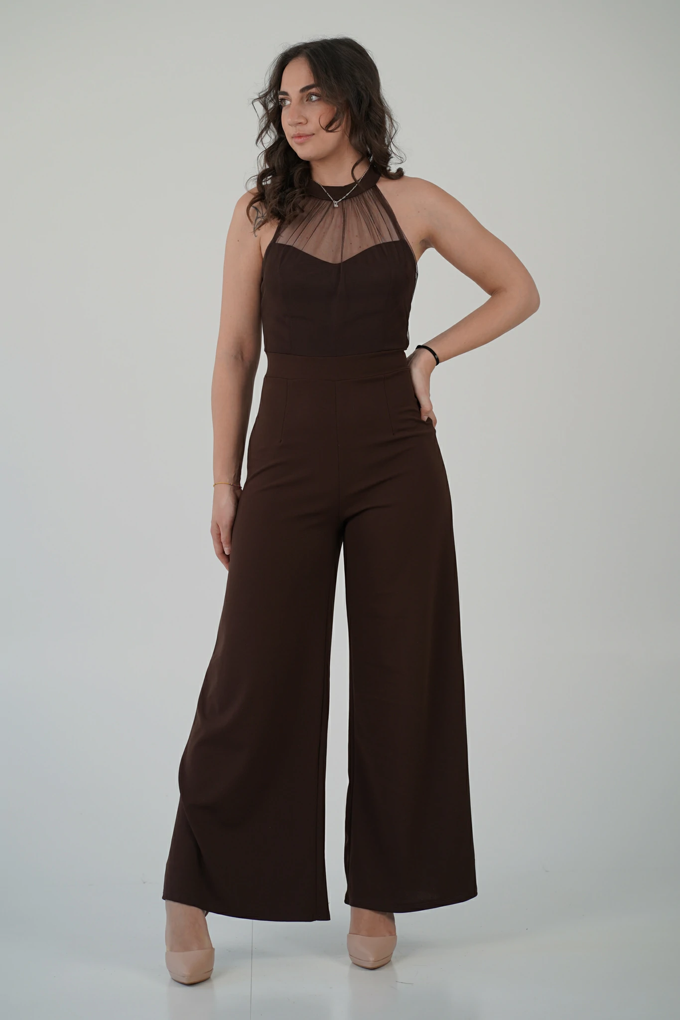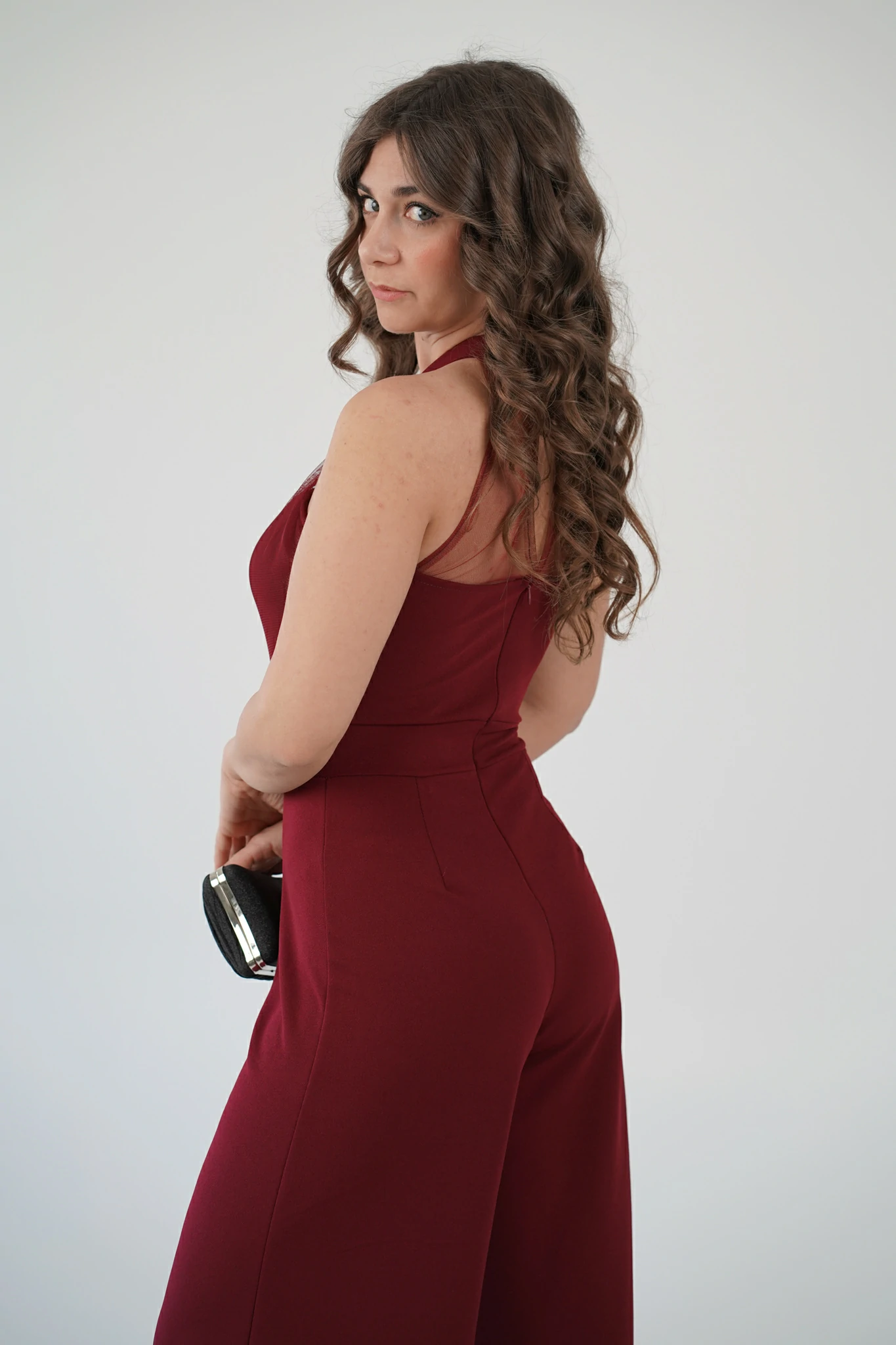 Descrizione: Jumpsuit elegante con Scollo all’americana, corpetto a cuore e pantalone a palazzo