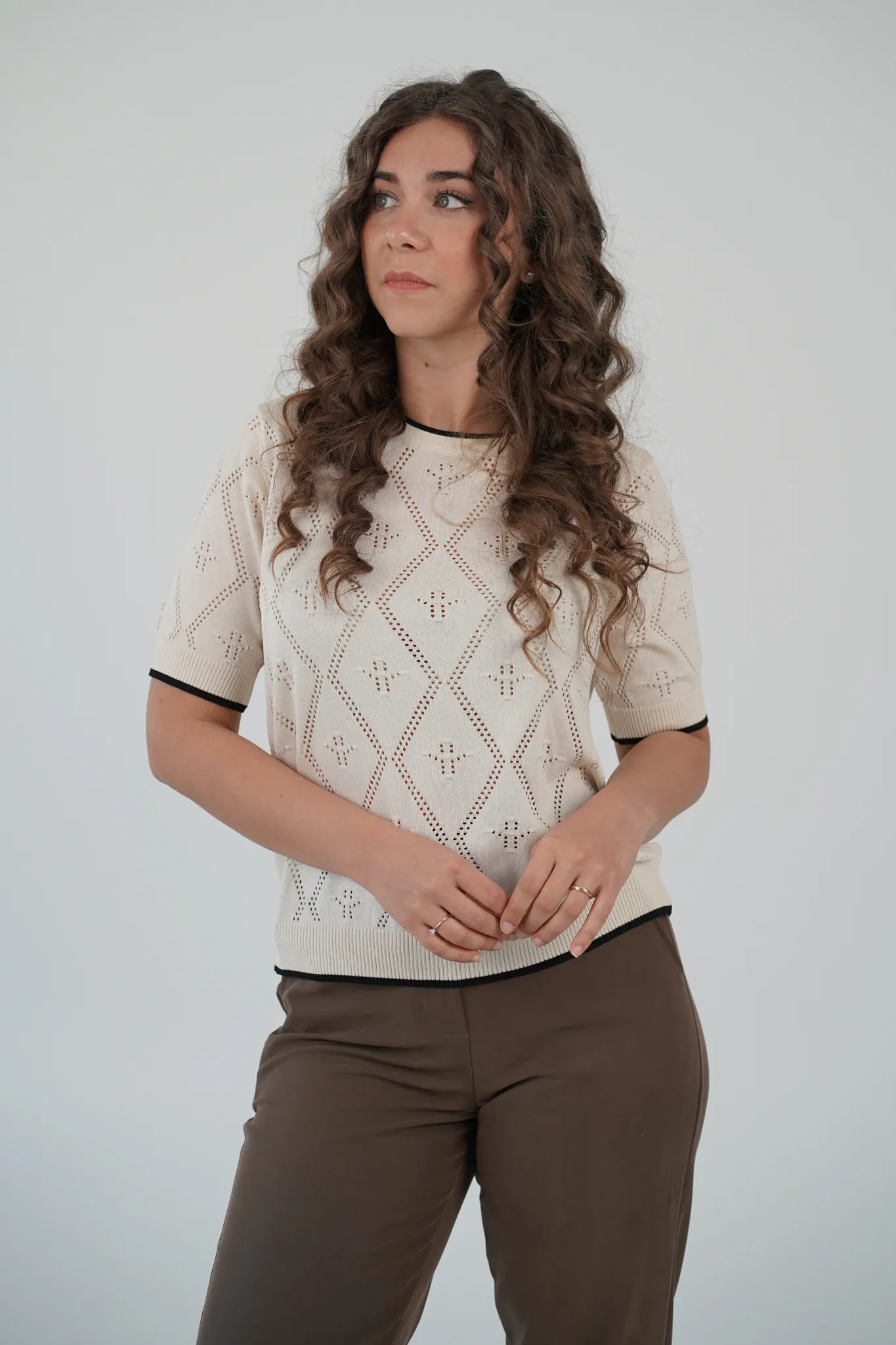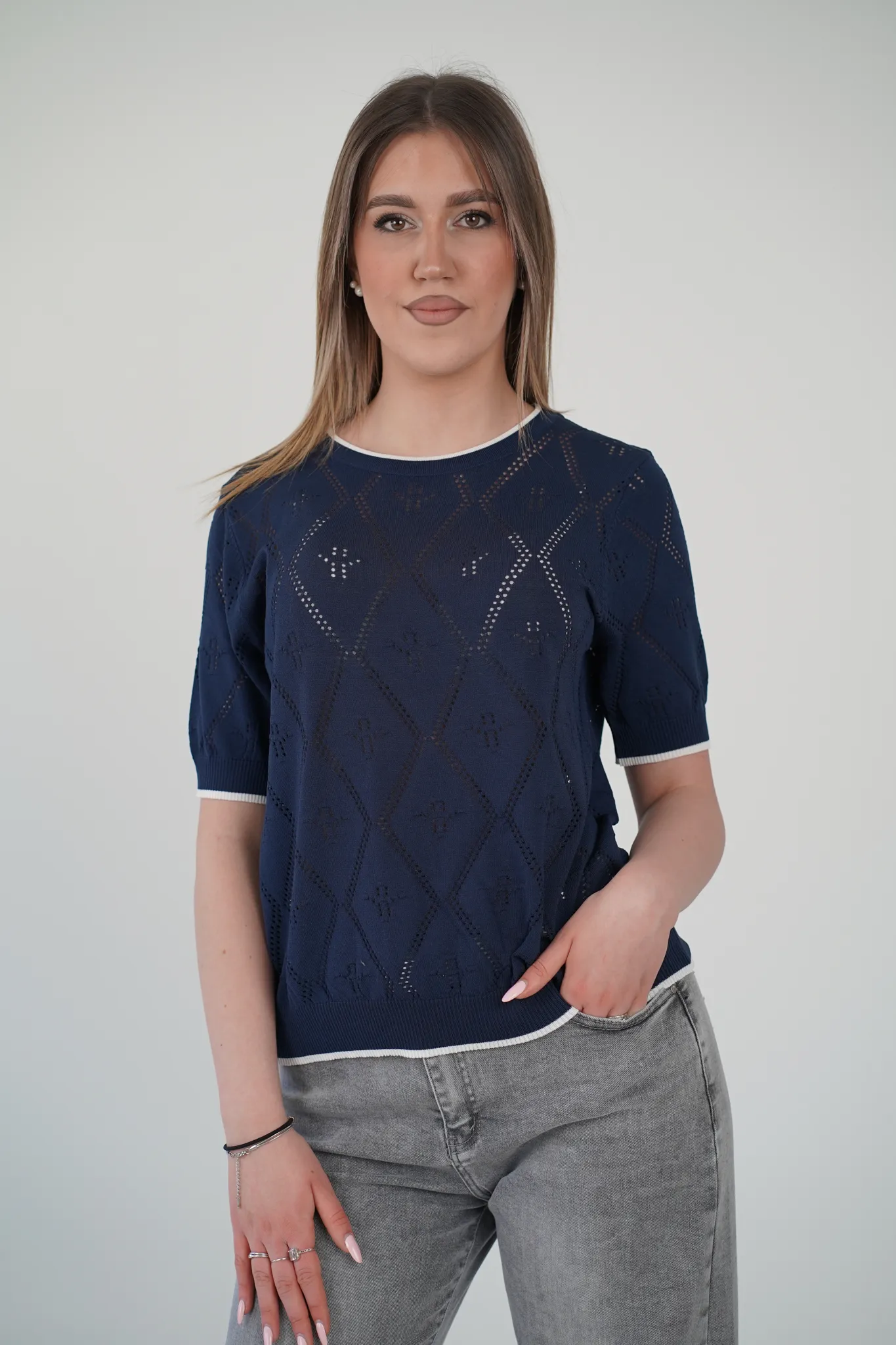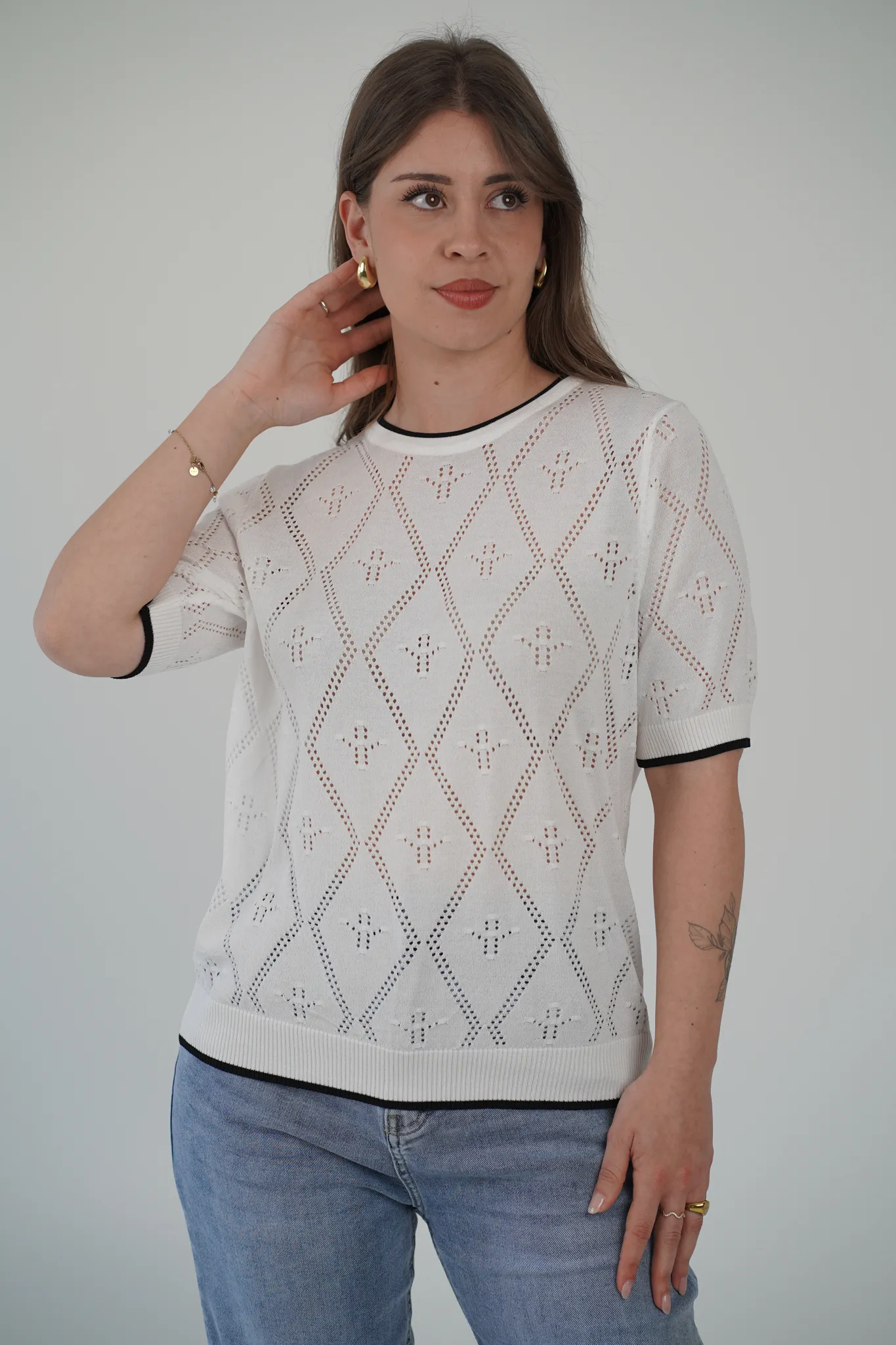 Descrizione:✨ Maglia traforata scollo tondo – raffinata e super versatile ✨