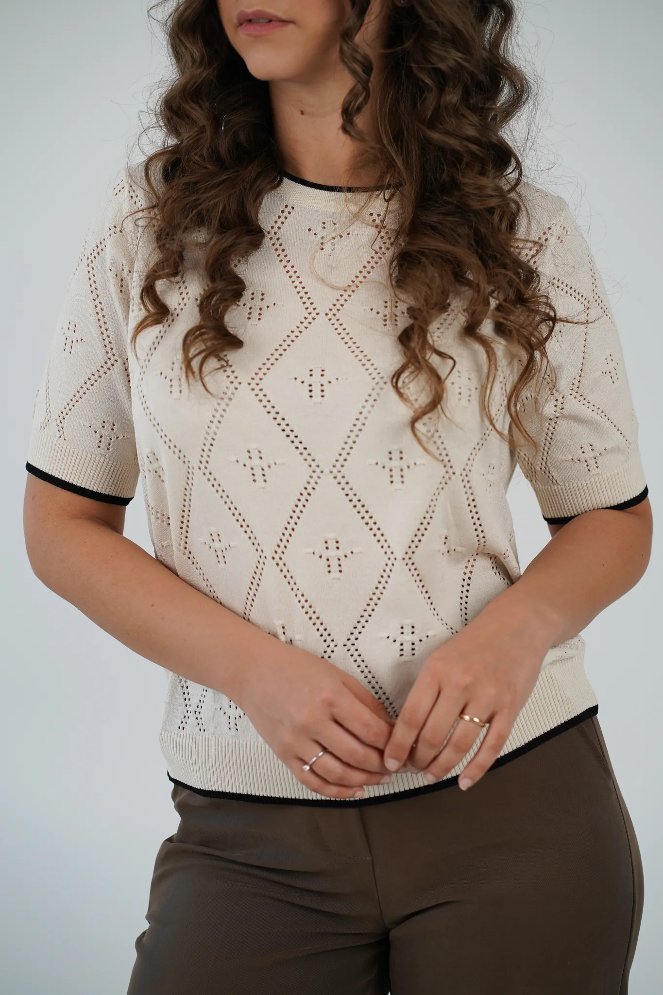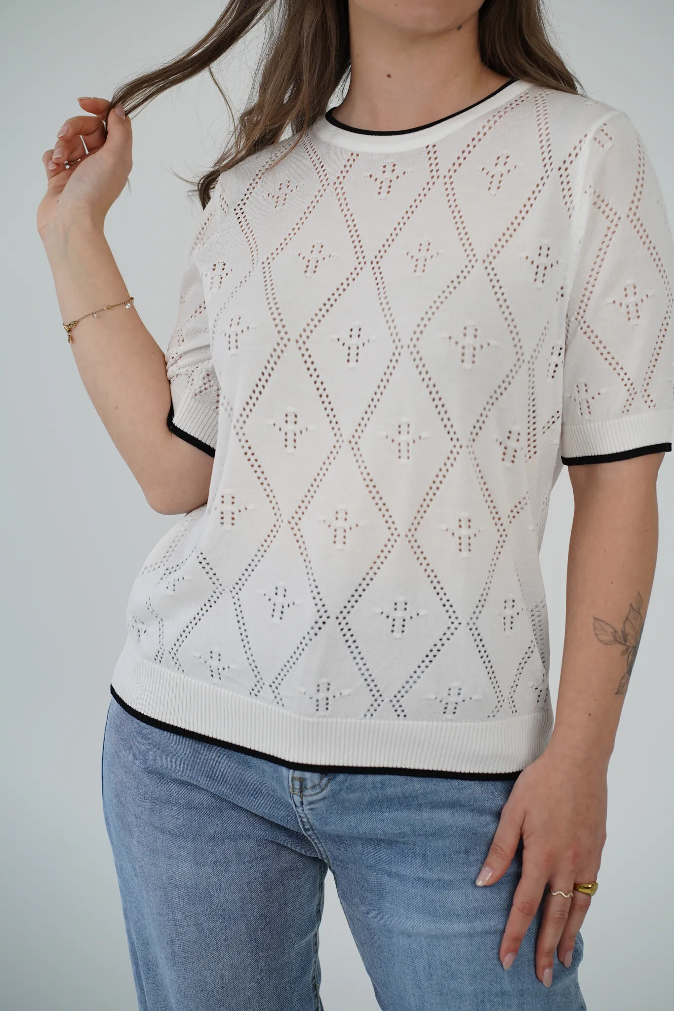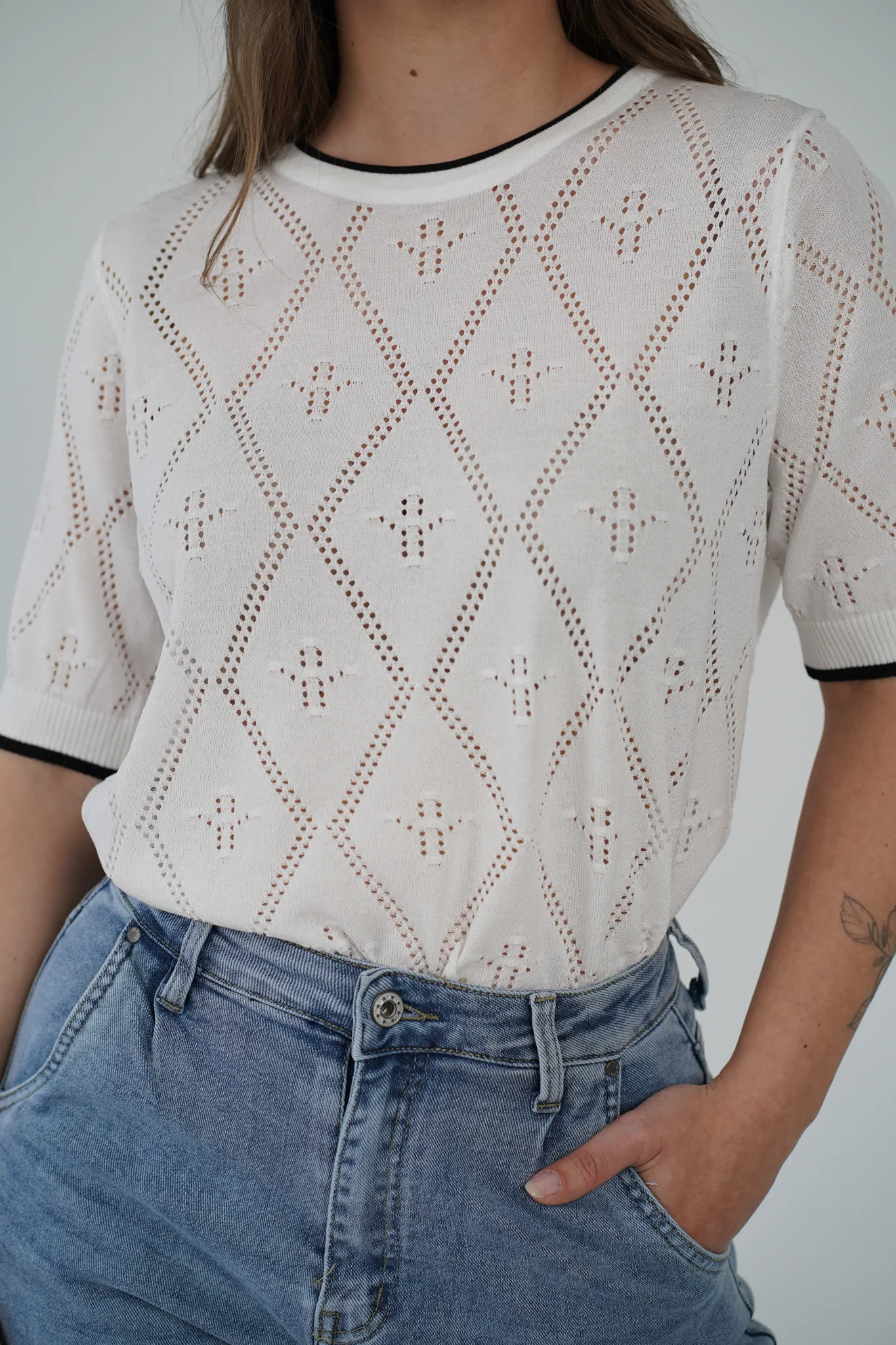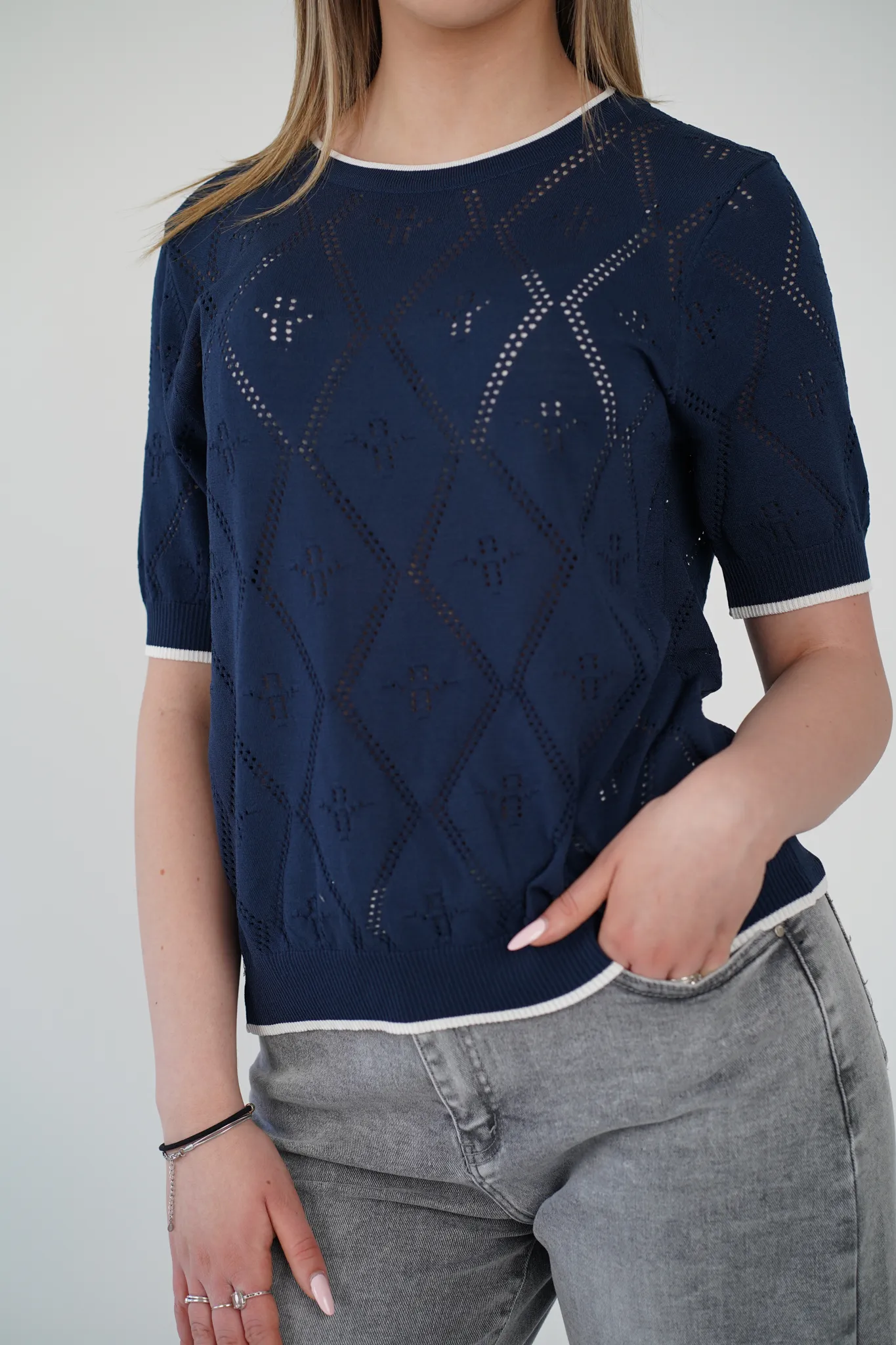 Descrizione:✨ Maglia traforata scollo tondo – raffinata e super versatile ✨