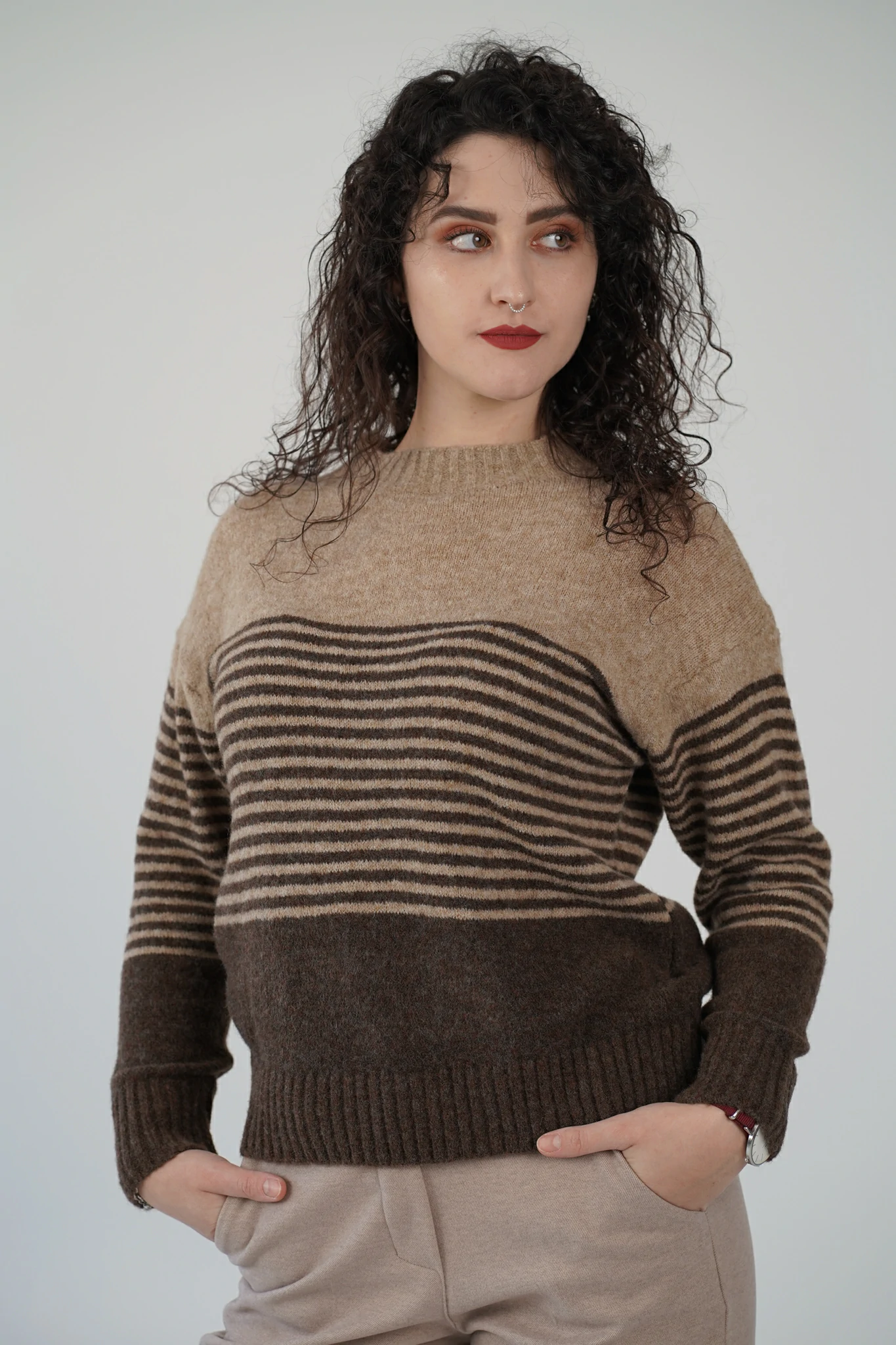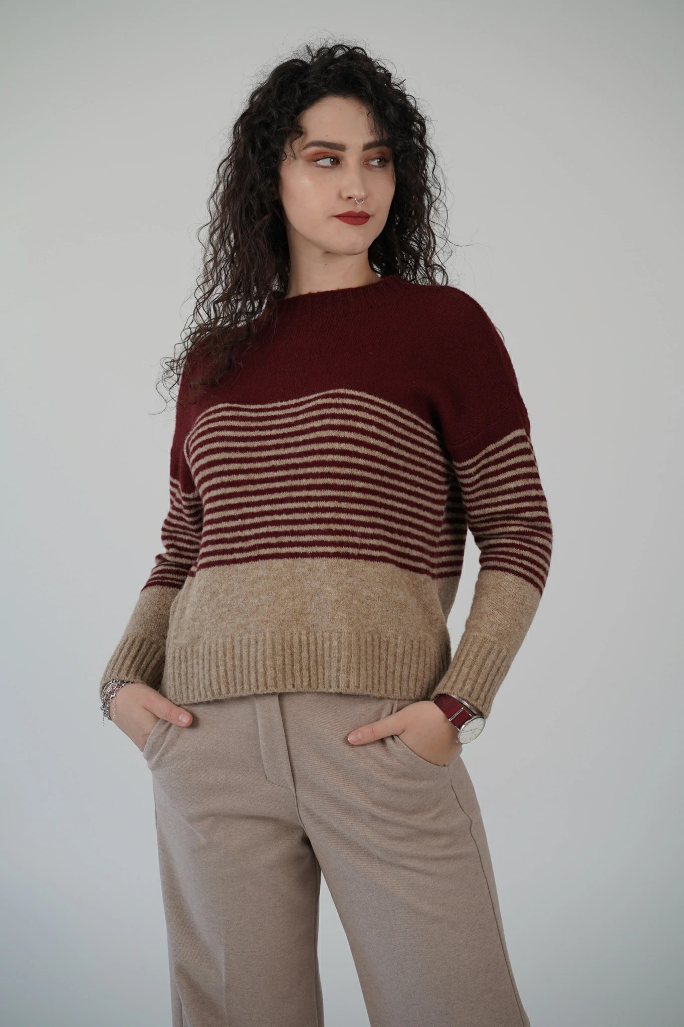 Descrizione: Un capo che unisce comfort e stile in un unico abbraccio! Questo maglioncino in misto lana รจ realizzato in un tessuto super caldo e morbidissimo, perfetto per accompagnarti nelle giornate piรน fredde con un tocco di eleganza rilassata.