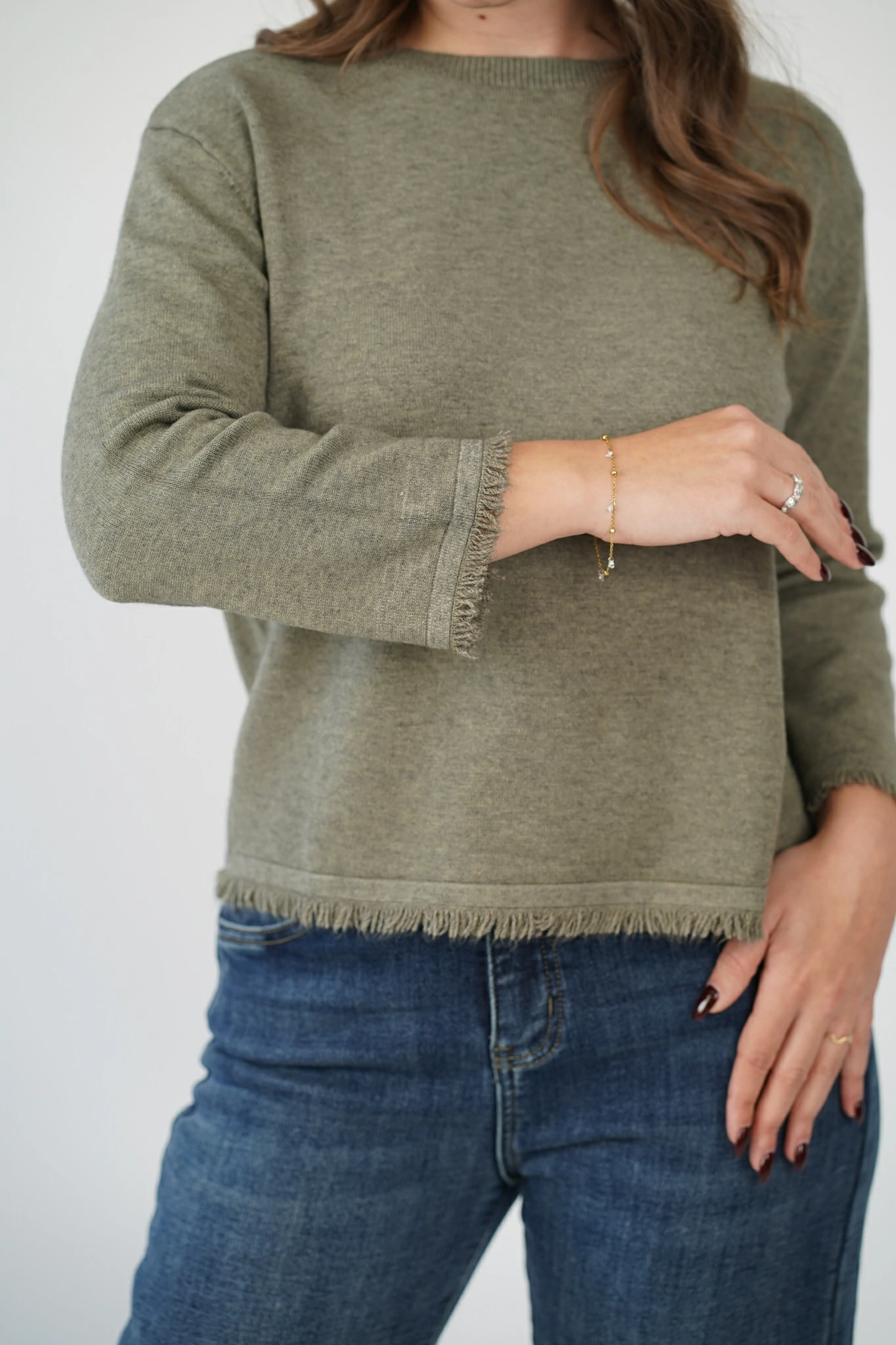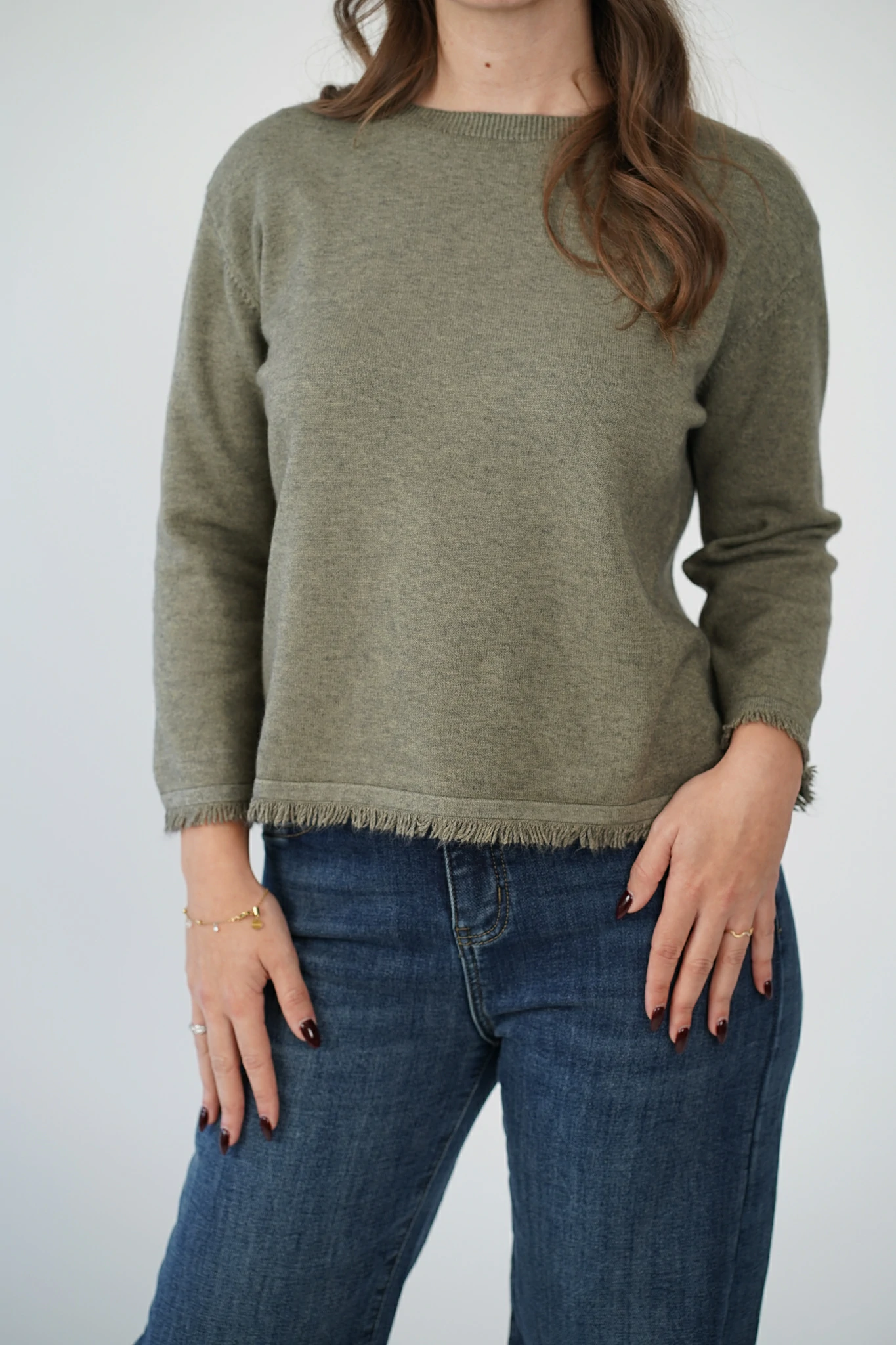 Questo maglioncino in morbido misto viscosa è la coccola perfetta per le giornate più fresche. Lo scollo leggermente a barchetta valorizza il collo e le spalle con eleganza naturale, mentre orlo e polsini sfrangiati aggiungono un dettaglio raffinato.