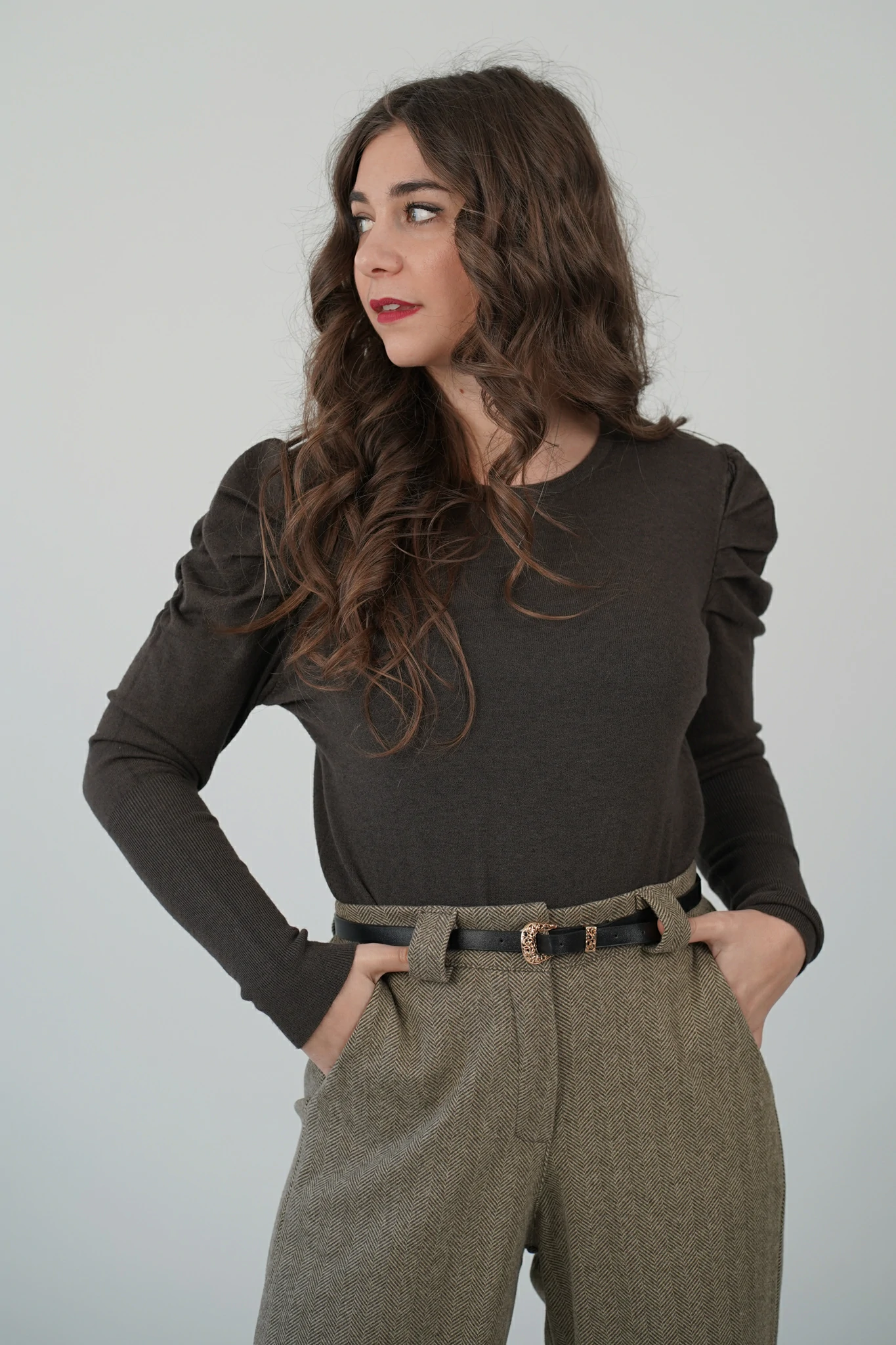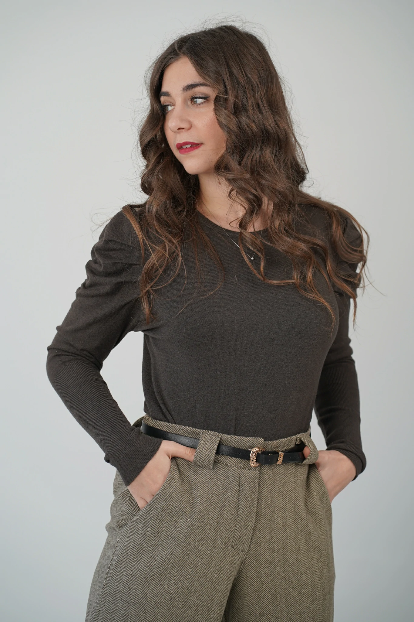 Descrizione: Maglioncino Tinta Unita con Maniche a Sbuffo – Femminilità e Comfort in un Solo Capo