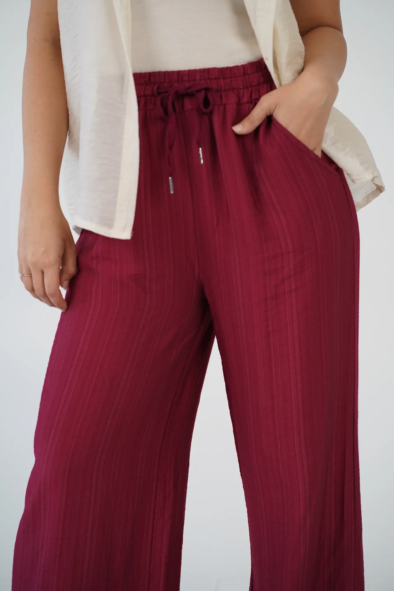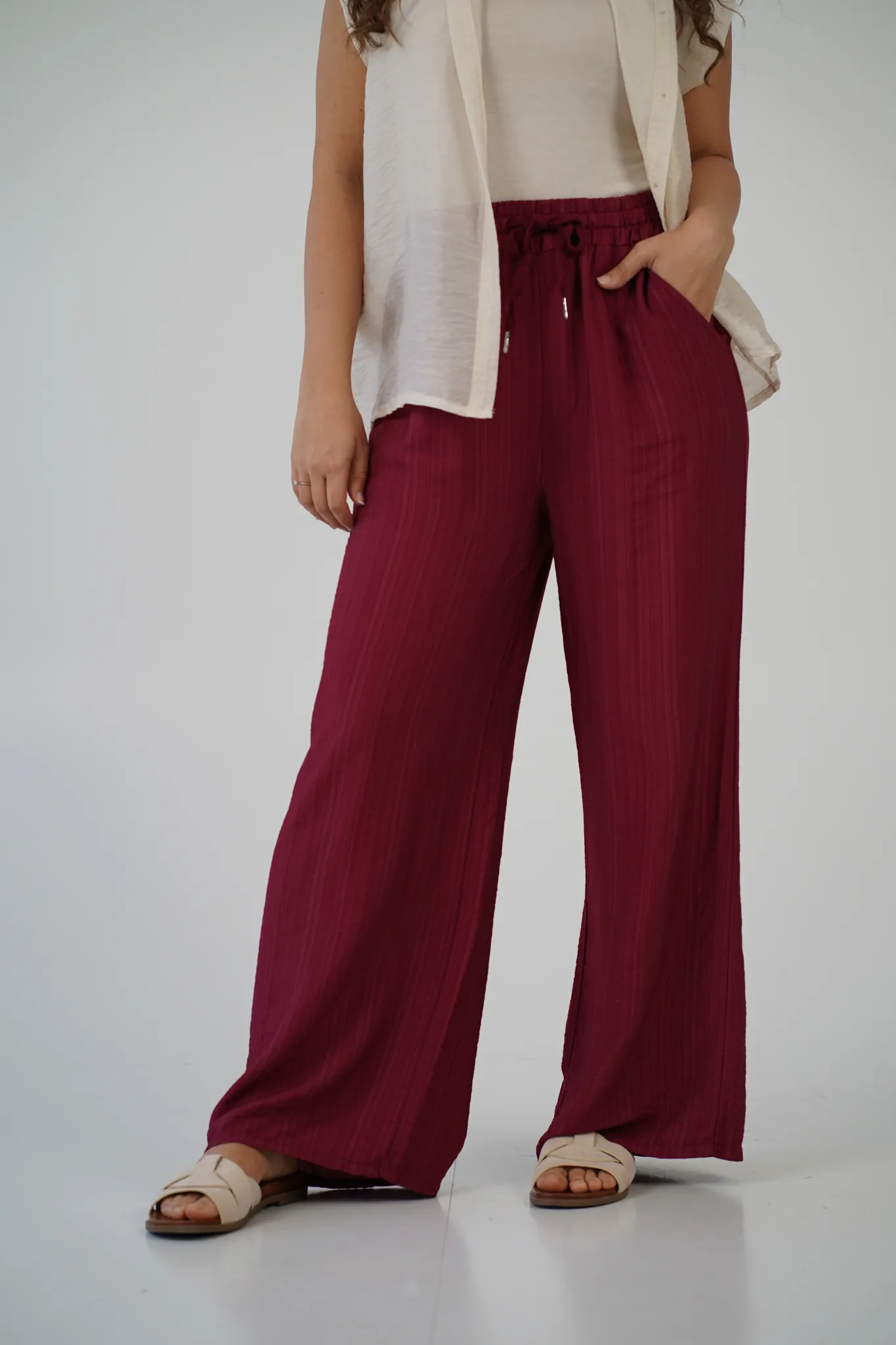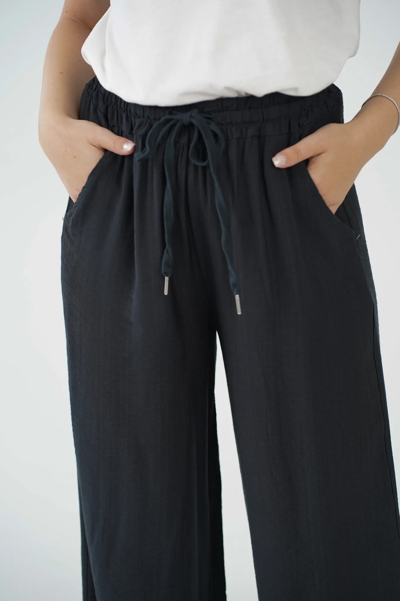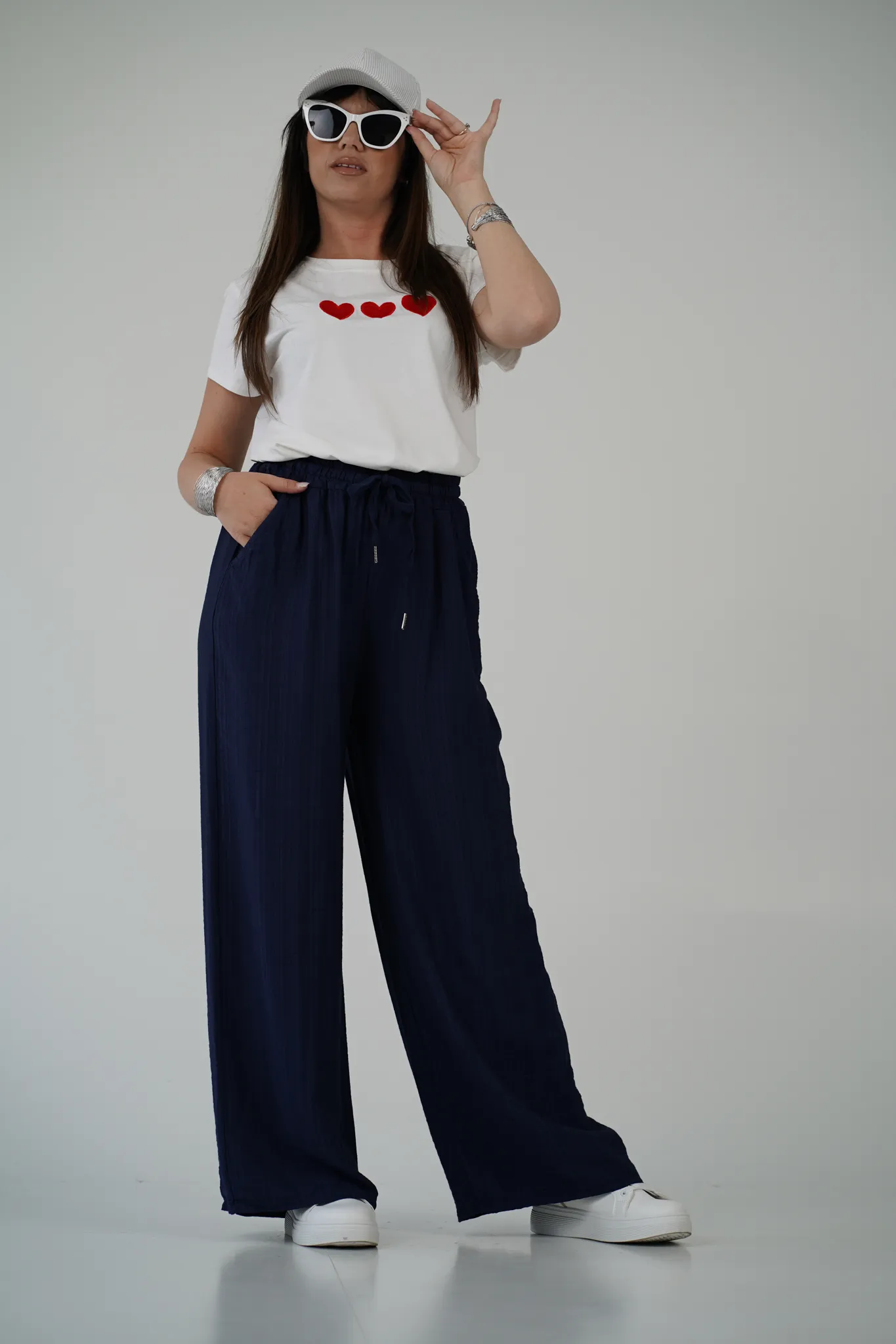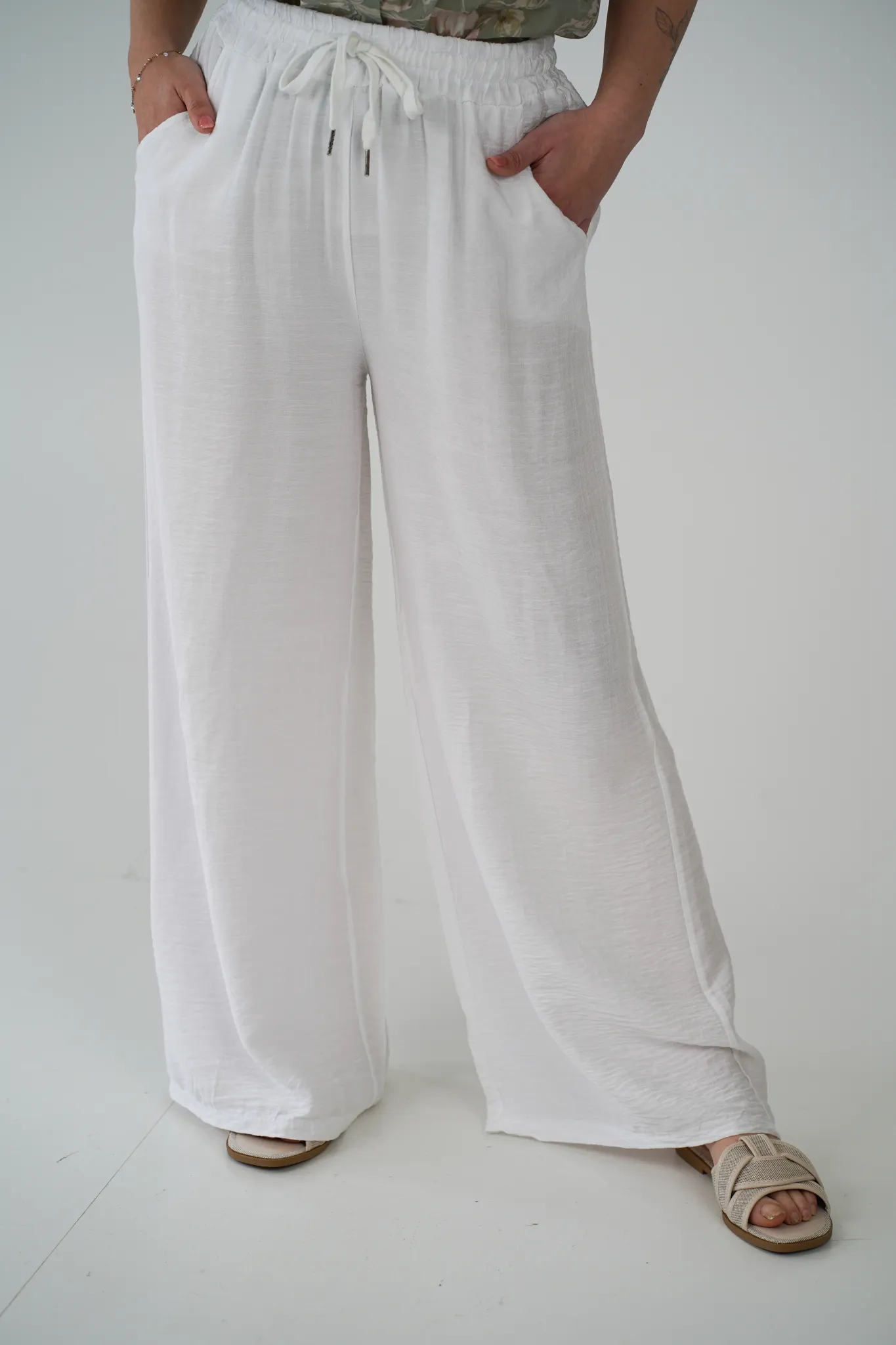 Descrizione: Pantalone palazzo in viscosa con elastico e laccetto in vita