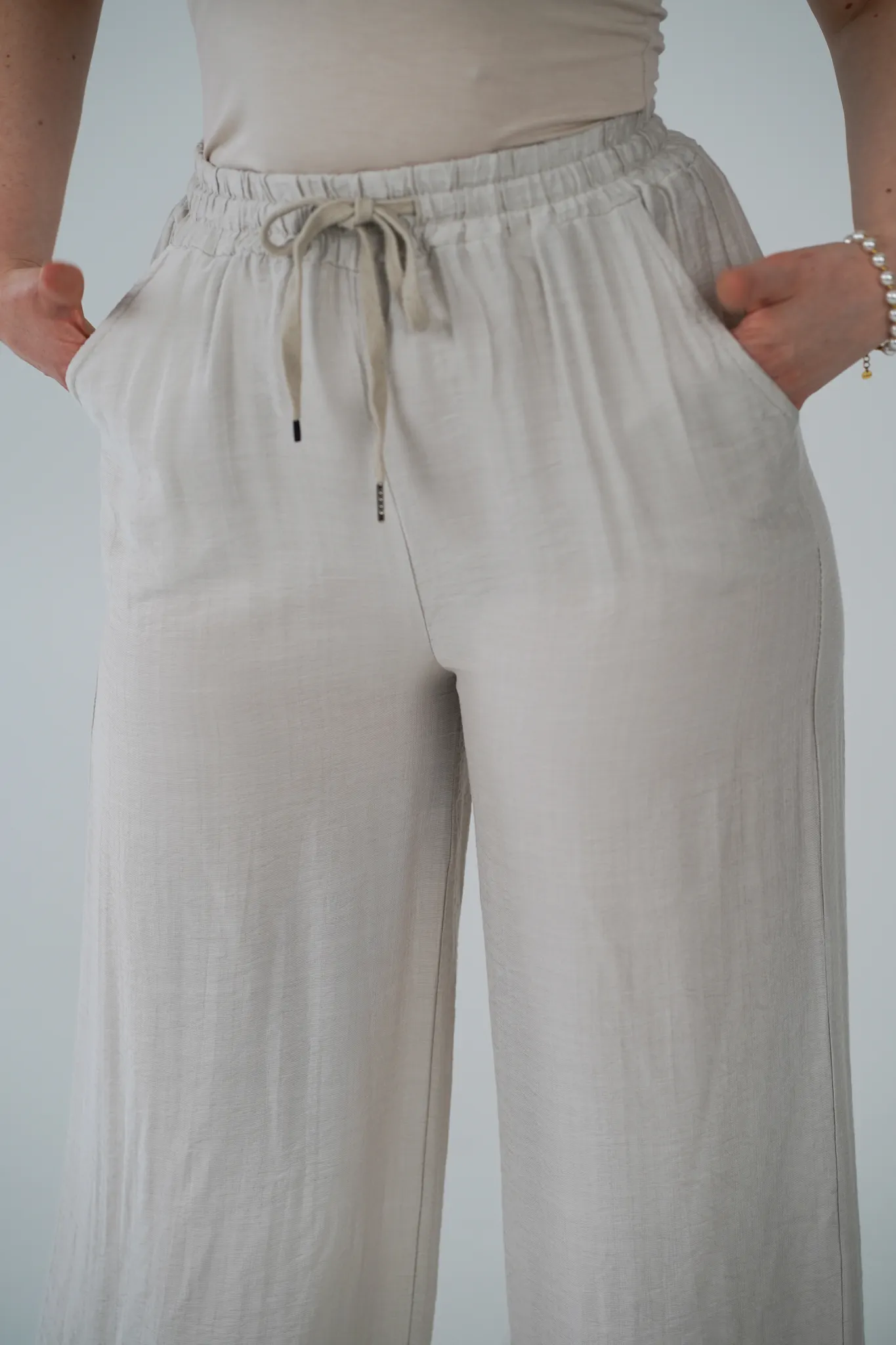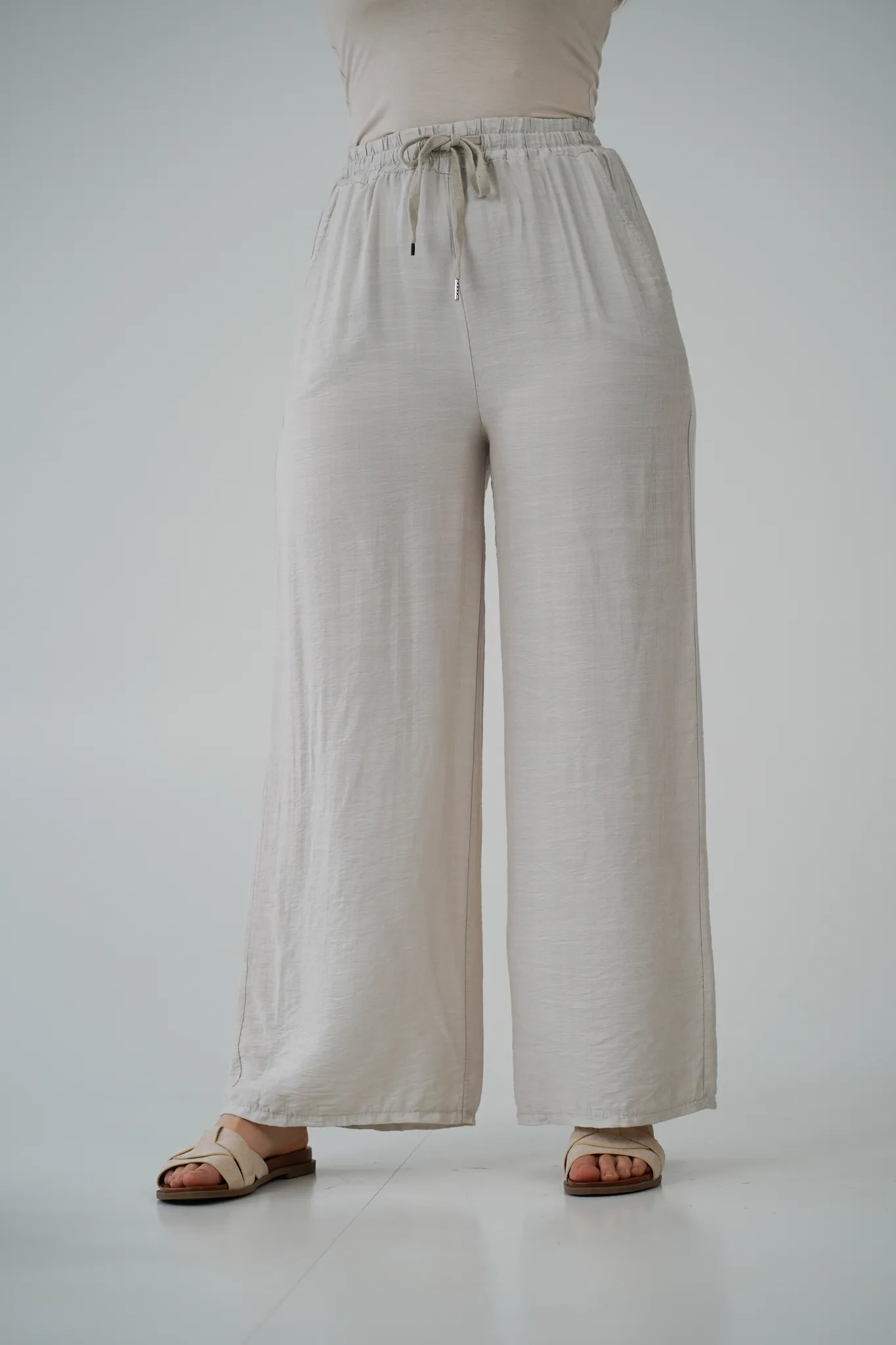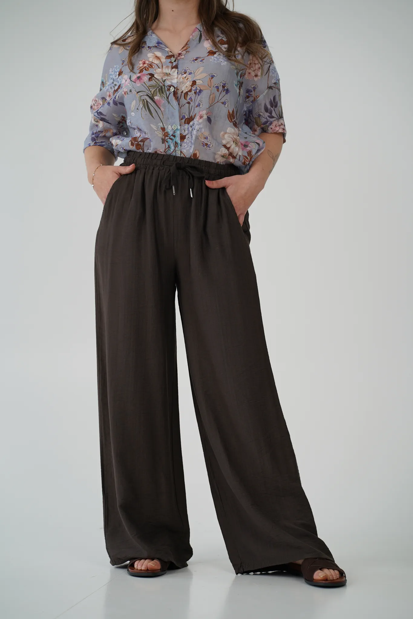 Il taglio ampio e fluido della gamba crea un movimento elegante ad ogni passo, mentre le due taschine laterali aggiungono funzionalità senza rinunciare allo stile