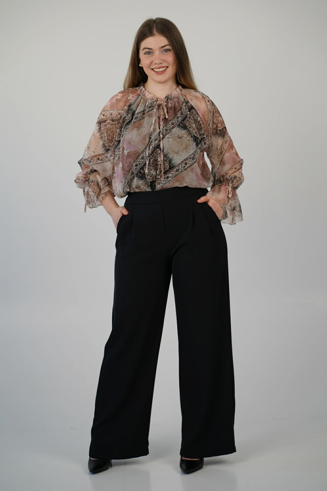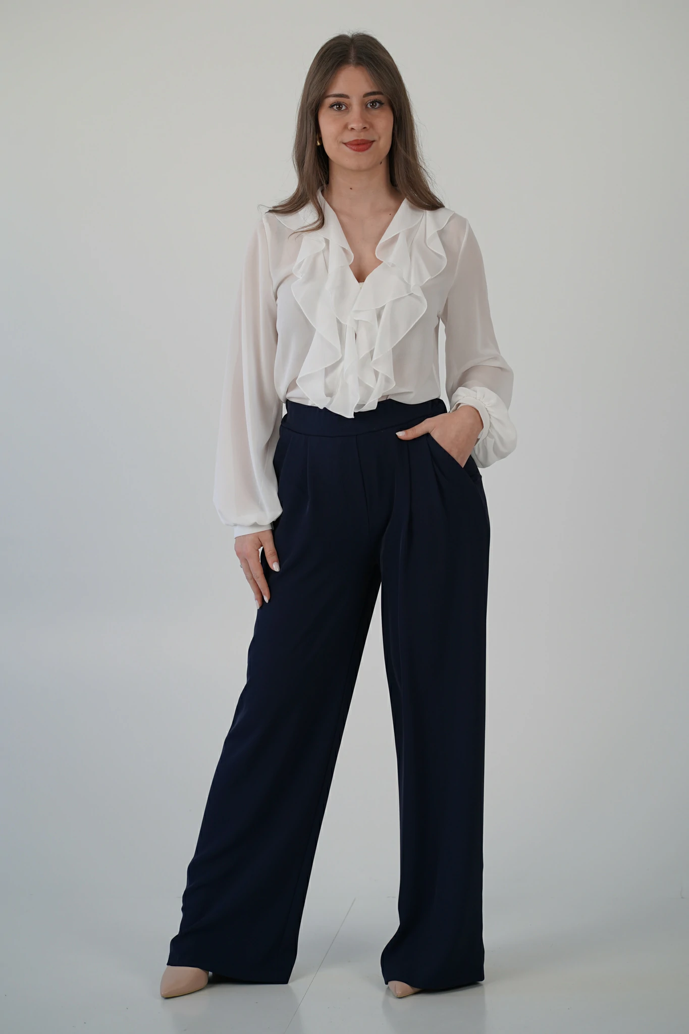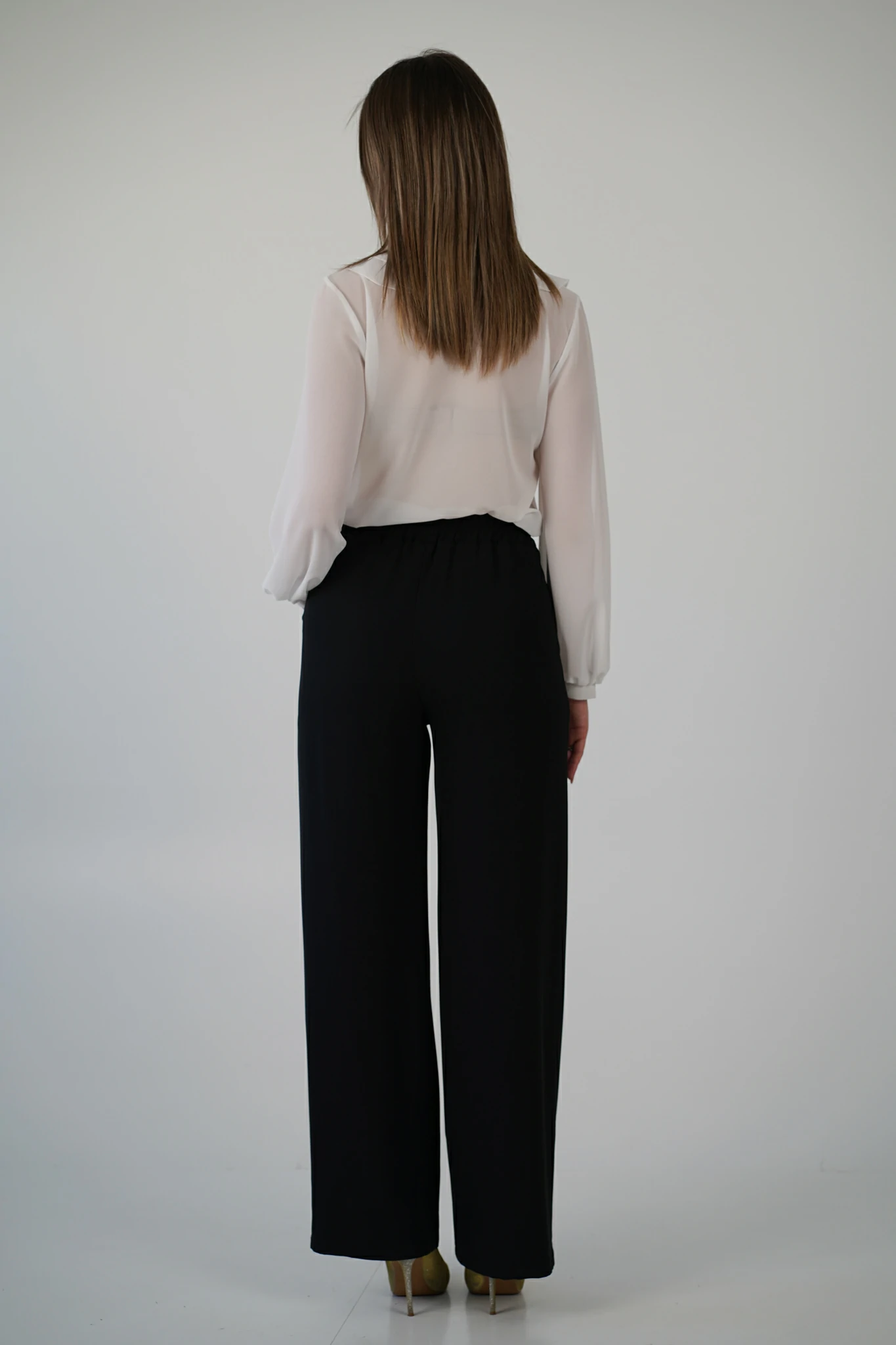 Descrizione: Pantalone Palazzo dalle linee morbide, movimento naturale e una vestibilità che conquista.