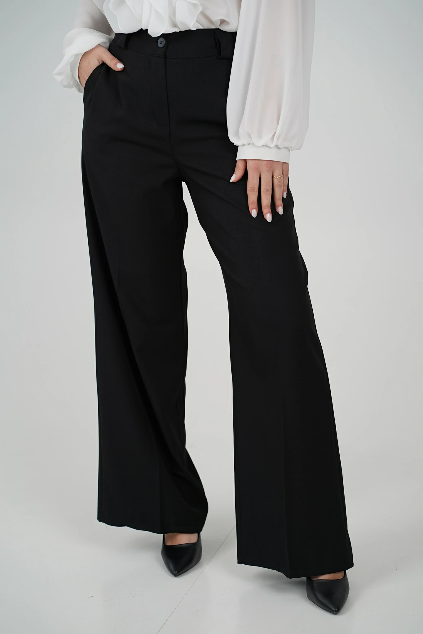 Descrizione: Pantalone palazzo, molto morbido, taglio maschile, con zip e bottone