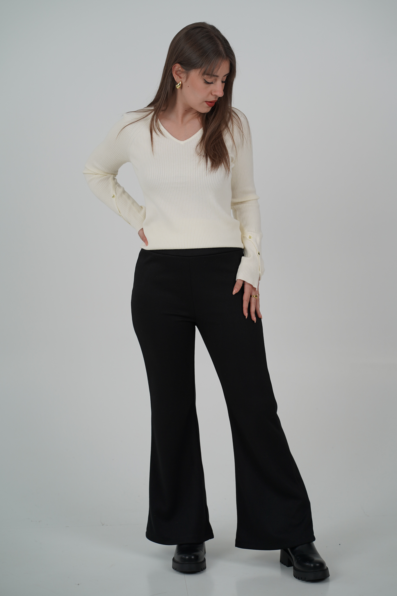 Descrizione: Pantalone a zampa, super caldo, con elastico sul punto vita, senza né zip né bottoni