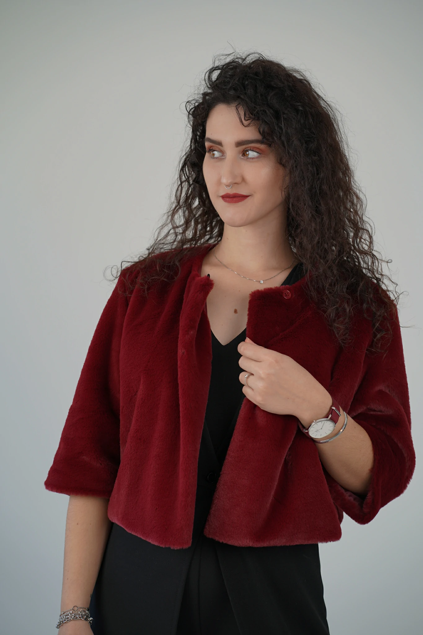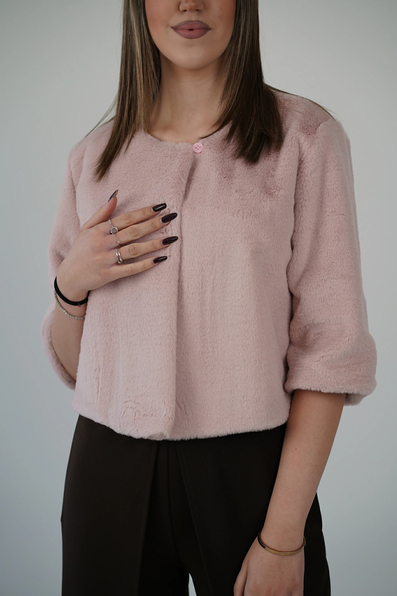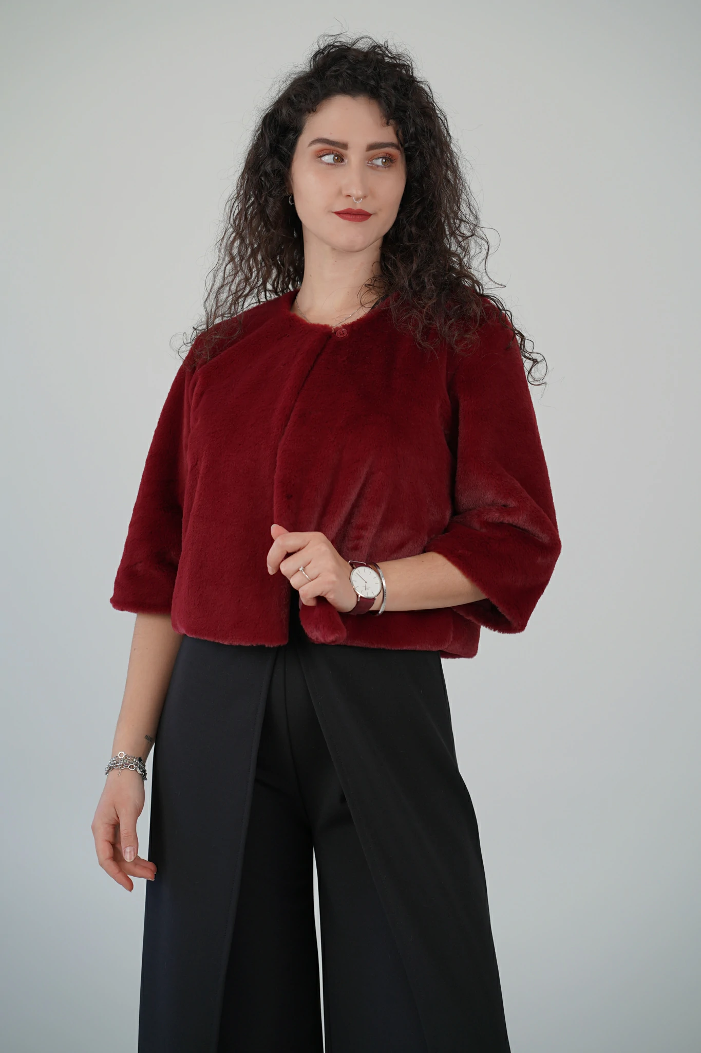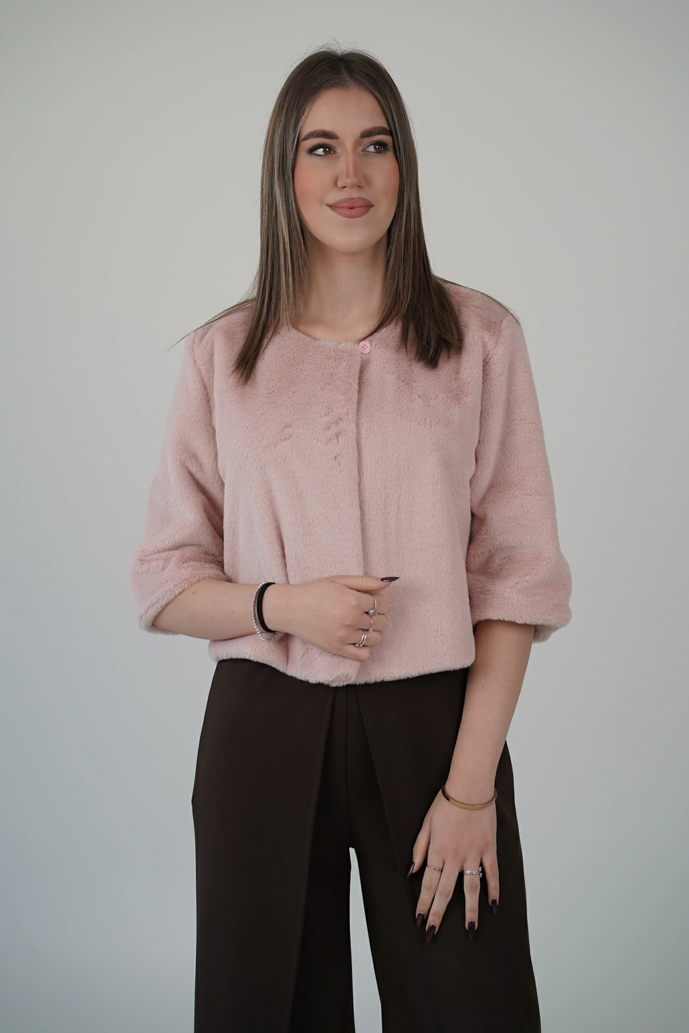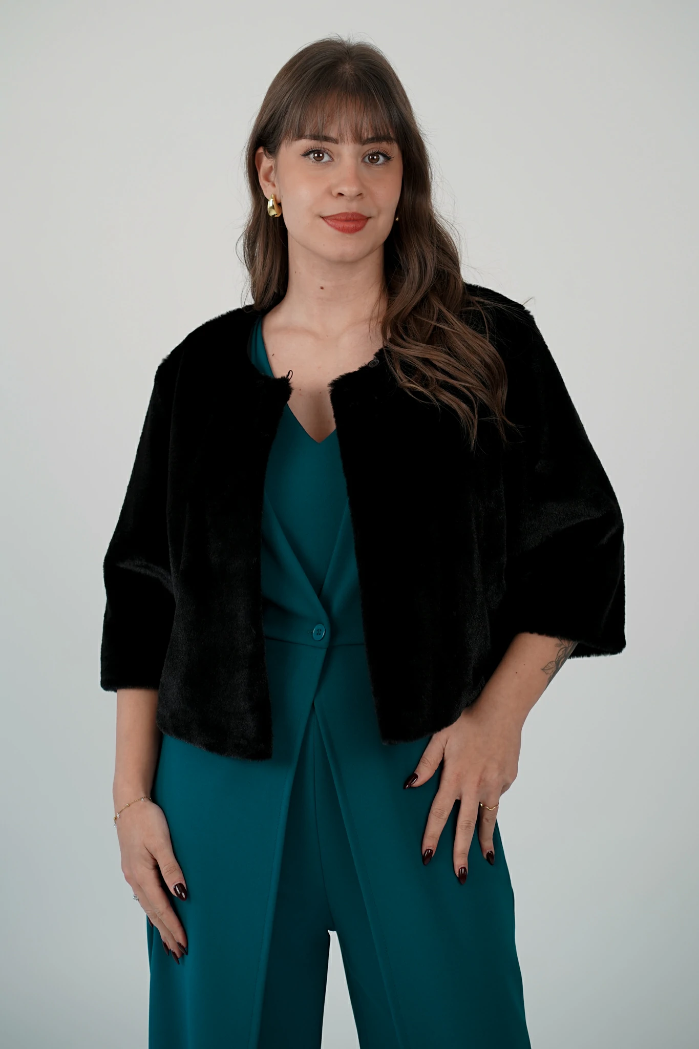 Questa pelliccetta corta è il dettaglio glam che trasforma ogni outfit