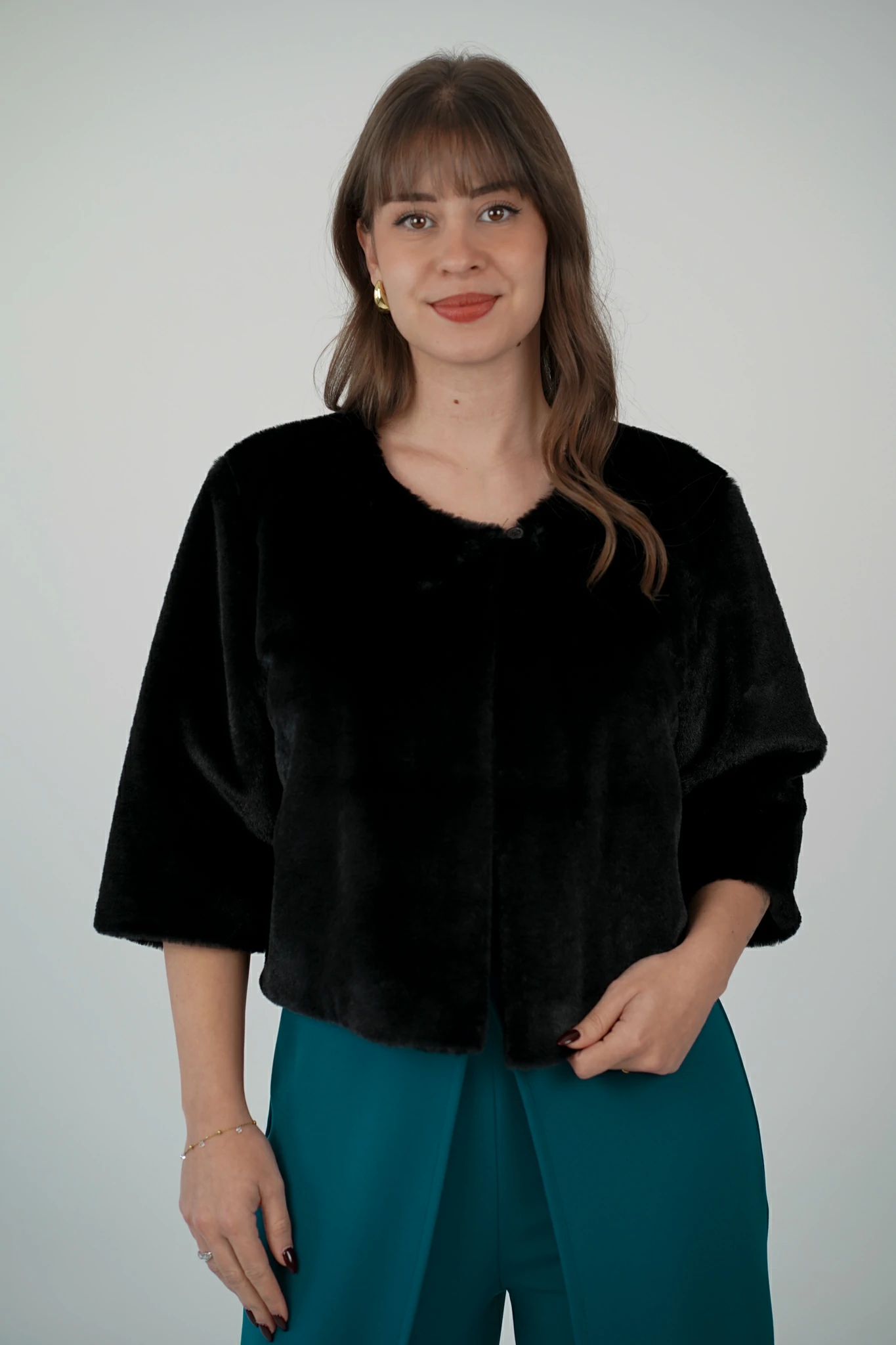 Descrizione: Pelliccetta Corta con Mezza Manica e Scollo Tondo