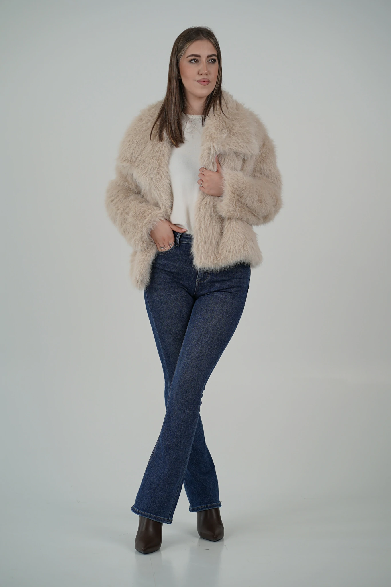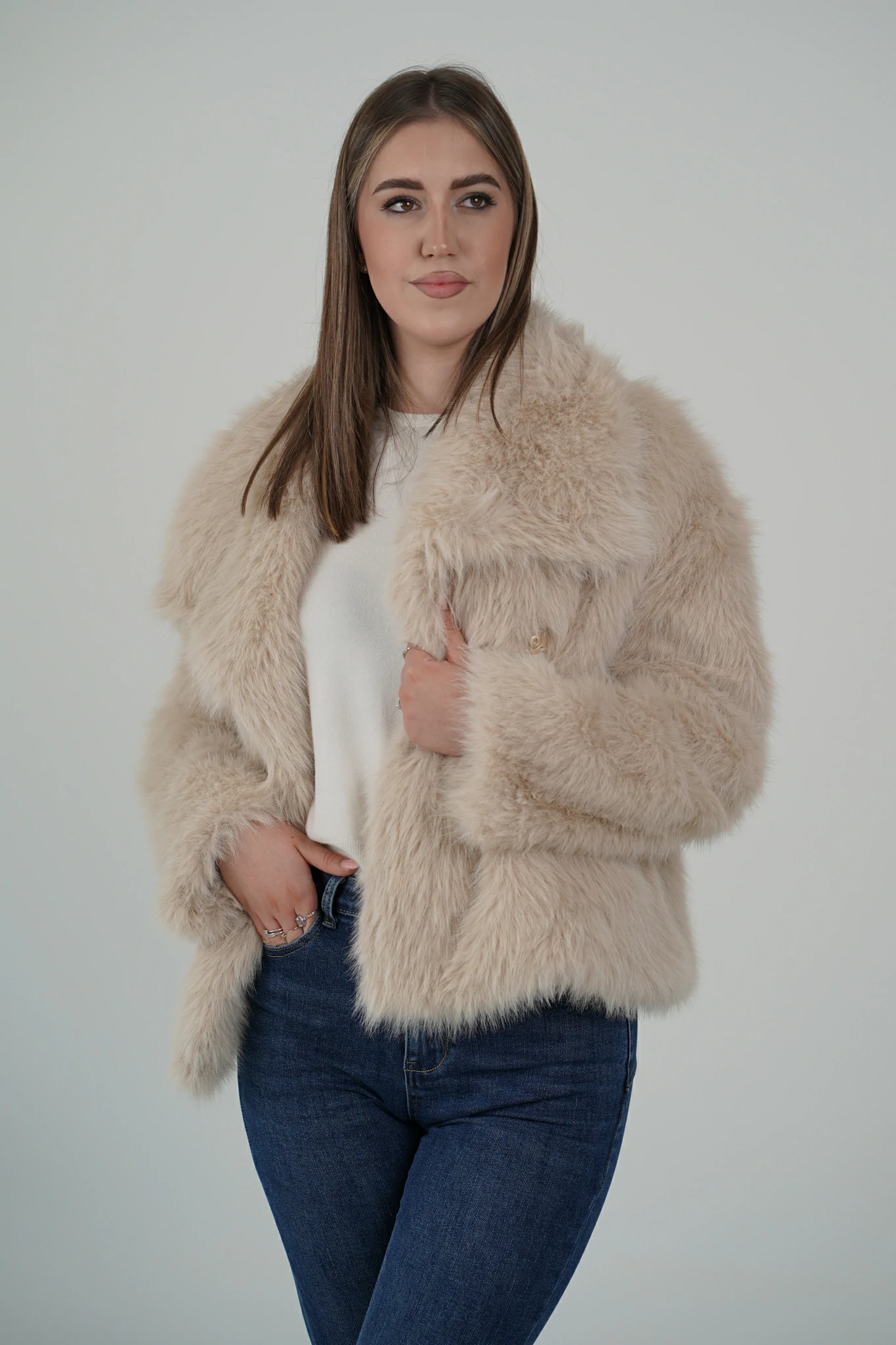 Descrizione: 🤍 Pelliccia con Collo Ampio e Bottoni Regolabili – Eleganza personalizzabile