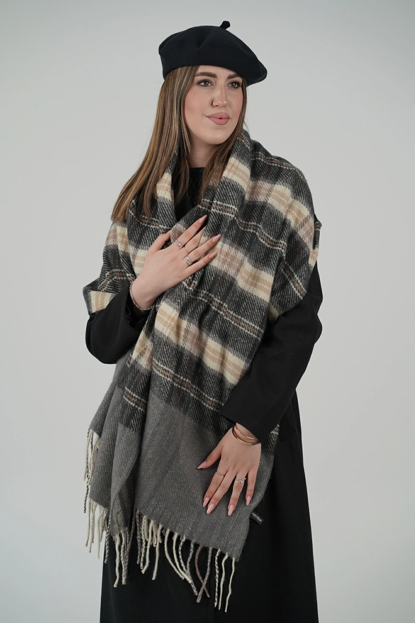 Questa sciarpa in pura viscosa è il tocco finale che trasforma ogni look con eleganza, leggerezza e morbidezza assoluta.