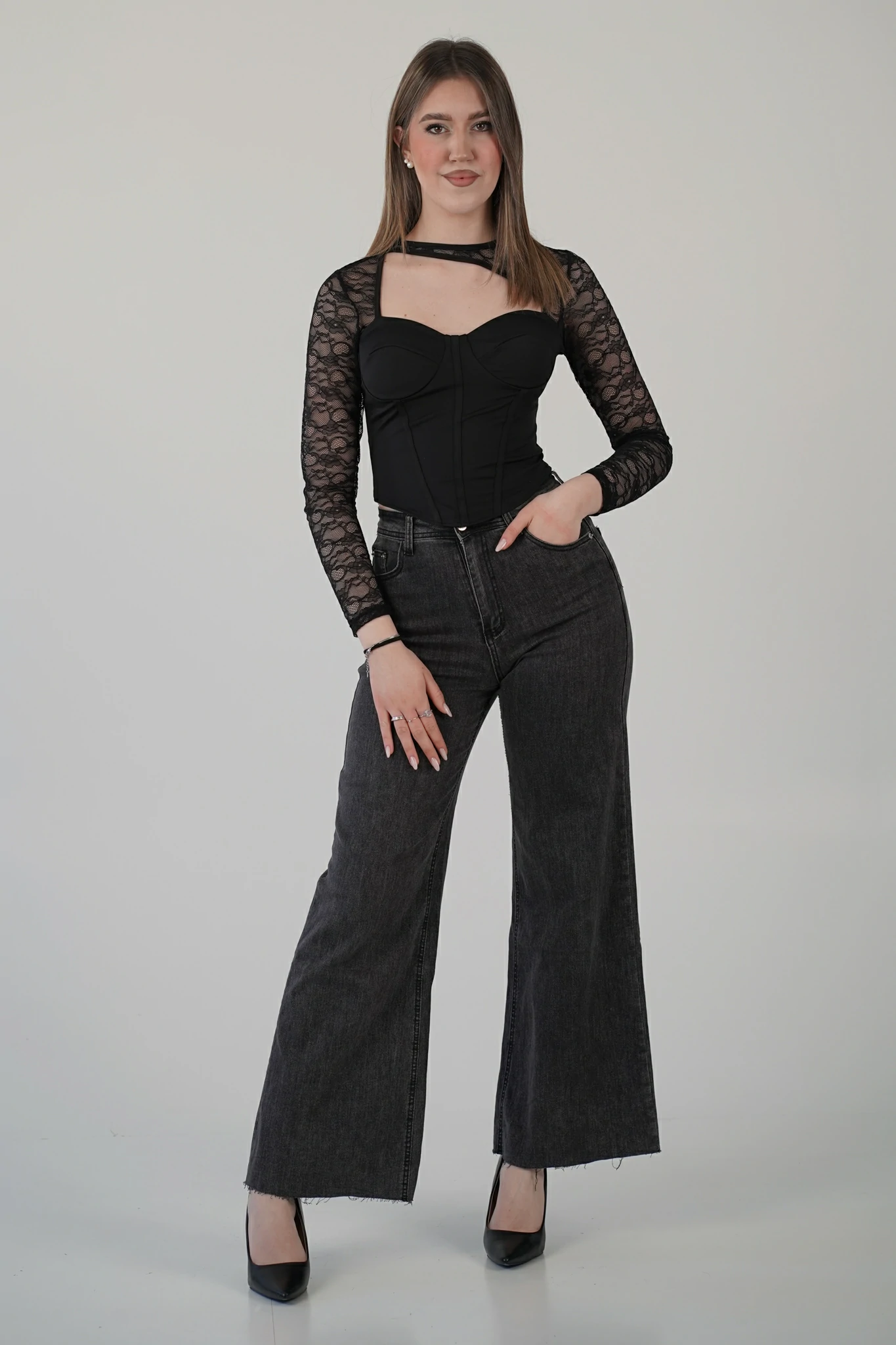 Con pantaloni palazzo neri per un outfit elegante da sera